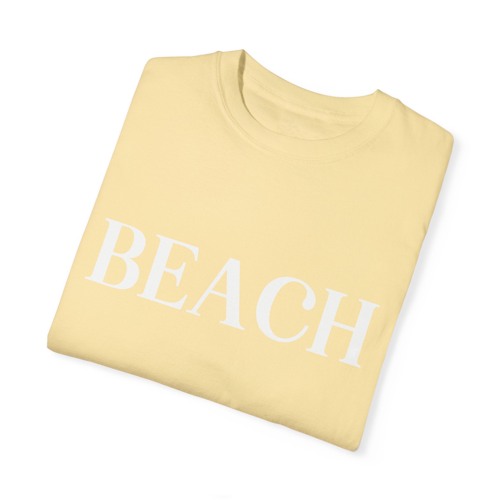 Slide into that "BEACH" state of mind with this must-have tee. Grab yours today and let your wardrobe soak up some sunshine! 🌞
