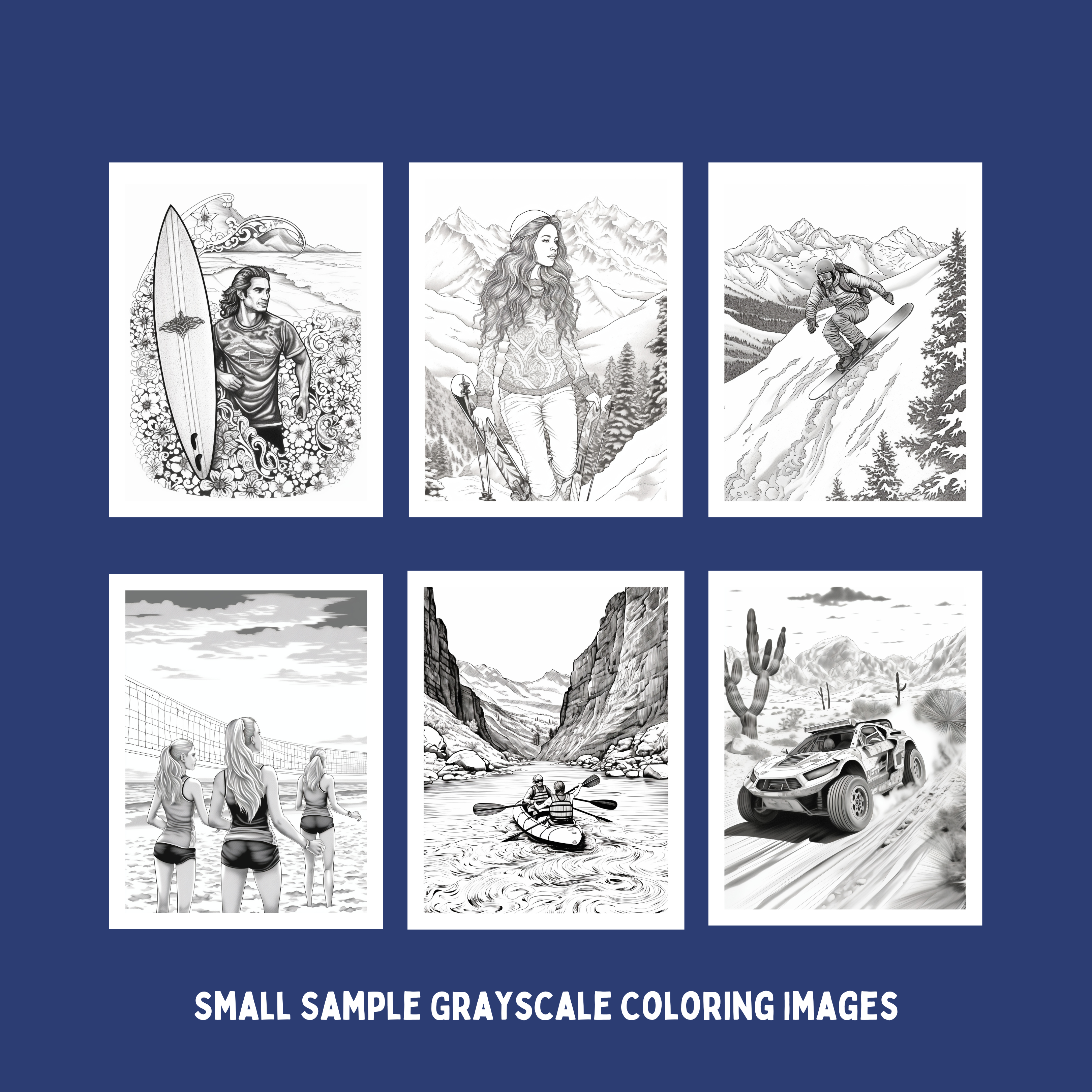 What sets us apart? Not everything needs to be colored! Our striking grayscale images are so captivating in grayscale that some customers prefer to leave them untouched or just lightly colored where they see fit for a subtle treatment. Use them as ready-made prints, design eye-catching t-shirts, or even inspire for your next tattoo! It's a coloring book that transcends traditional boundaries, offering a canvas for your imagination to run wild. Elevate your coloring experience as you infuse grayscale with the hues of your imagination, transforming each stoked, sporty image into a personalized work of art. Whether you're a coloring enthusiast who loves to fill every inch or someone who appreciates the beauty of negative space, "Epic Journeys" caters to your artistic preferences.