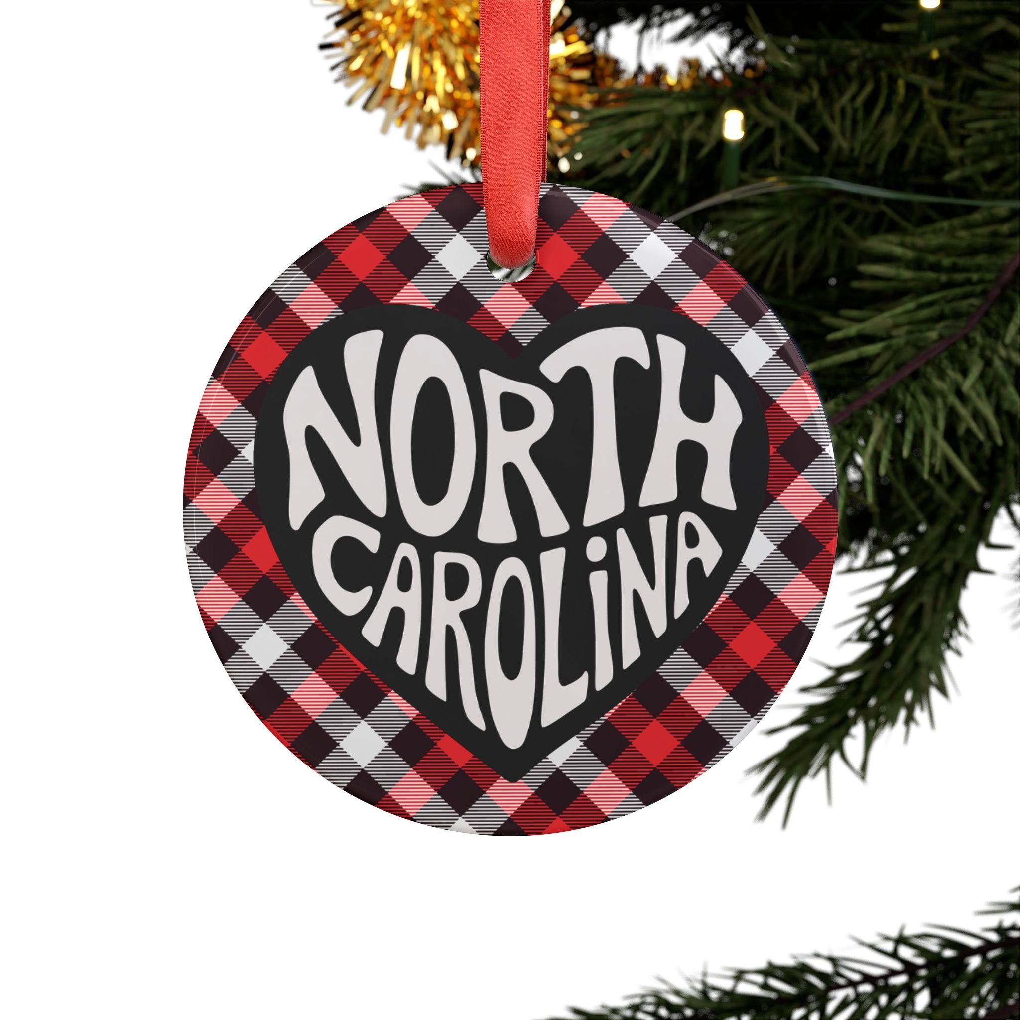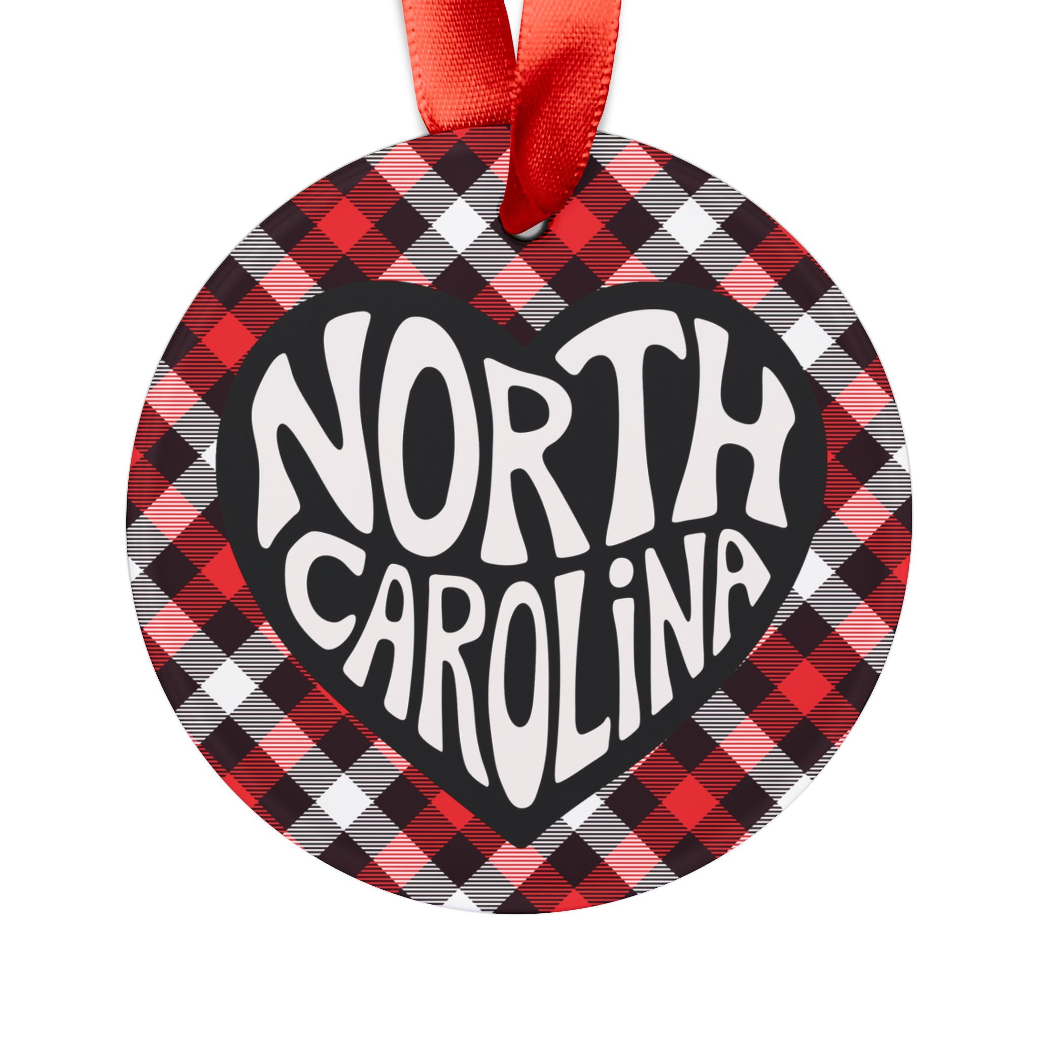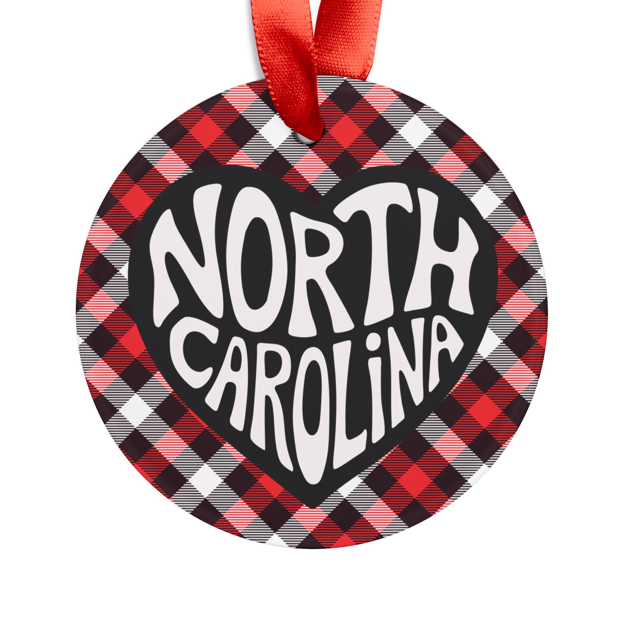 Crafted with a durable acrylic encasing and featuring a glossy finish, this ornament is as beautiful as it is long-lasting. The vibrant design showcases your love for North Carolina, making it a standout addition to your tree, wreath, or any festive display. Each ornament includes a festive red ribbon for effortless hanging, ensuring it’s ready to bring joy to your home this holiday season.