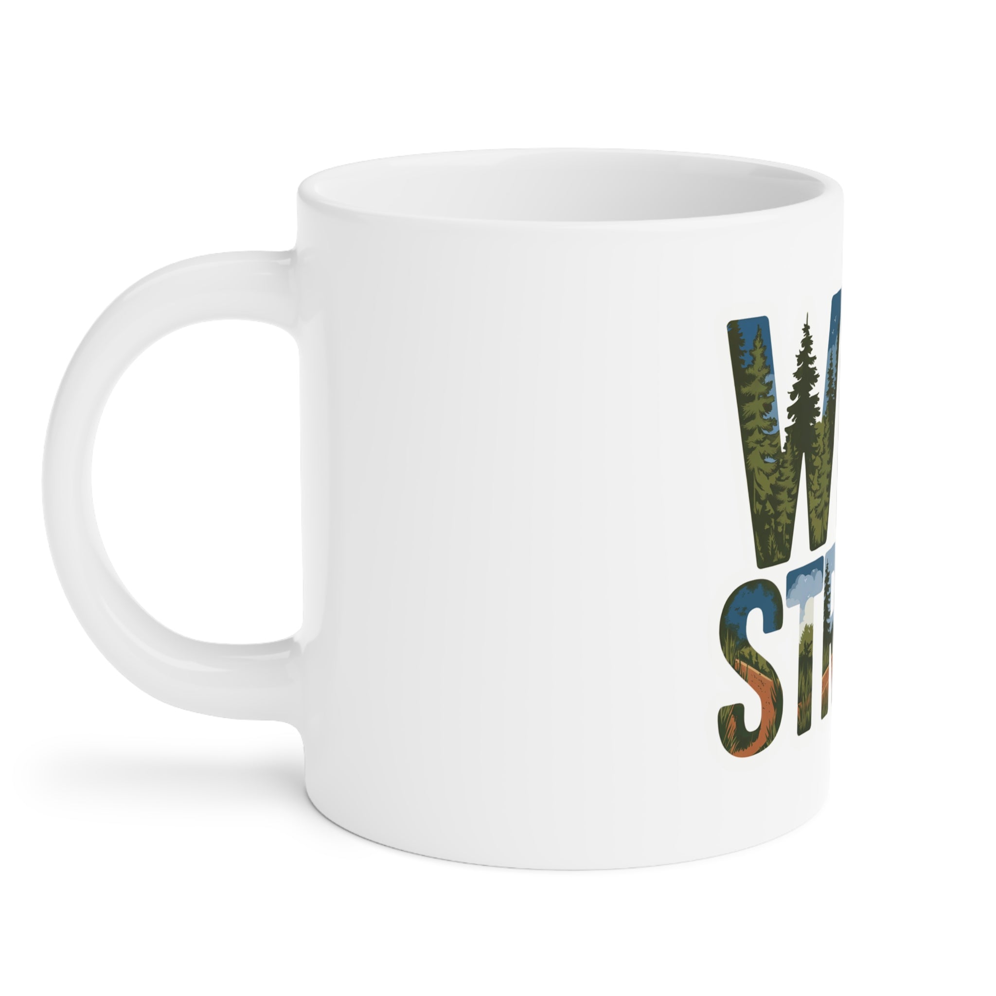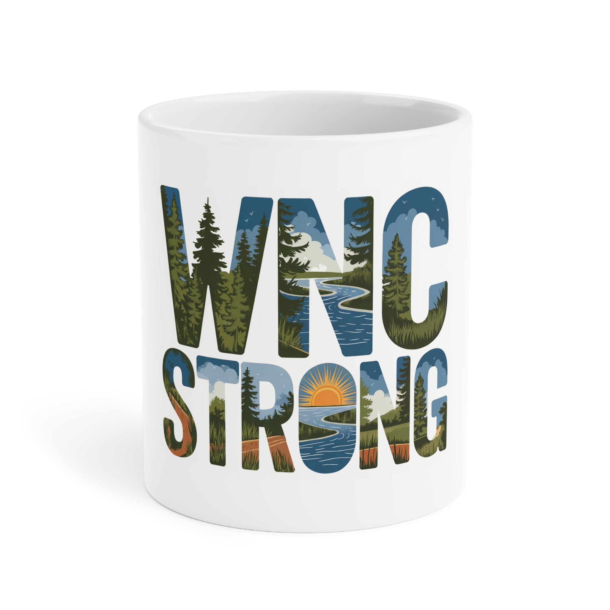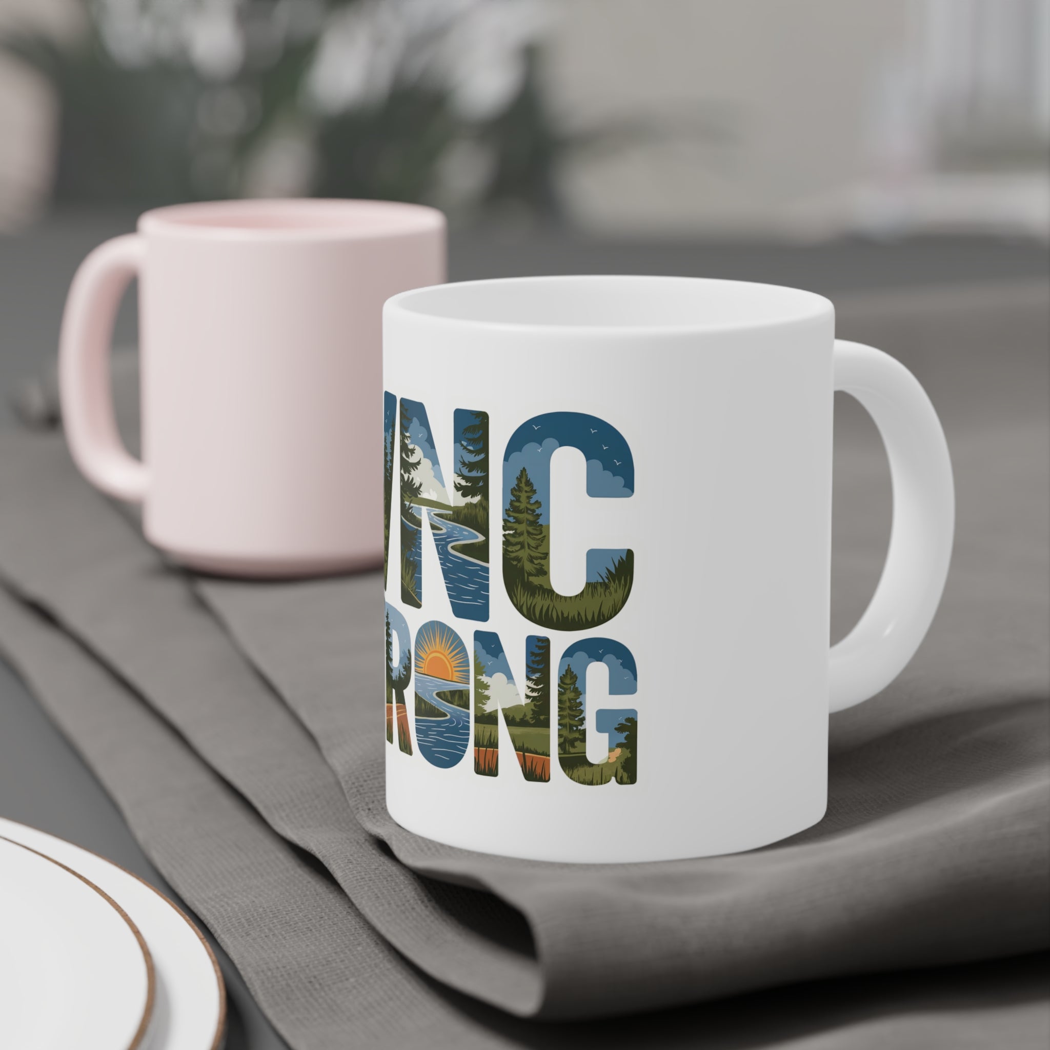 Add a touch of flair to your daily coffee routine with our WNC Strong Ceramic Mug. Perfectly sized at 20oz, this mug is ideal for that extra boost of coffee or a generous serving of hot cocoa on a cozy, rainy day. Made from durable white ceramic with a glossy finish, it features a C-shaped, easy-grip handle for comfort. Whether for home or office, this mug adds a stylish, functional touch to any drinkware collection! The easy-grip handle adds to the aesthetic appeal and ensures a smooth and comfortable drinking experience. Imagine sipping your favorite beverage from this mug, whether you're curled up by the fire or sharing laughter with friends and family during the festive season.