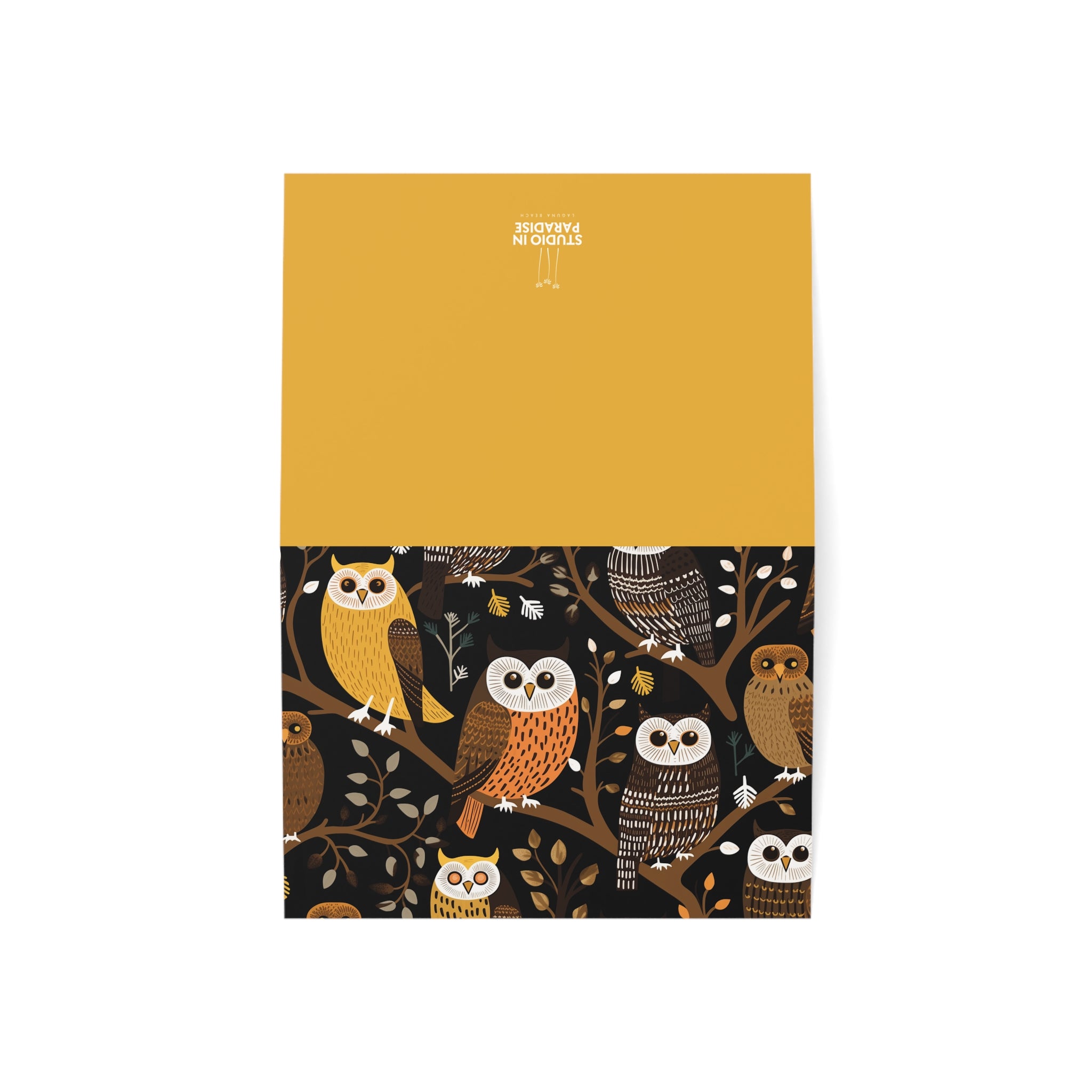 Send your warmest wishes with our "Mysitc Owl Magic" greeting card from The Highland Haven Collection. This bold, gorgeous owl print design adds a touch of wilderness to your heartfelt message. Personalized wishes are the best, and what better way to convey them than on this customized greeting card?