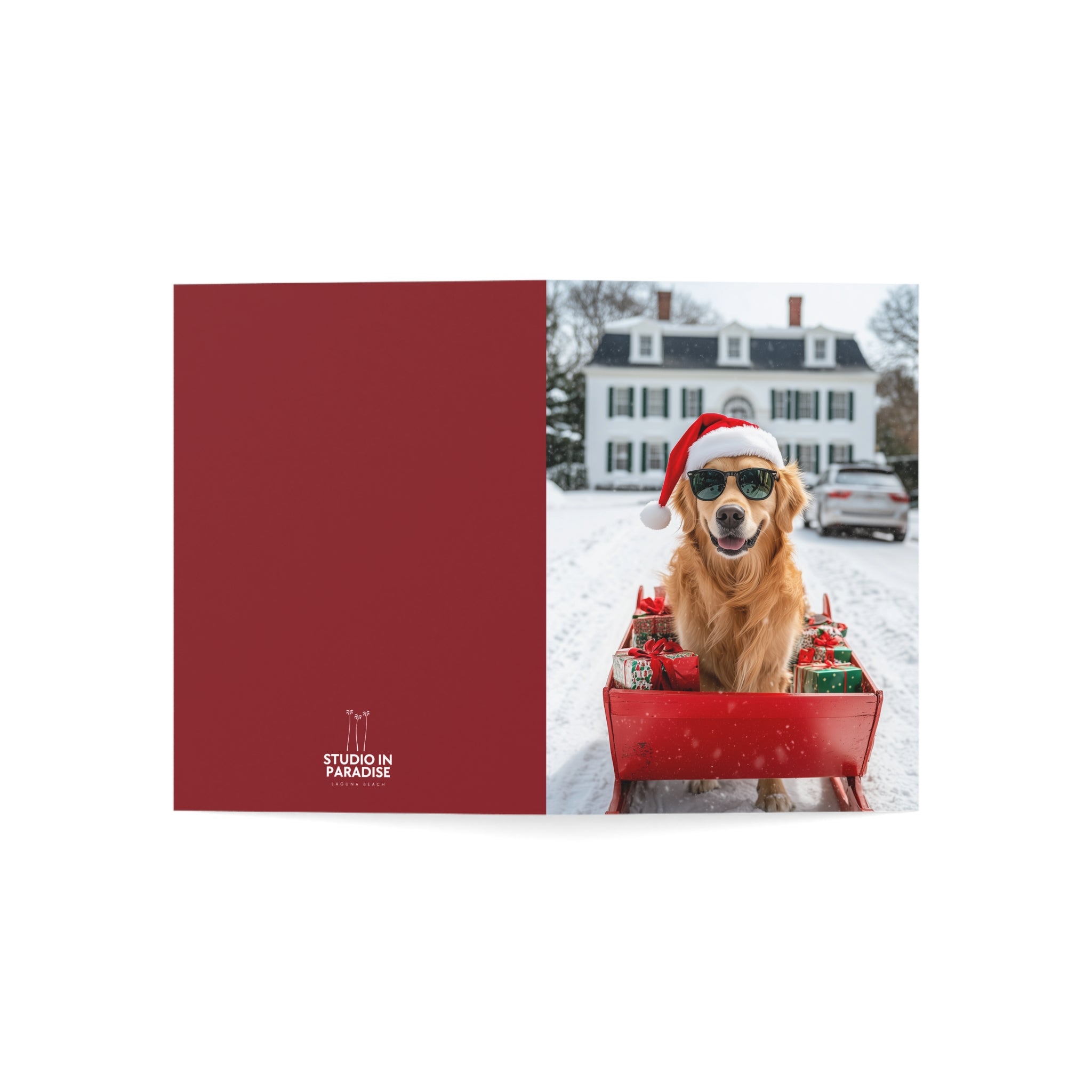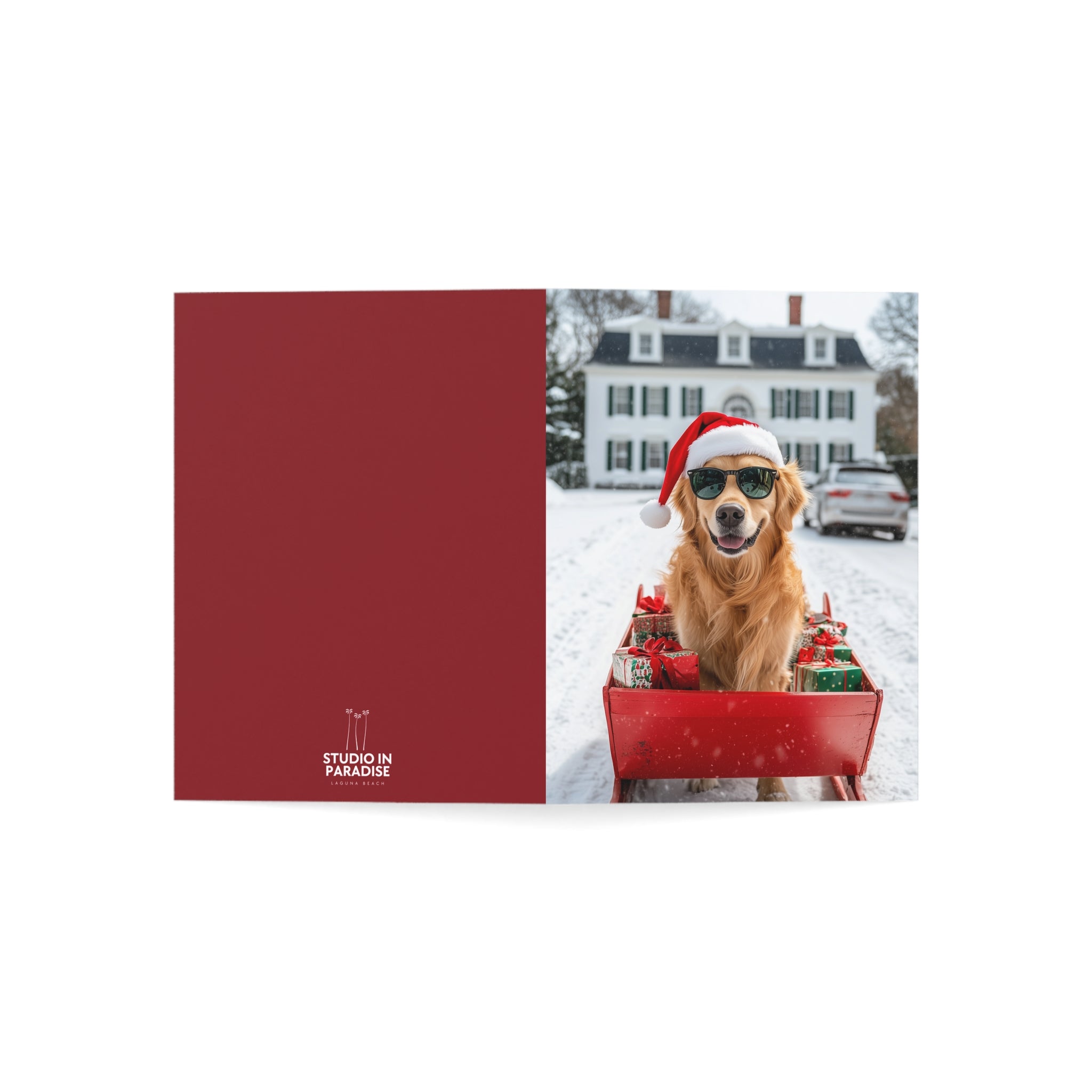 Celebrate the season with our "Powder Paws Collection" – a charming selection of holiday greeting cards featuring adorable dogs and puppies in festive winter scenes. From playful Golden Retriever puppies to cozy canines enjoying snowy landscapes, each card captures the warmth and joy of the holidays. Our North Paw Express Golden Retriever Greeting Cardis a standout in this collection, capturing a sweet Golden Retriever against a serene winter wreath, making it the perfect way to send heartfelt holiday wishes.