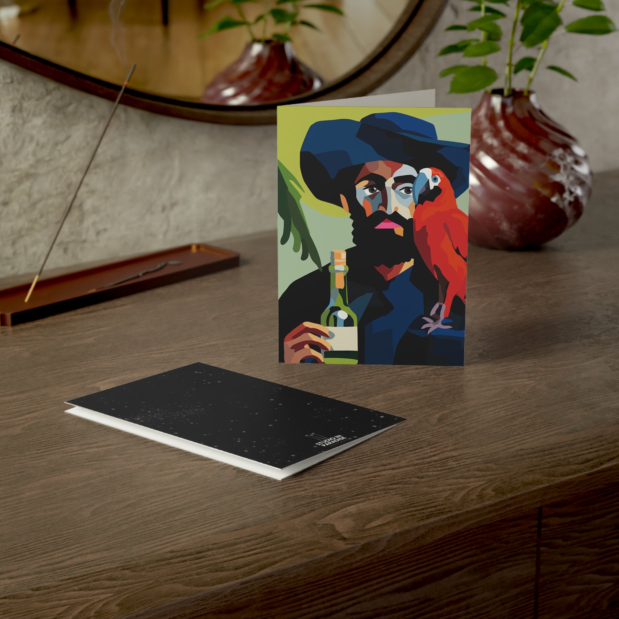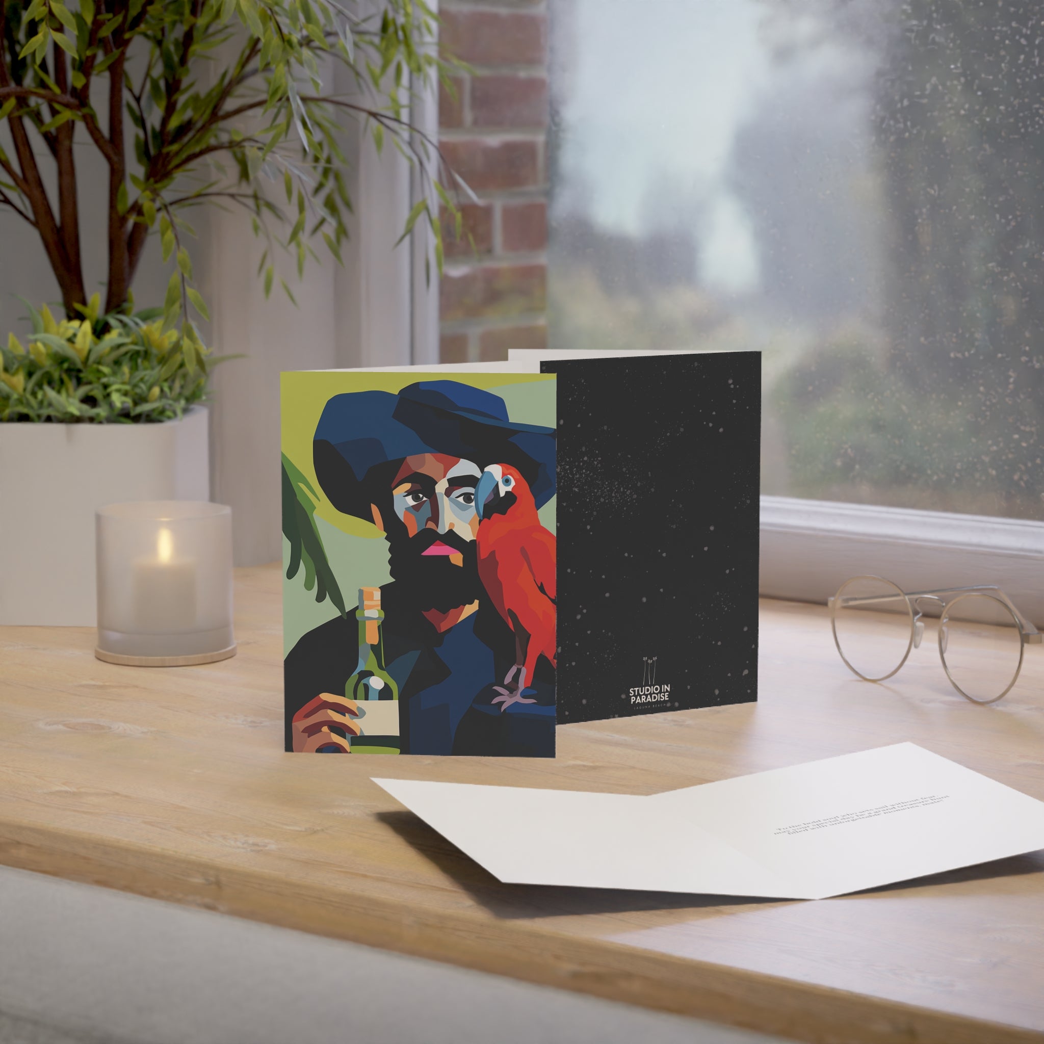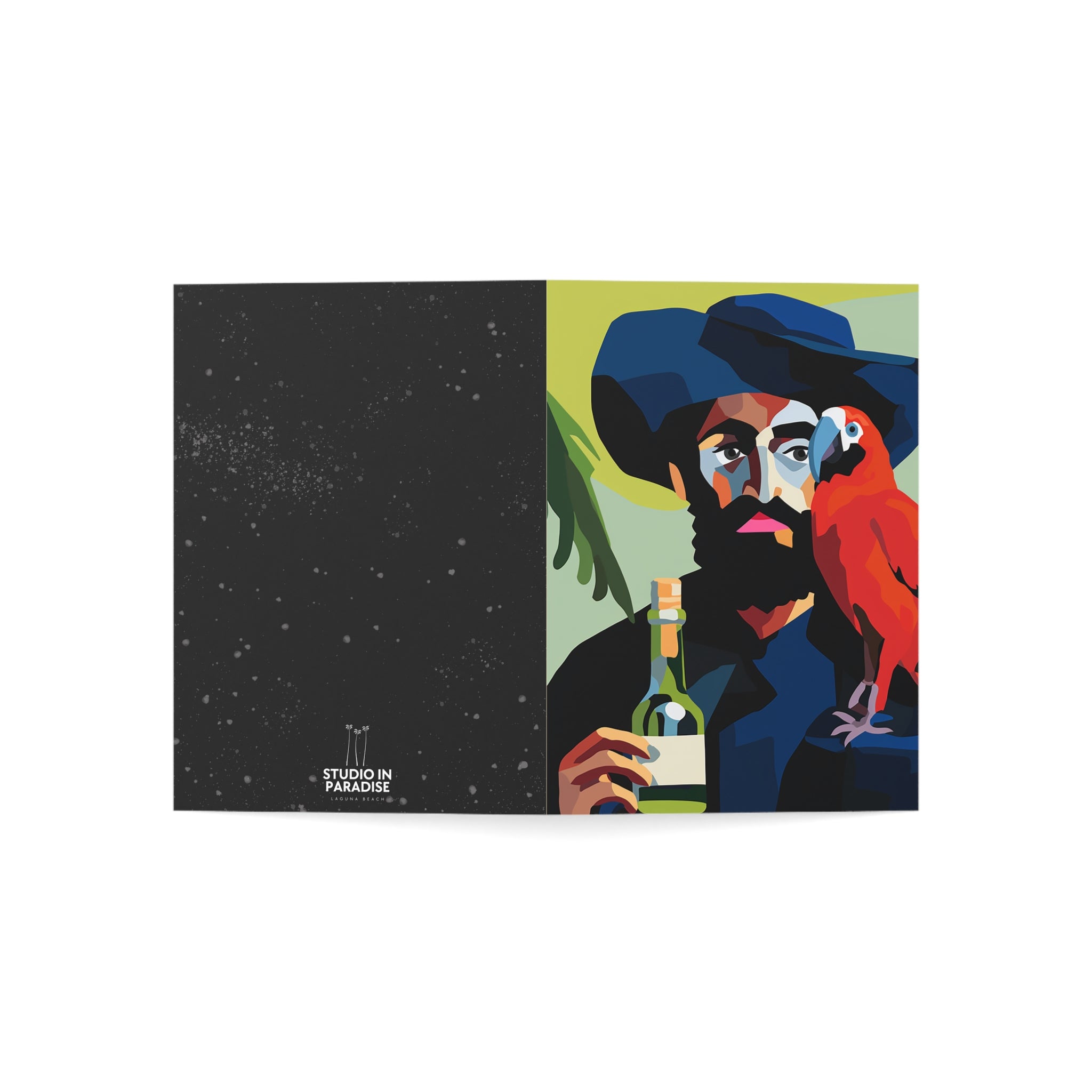Printed on premium, eco-friendly cardstock, each 5x7 inch card comes with a crisp white envelope, ensuring your message arrives in style. These cards make for cherished keepsakes, capturing the adventurous soul of the Caribbean and the thrill of a pirate's life. Whether you're a landlubber or a seasoned sailor, these cards promise to infuse every occasion with the vibrant spirit of the high seas. Order yours today, and let the adventures begin!