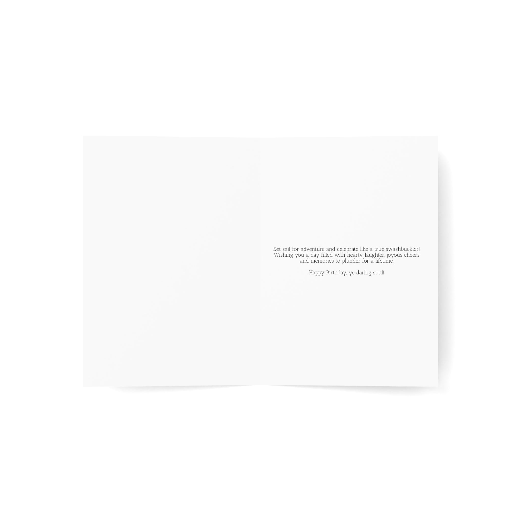 Printed on high-quality, eco-friendly cardstock, this 5x7 inch card comes with a crisp white envelope, ensuring your heartfelt message arrives in impeccable style. Whether you're sending birthday wishes to a young swashbuckler or a seasoned captain, this card is destined to be treasured as a keepsake of the adventurous spirit that defines a true pirate's life.