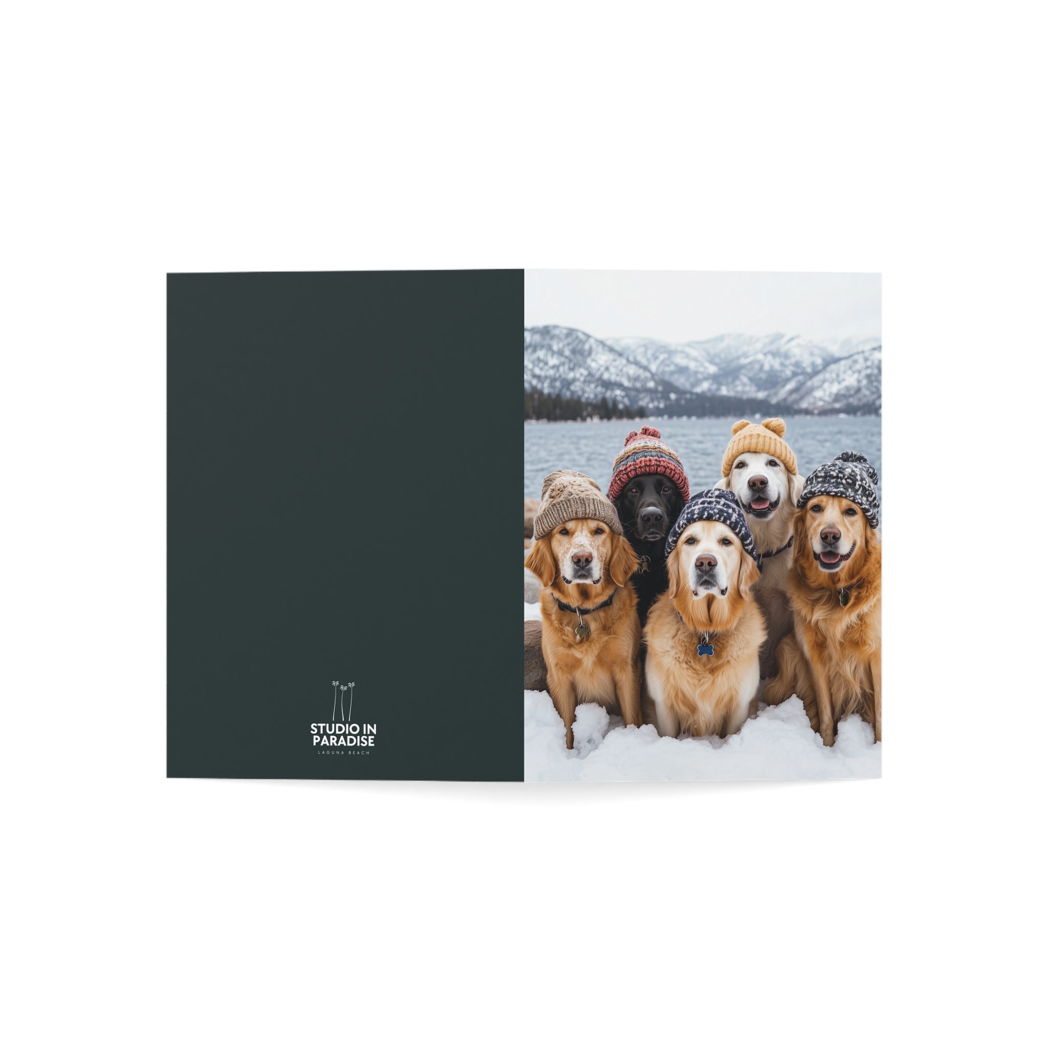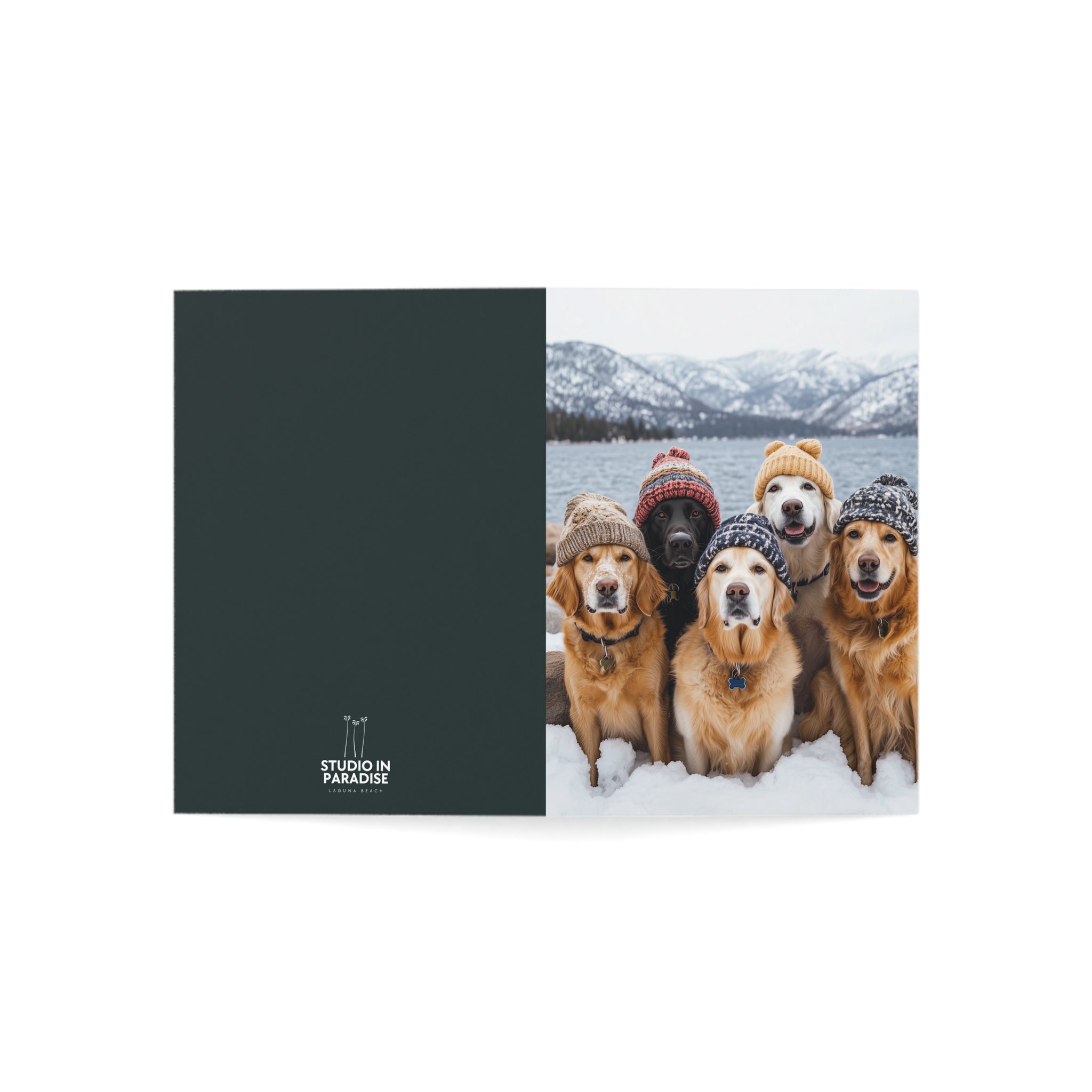 Celebrate the season with our "Powder Paws Collection" – a charming selection of holiday greeting cards featuring adorable dogs and puppies in festive winter scenes. From playful Golden Retriever puppies to cozy canines enjoying snowy landscapes, each card captures the warmth and joy of the holidays. Our Snow Much Fun! Dogs in Winter Wonderland Greeting Card is a standout in this collection, capturing a sweet Golden Retriever against a serene winter backdrop, making it the perfect way to send heartfelt holiday wishes.
