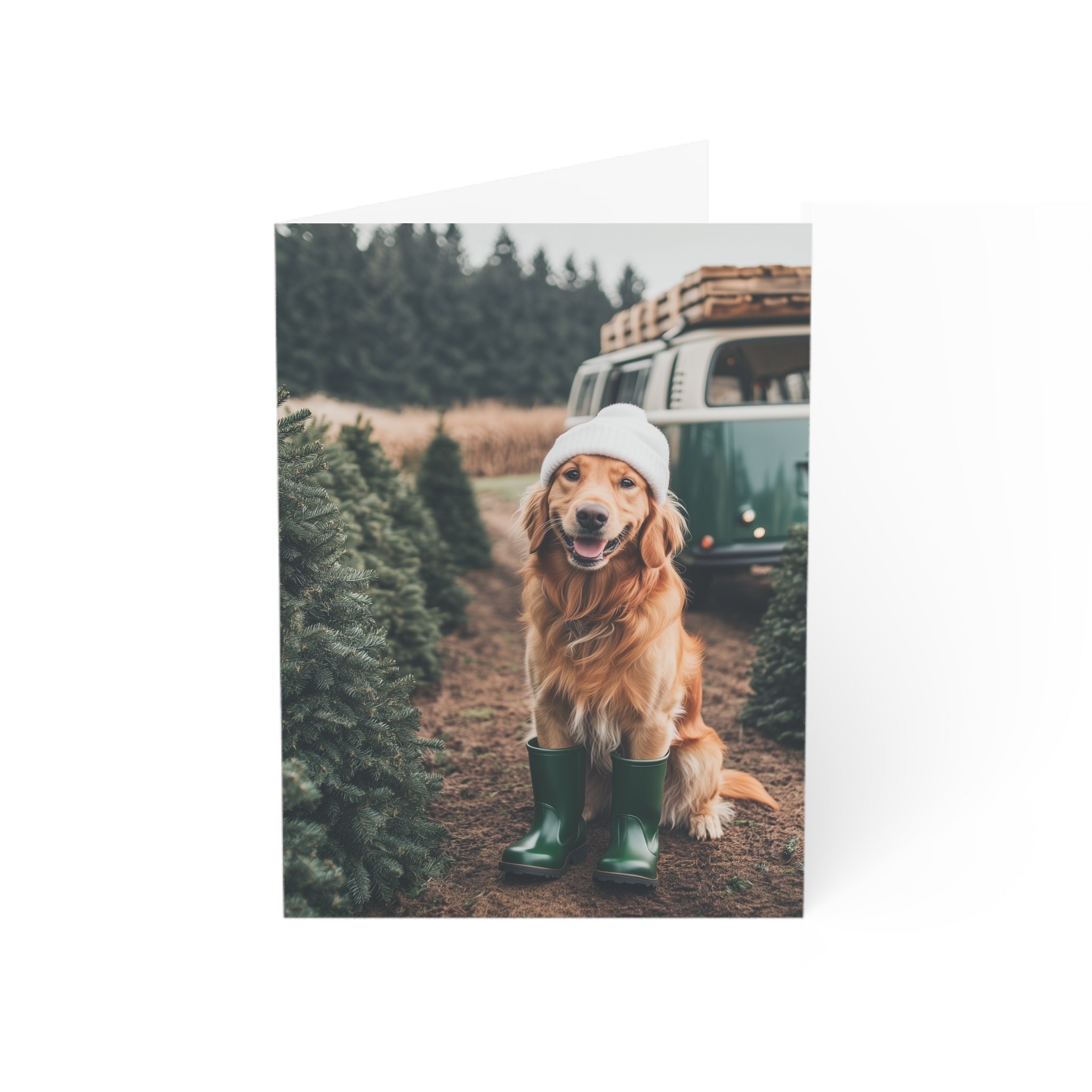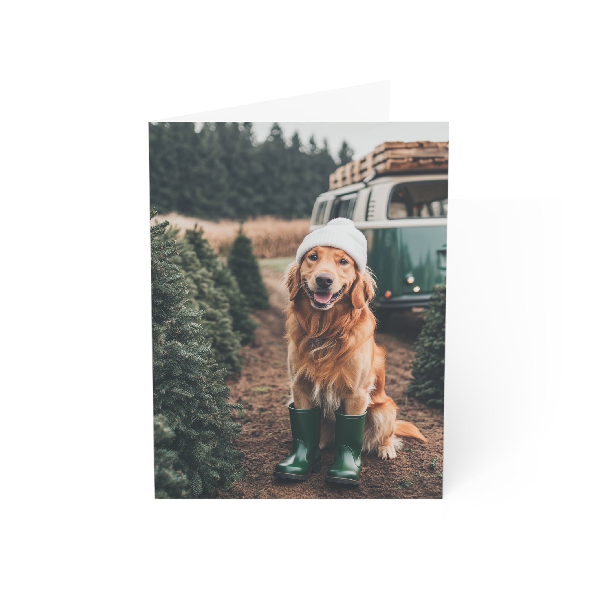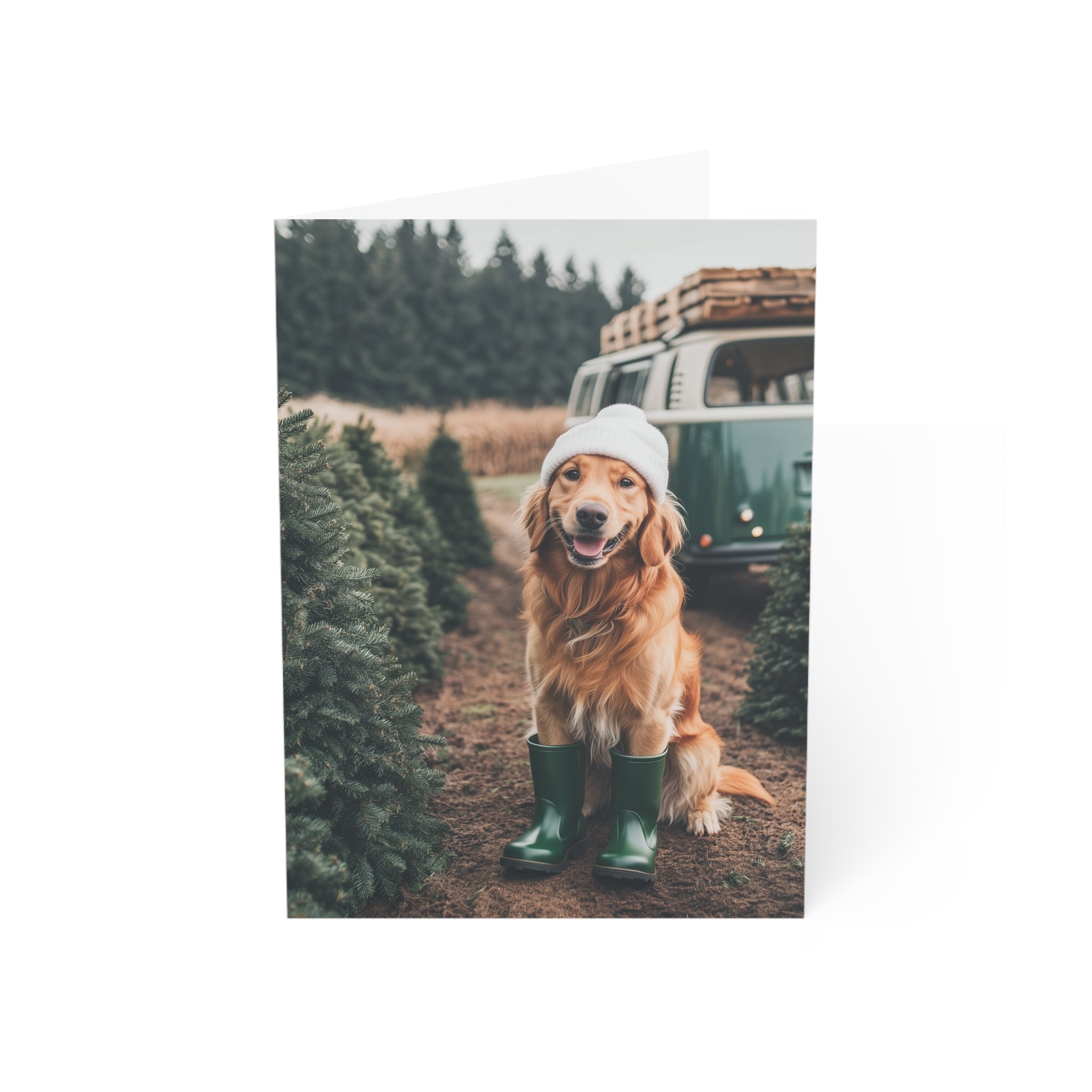 Celebrate the season with our "Powder Paws Collection" – a charming selection of holiday greeting cards featuring adorable dogs and puppies in festive winter scenes. From playful Golden Retriever puppies to cozy canines enjoying snowy landscapes, each card captures the warmth and joy of the holidays. Our Winter Woofs Greeting Card stands out in this collection, capturing a sweet Golden Retriever against a serene winter Christmas Tree Farm backdrop, making it the perfect way to send heartfelt holiday wishes.