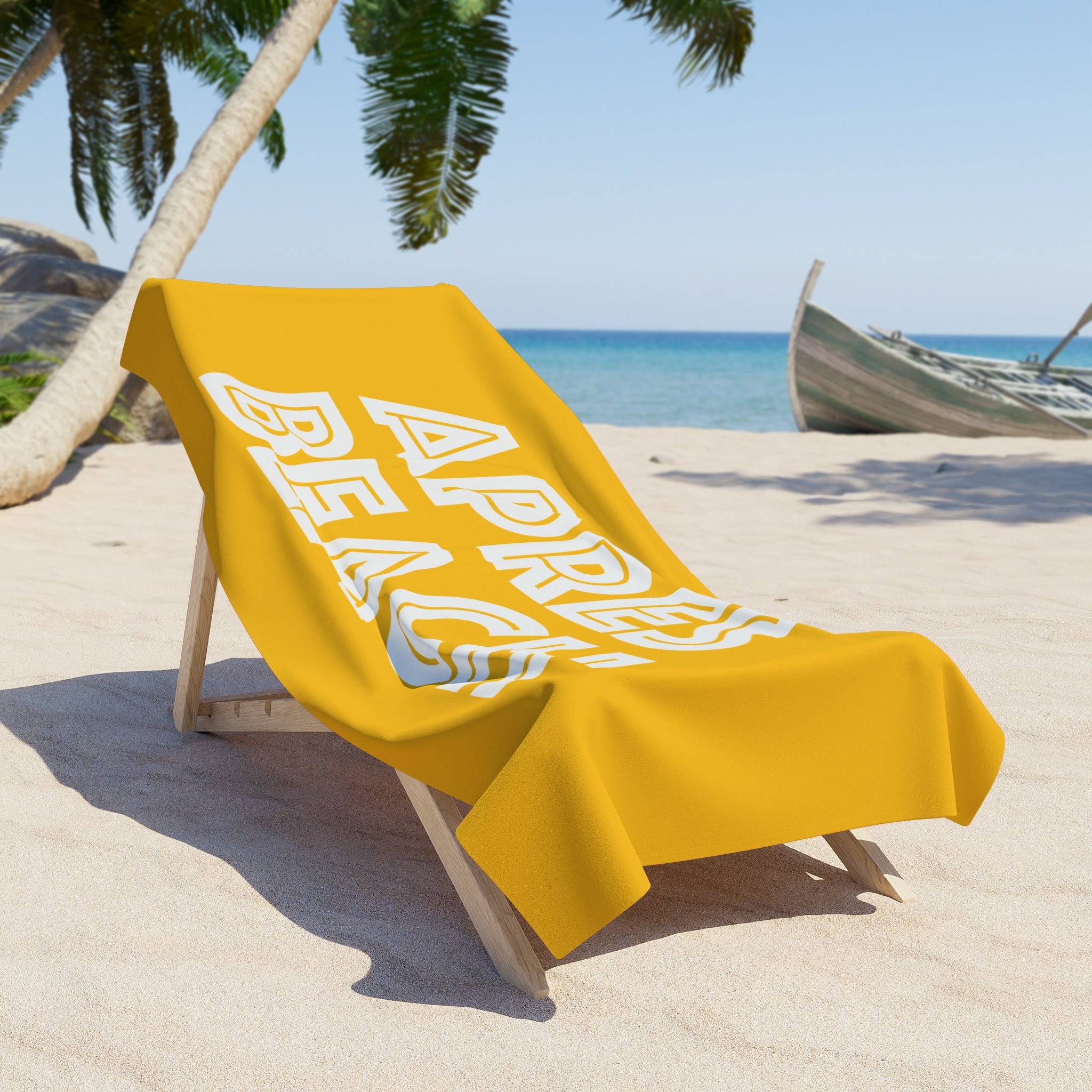 Brighten your sunny days with our Après Beach Yellow Beach Towel! This vibrant and cheerful towel is perfect for lounging by the waves, relaxing by the pool, or adding a burst of sunshine to your summer adventures. Luxuriously soft and made for durability, it’s the ultimate accessory for stylish and comfortable beach days.