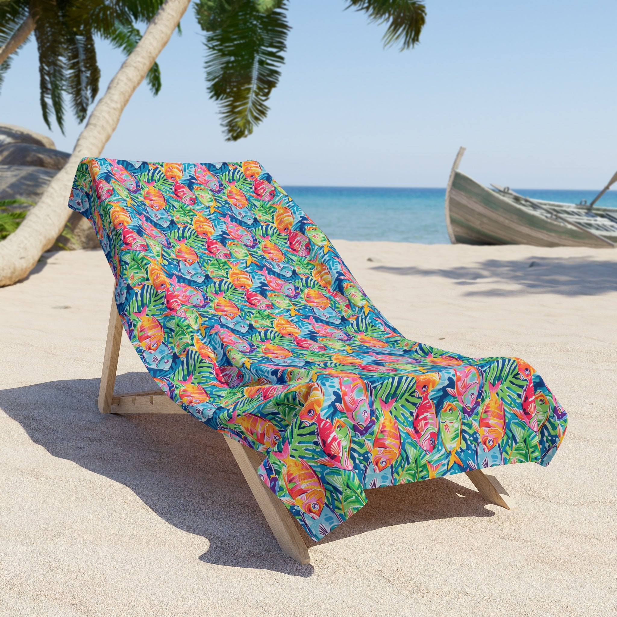 Make your beach days even brighter with our luxuriously soft Tropical Fish Beach Towel. Designed for comfort and style, this heavyweight towel features a vibrant polyester front that showcases your favorite prints in stunning detail, and a durable cotton loop backing for long-lasting use. Whether lounging by the waves or drying off after a swim, this towel adds a touch of tropical bliss to your day.
