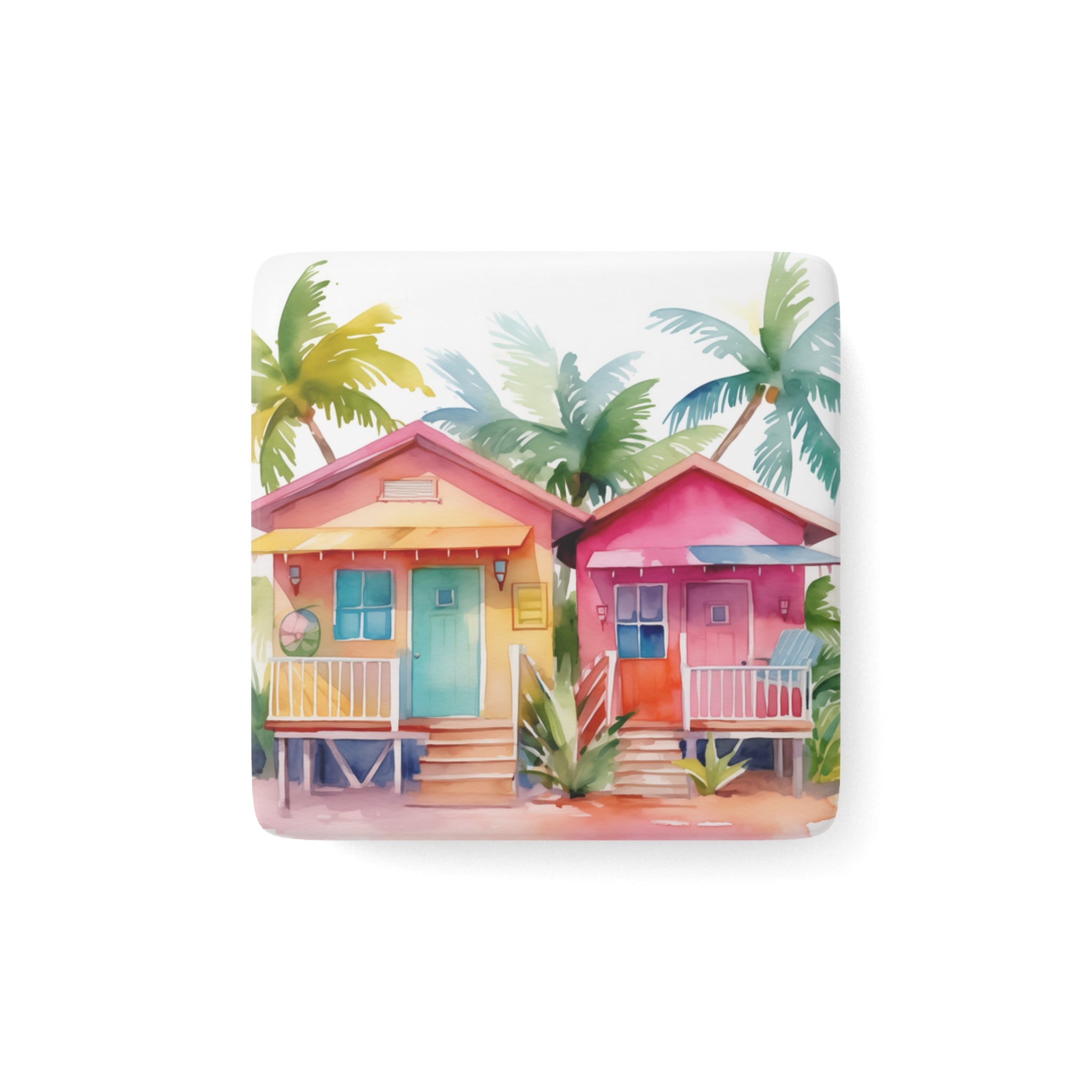 Measuring at a charming 2" square, this magnet brings a touch of tropical paradise to your home. Its high-quality watercolor rendering ensures vivid colors that pop, whether adorning your kitchen appliances or gracing any magnetic surface around the house. Part of our exclusive Bungalow Collection, this magnet is more than a decorative piece; it's a keepsake that invites you to savor the tranquility of Aruba whenever you pass by. Match it with our Aruba mug! Created with precision and care, it exudes a personalized charm that adds a sweet touch to any space.
