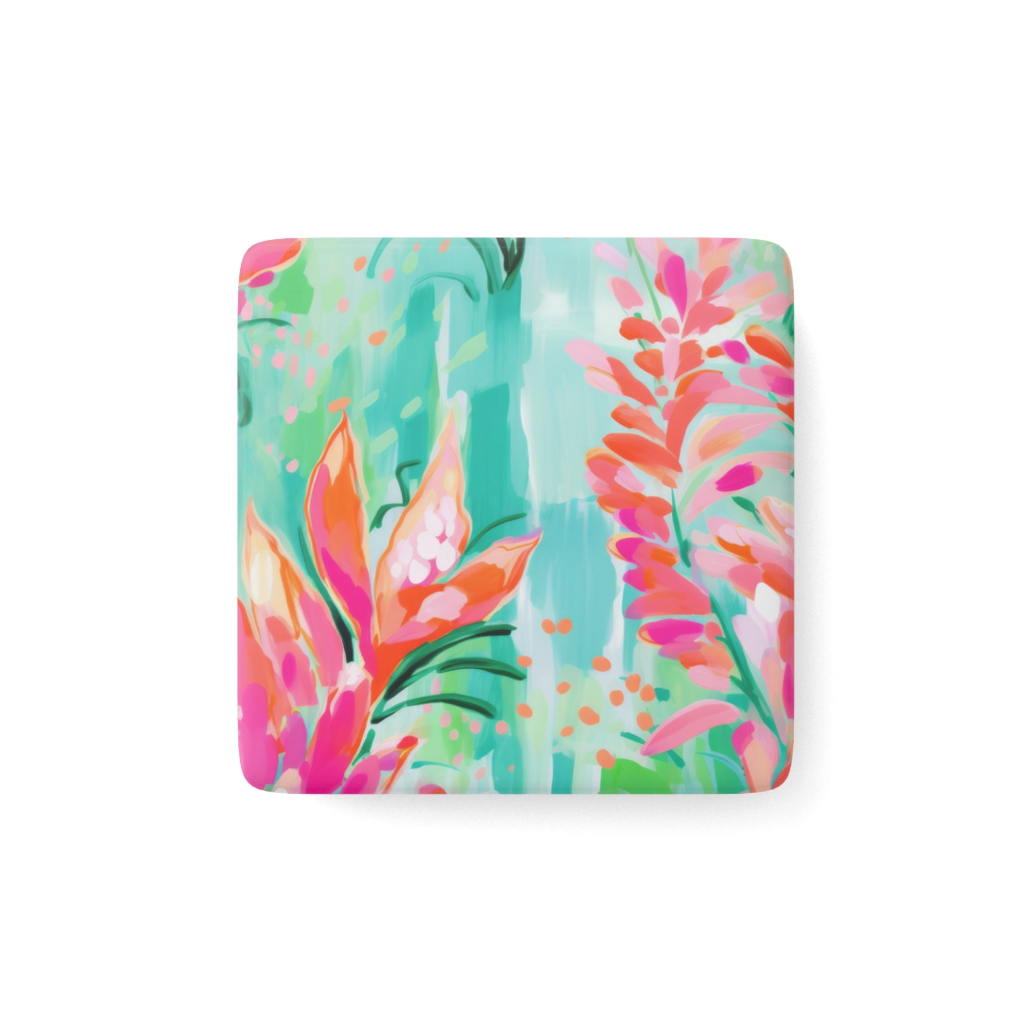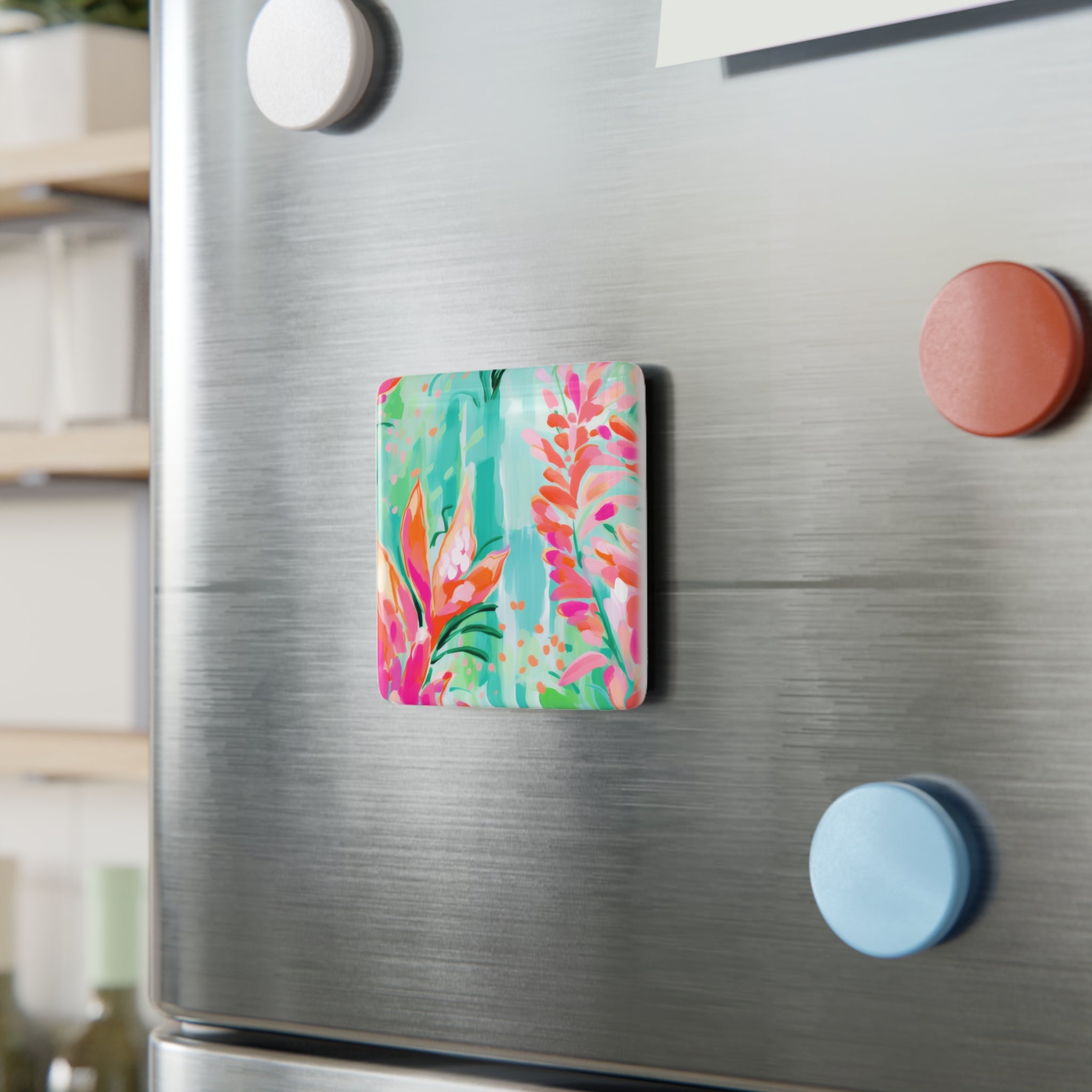 Transform your space with the enchanting beauty of our watercolor "Eden Island" tropical-themed magnet. These beauties are part of our "Island Fiesta" collection and feature exquisite illustrations of sea shells, starfish, gorgeous tropical flowers, fish, and everything beach and island-inspired. Each magnet brings a touch of the tropics to your home, capturing the vibrant colors and serene vibes of coastal paradise. Measuring a charming 2" square, these magnets are perfect for adding a splash of tropical charm to any magnetic surface.