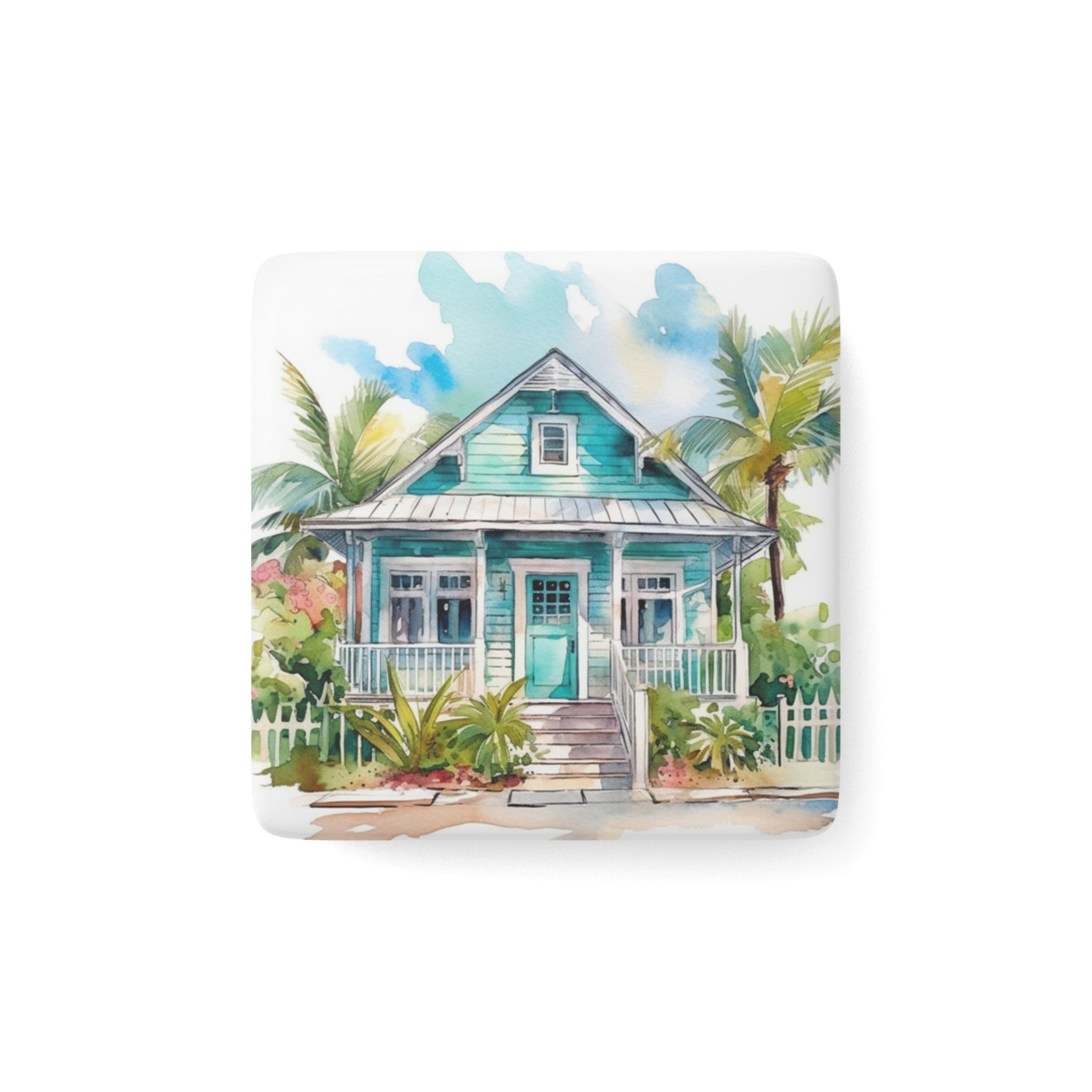 Measuring at a charming 2" square, this magnet brings a touch of tropical paradise to your home. Its high-quality watercolor rendering ensures vivid colors that pop, whether adorning your kitchen appliances or gracing any magnetic surface around the house. Part of our exclusive Bungalow Collection, this magnet is more than a decorative piece; it's a keepsake that invites you to savor the tranquility of Tahiti whenever you pass by. Match it with our Bora Bora mug! Created with precision and care, it exudes a personalized charm that adds a sweet touch to any space.