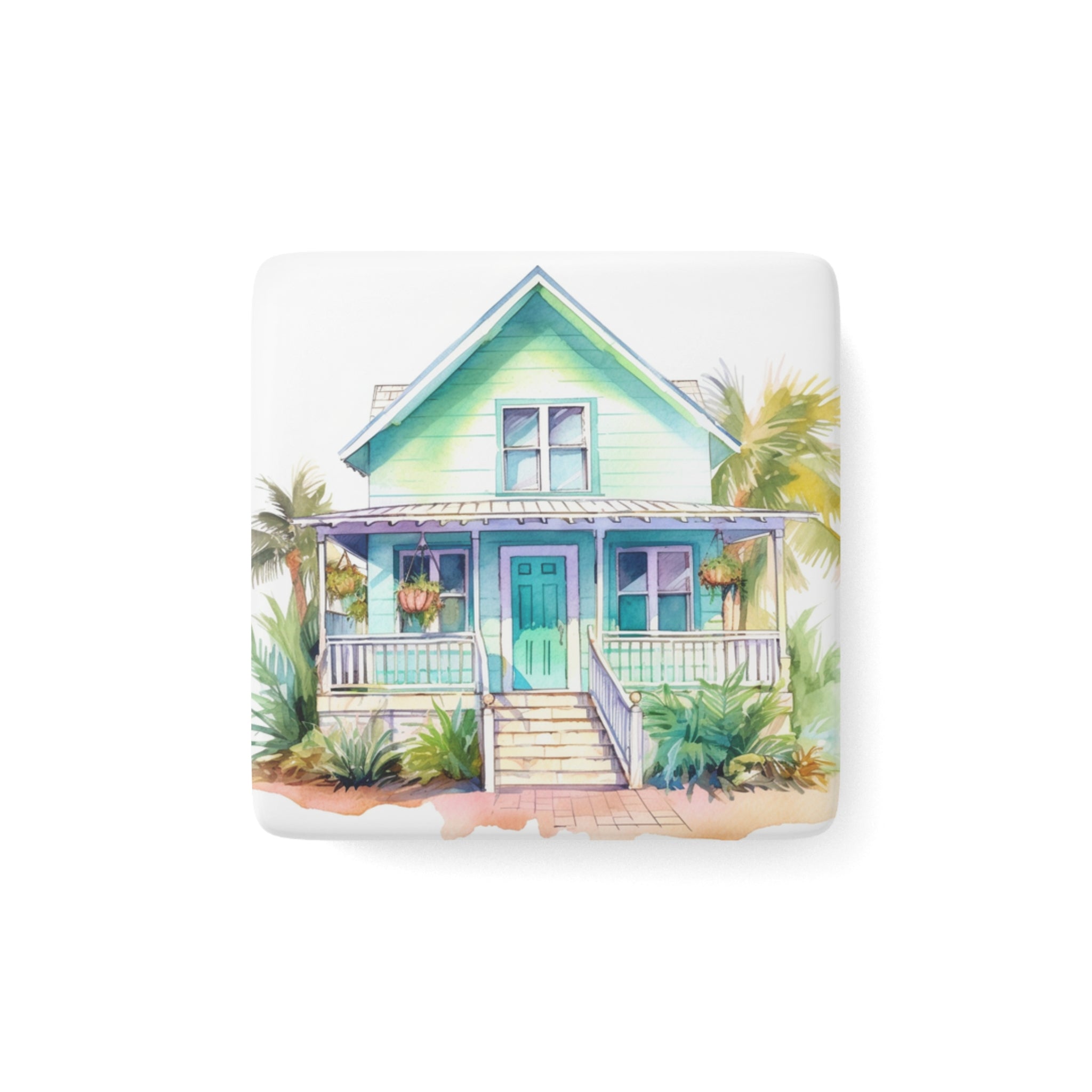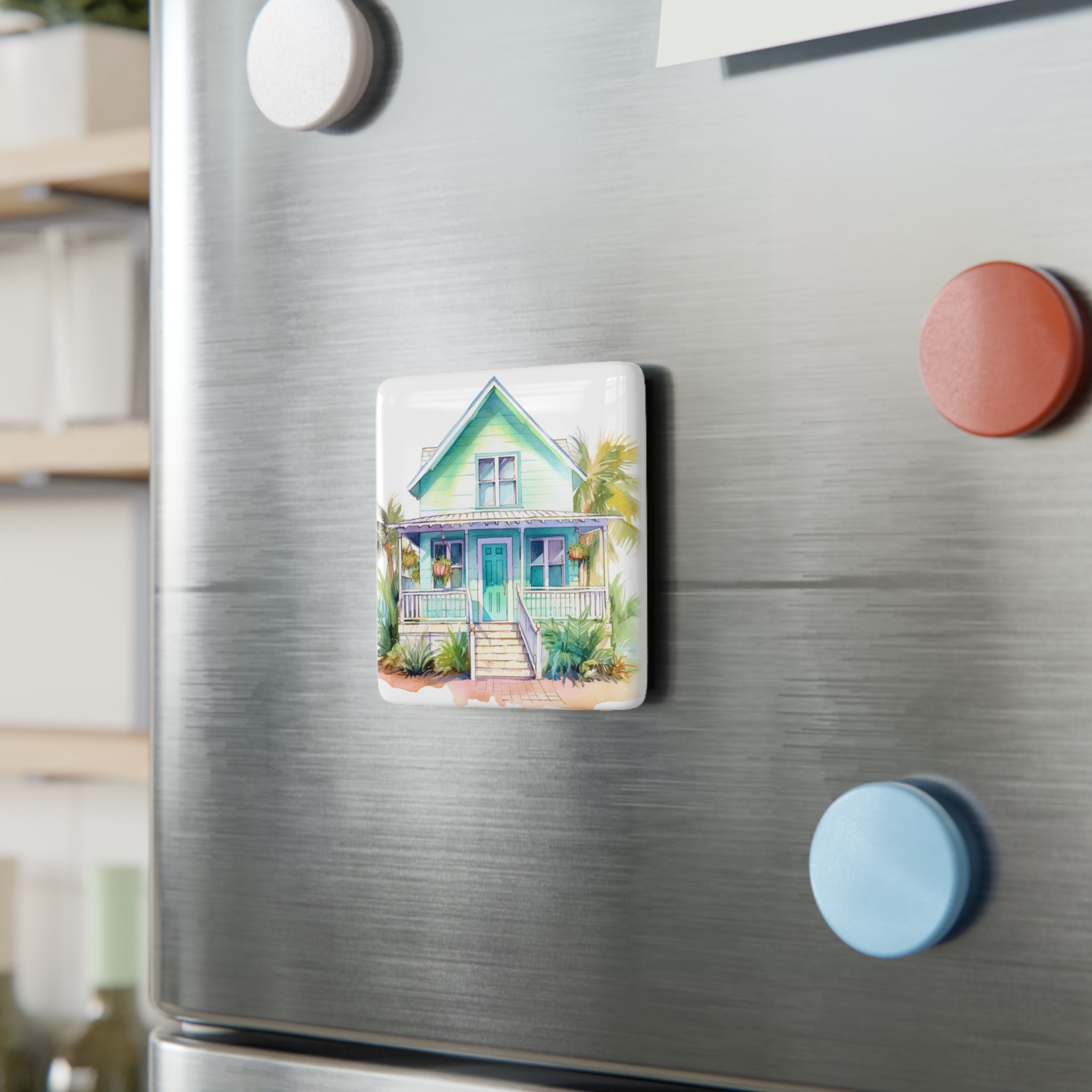 Measuring at a charming 2" square, this magnet brings a touch of tropical paradise to your home. Its high-quality watercolor rendering ensures vivid colors that pop, whether adorning your kitchen appliances or gracing any magnetic surface around the house. Part of our exclusive Bungalow Collection, this magnet is more than a decorative piece; it's a keepsake that invites you to savor the tranquility of Key West whenever you pass by. Match it with our Key West mug! Created with precision and care, it exudes a personalized charm that adds a sweet touch to any space. Collect them all to curate a gallery of cherished memories or choose this Key West bungalow as a standalone reminder of serene escapes.