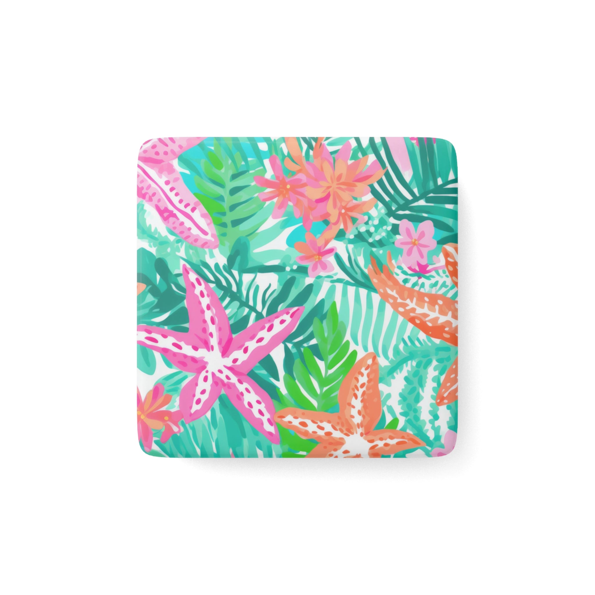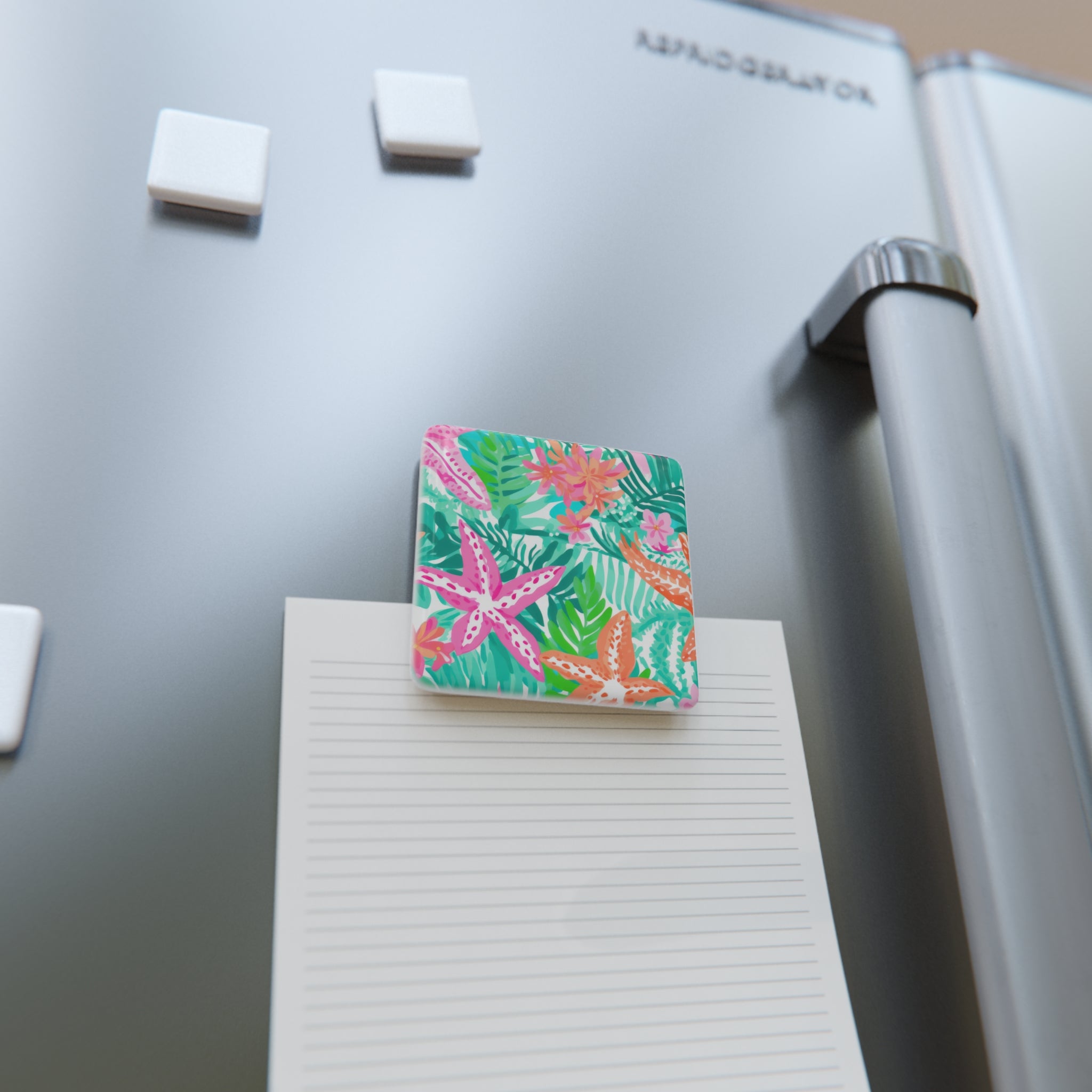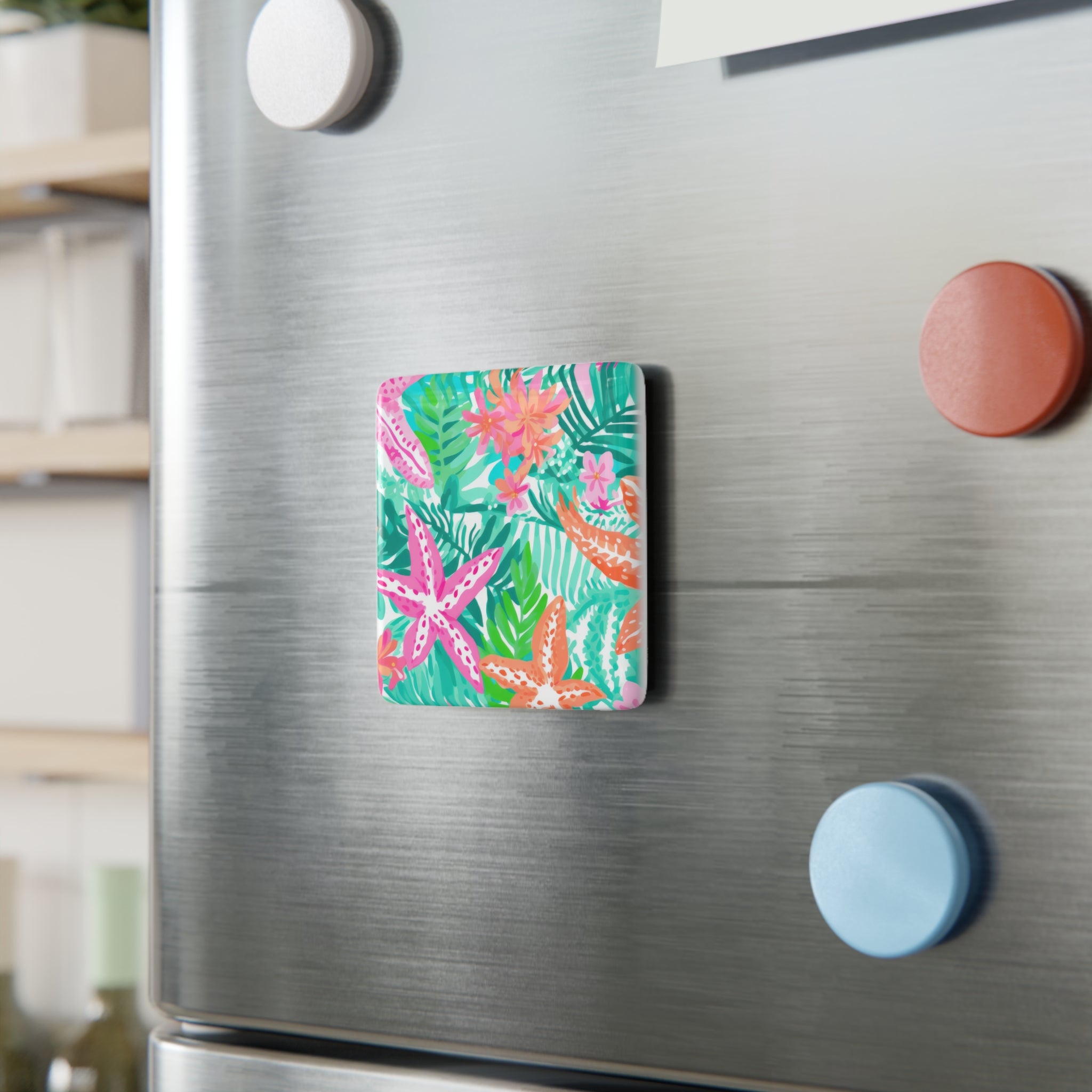 Transform your space with the enchanting beauty of our watercolor "Marine Majesty" tropical-themed magnet. These beauties are part of our "Island Fiesta" collection and feature exquisite illustrations of sea shells, starfish, gorgeous tropical flowers, fish, and everything beach and island-inspired. Each magnet brings a touch of the tropics to your home, capturing the vibrant colors and serene vibes of coastal paradise. Measuring a charming 2" square, these magnets are perfect for adding a splash of tropical charm to any magnetic surface.
