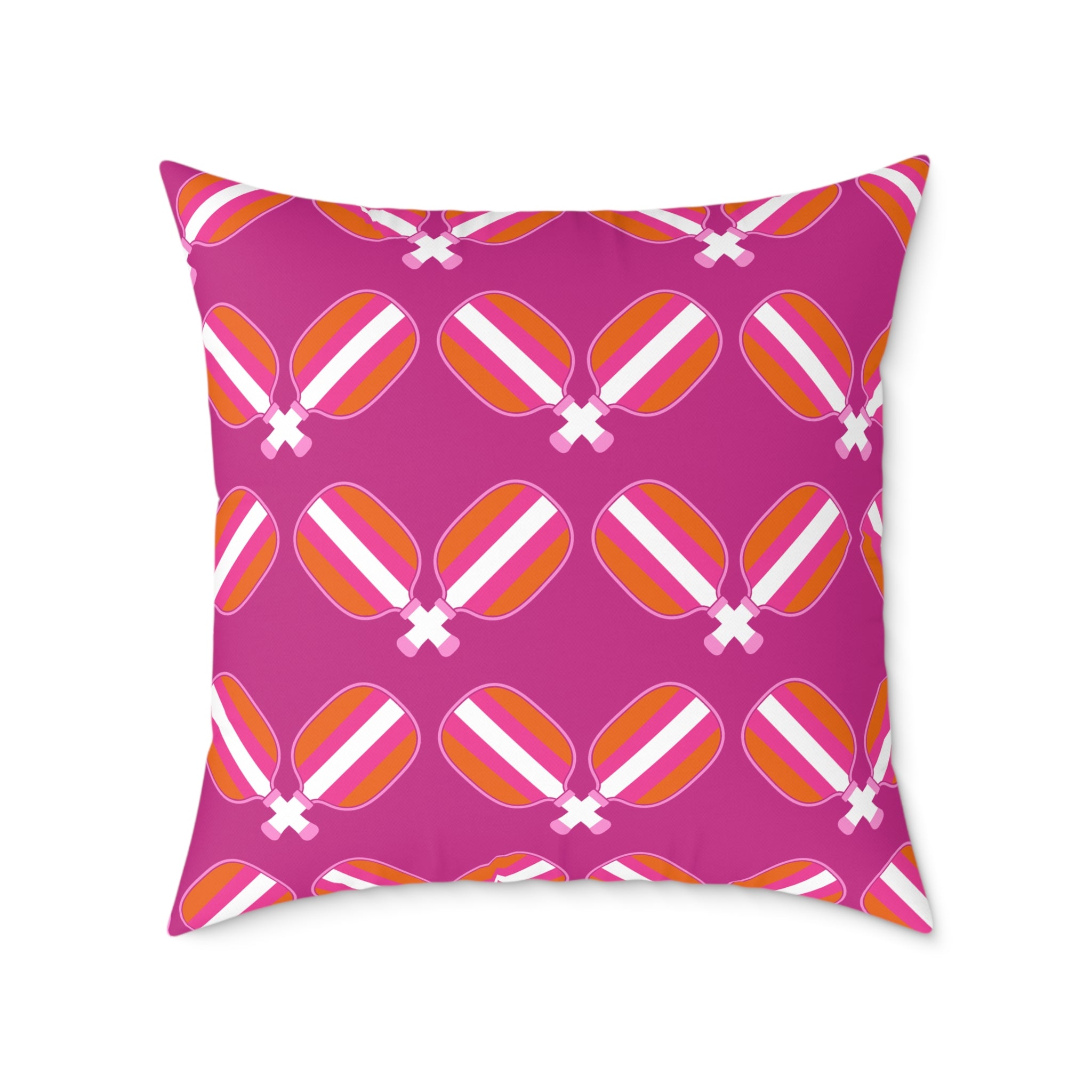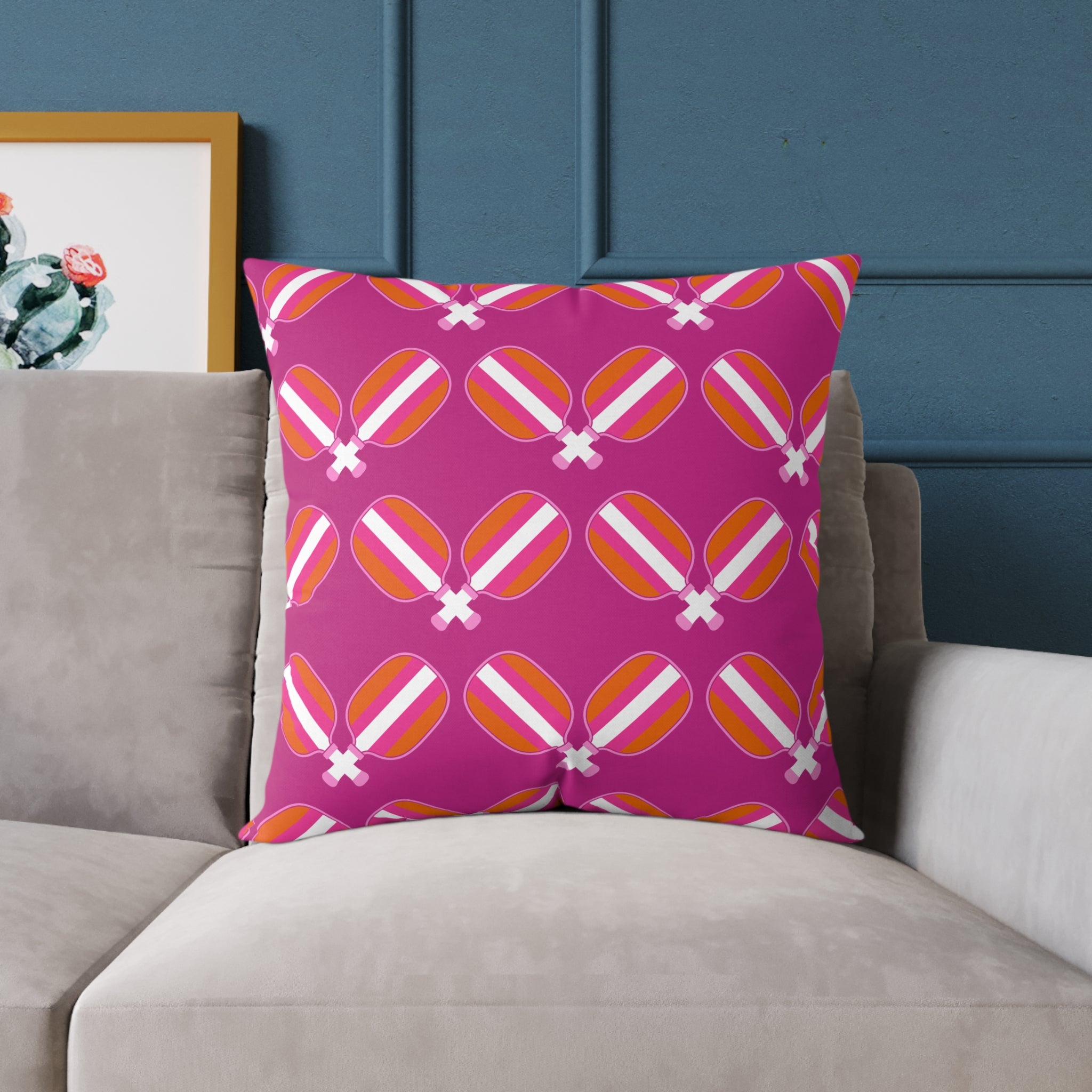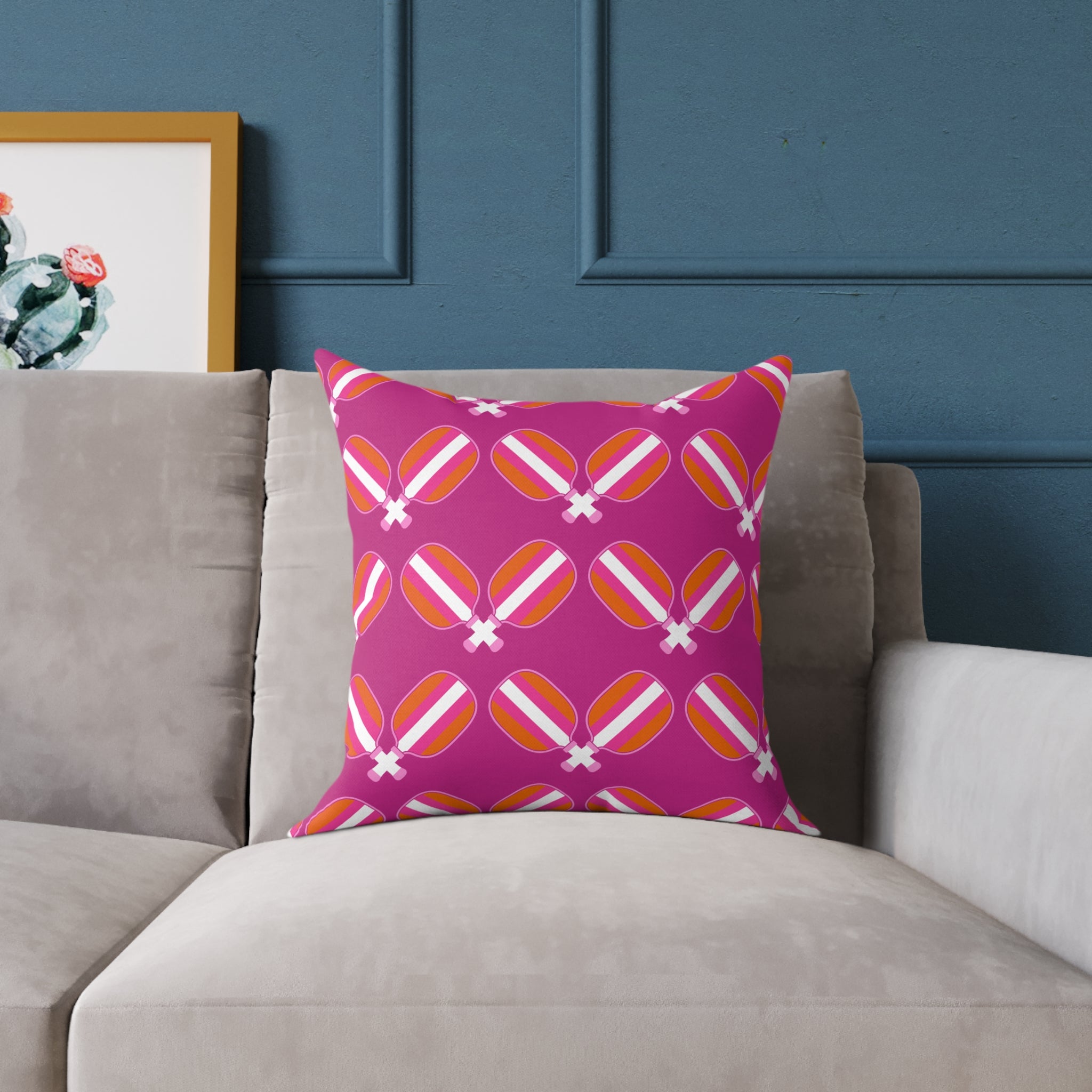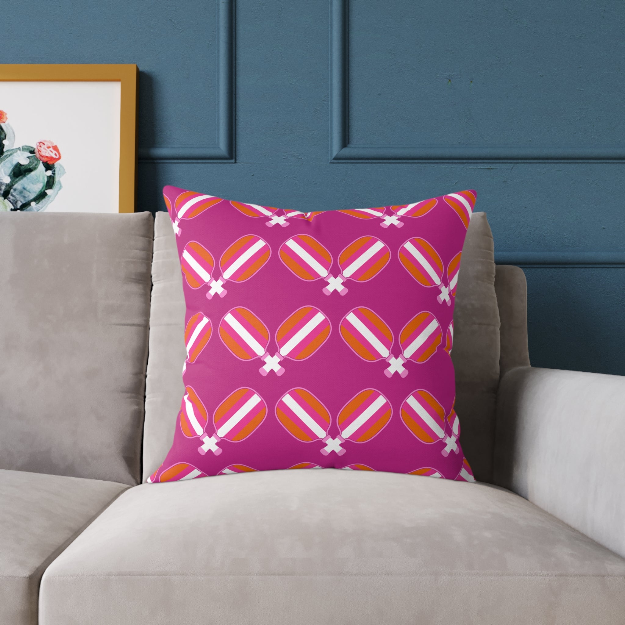 Preppy & Fun Design – Featuring a playful orange and pink pickleball paddle pattern, this pillow is a must-have for any pickleball lover.