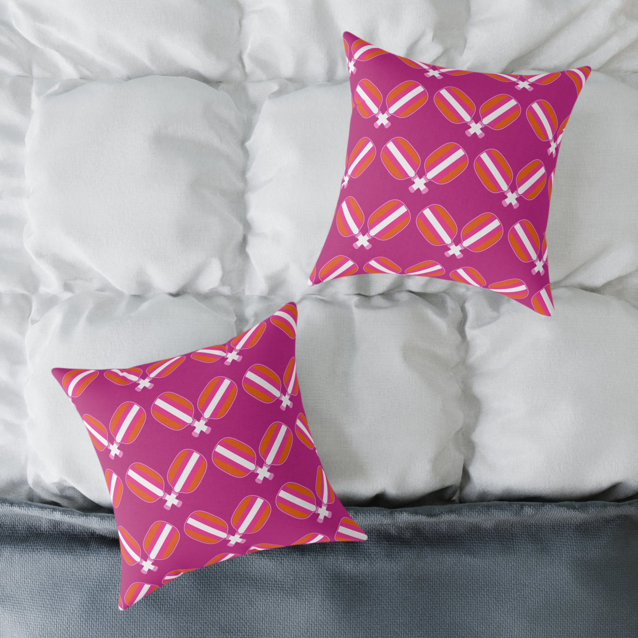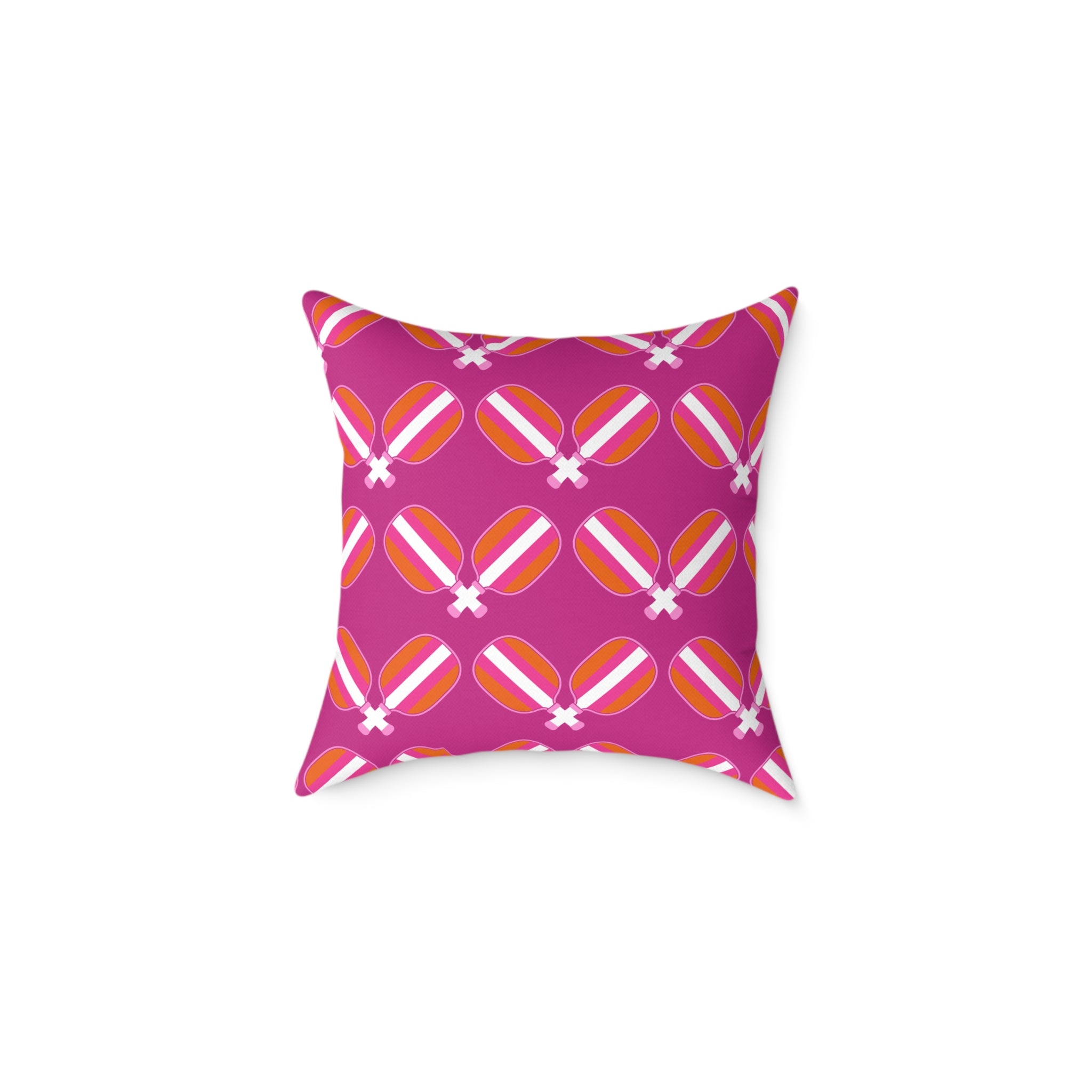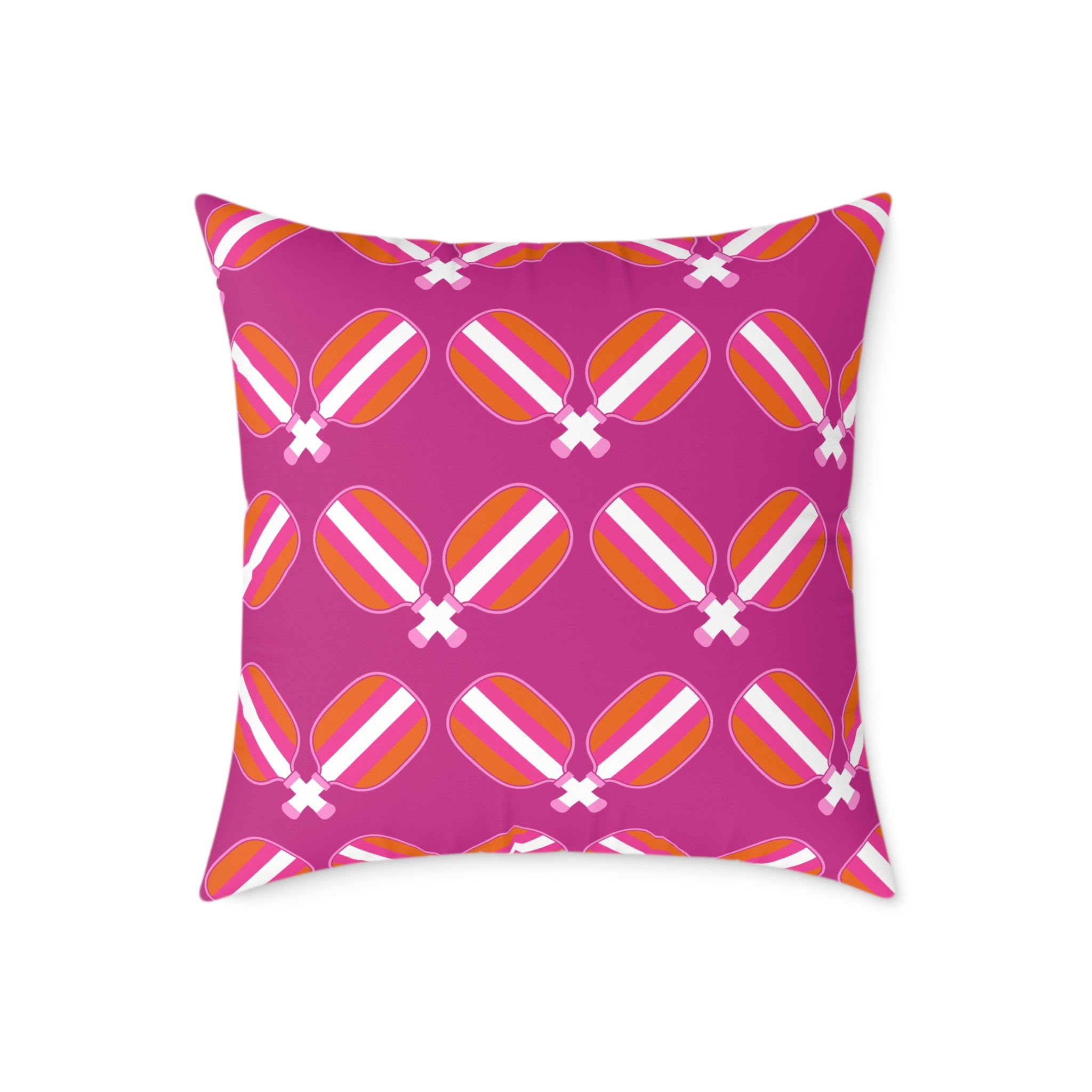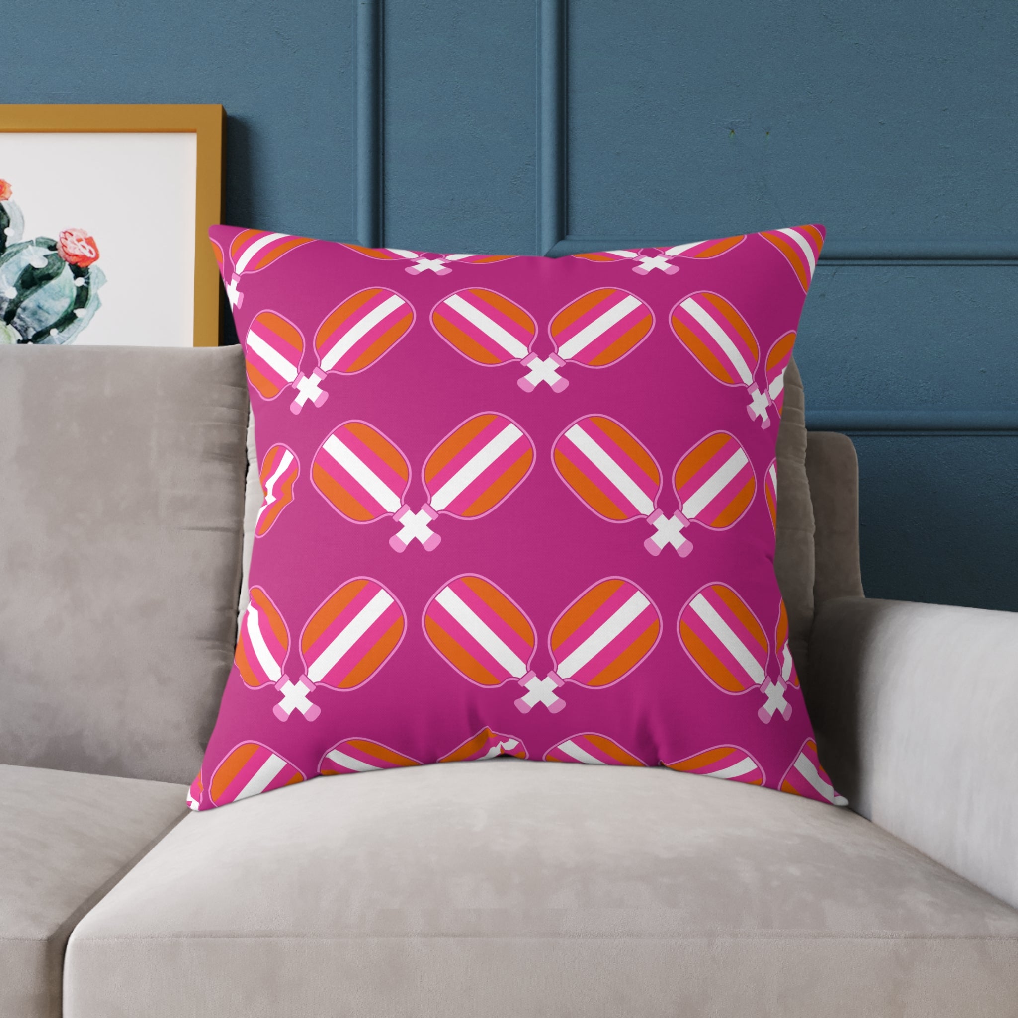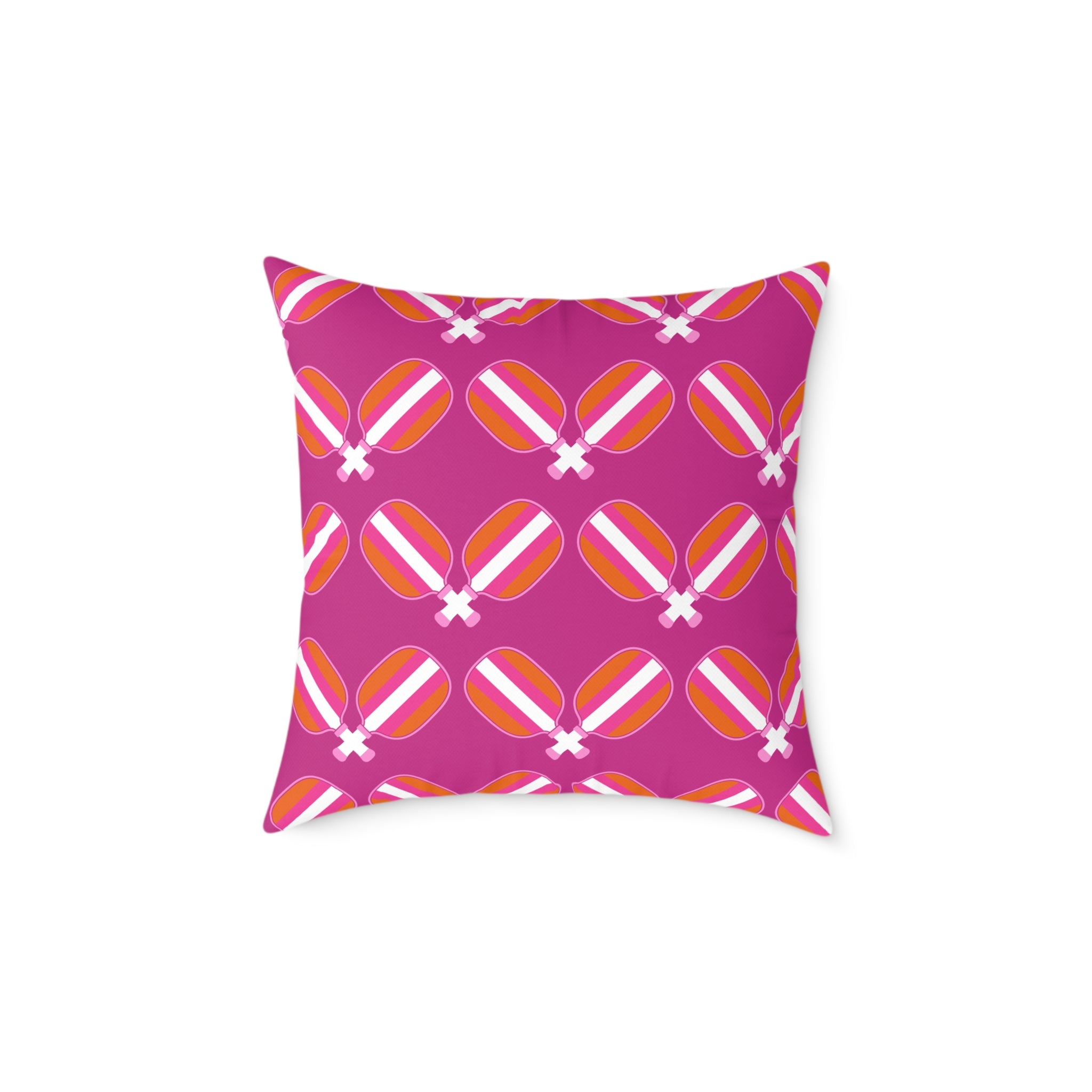Preppy & Fun Design – Featuring a playful orange and pink pickleball paddle pattern, this pillow is a must-have for any pickleball lover.
