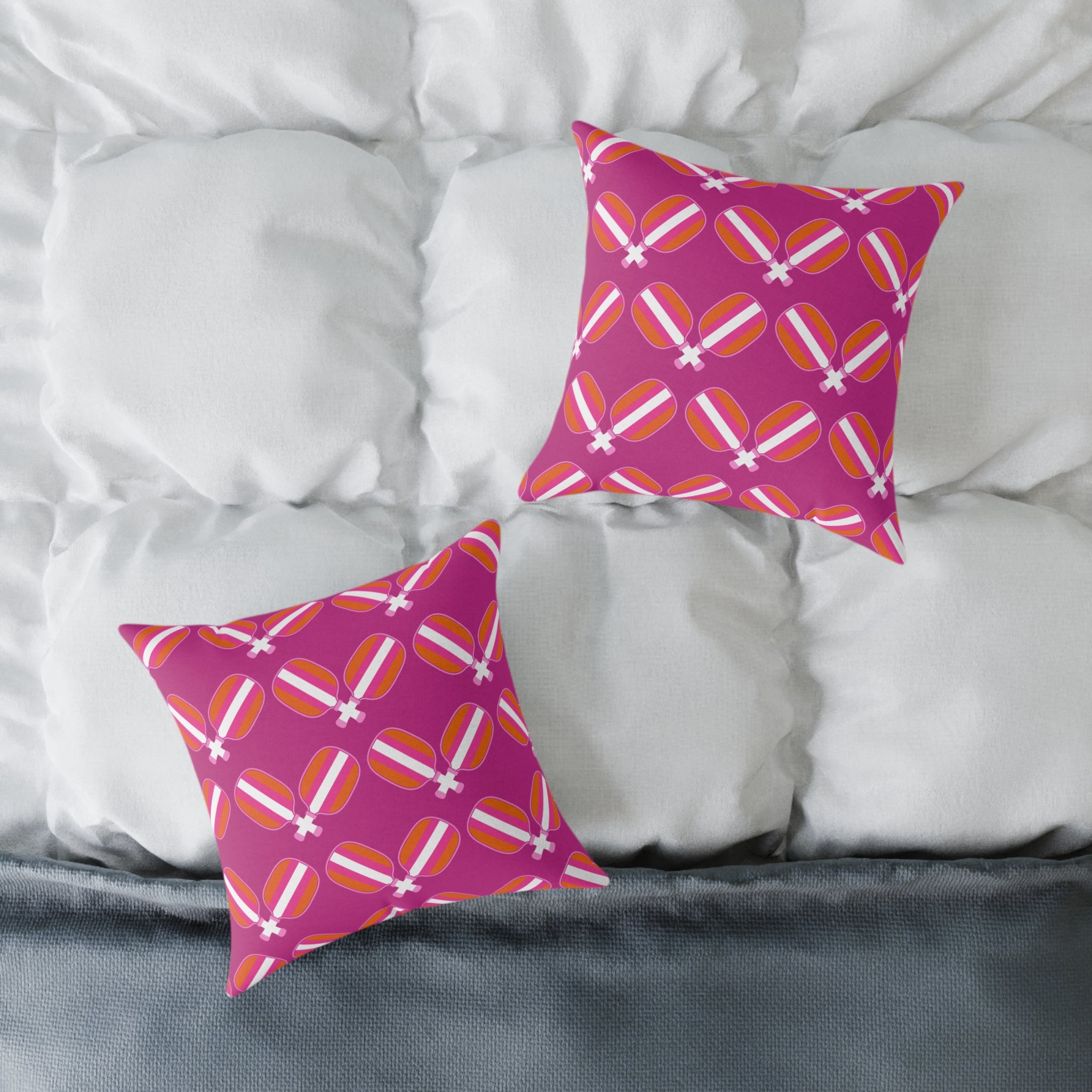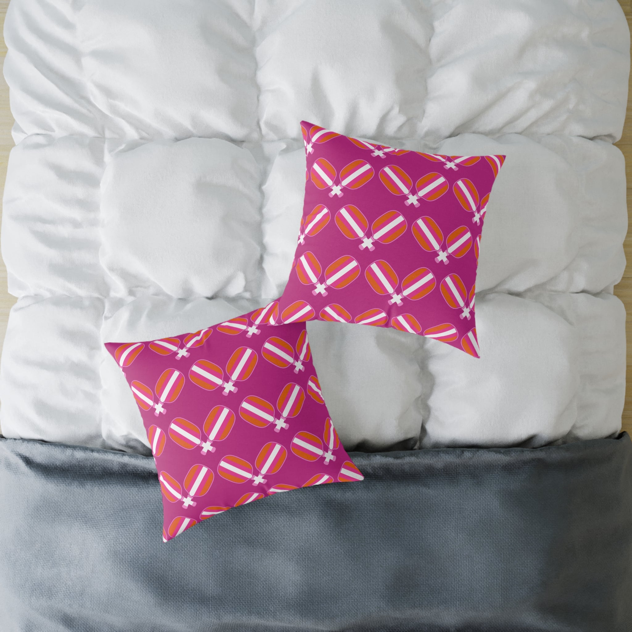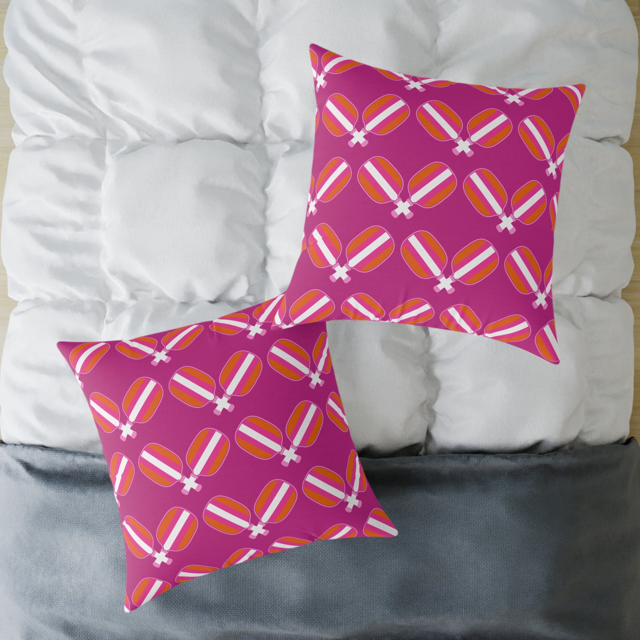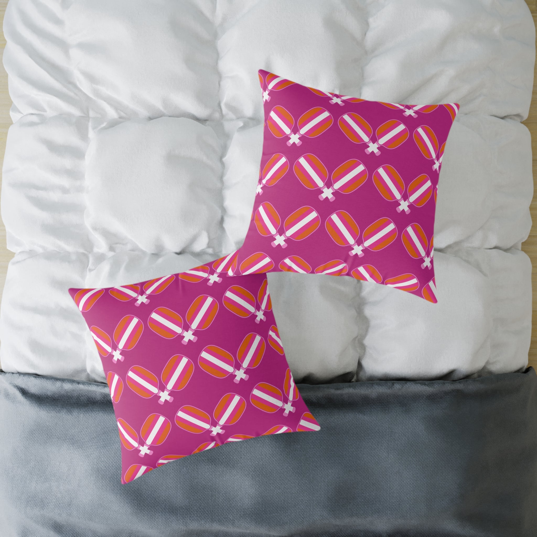 Preppy & Fun Design – Featuring a playful orange and pink pickleball paddle pattern, this pillow is a must-have for any pickleball lover.