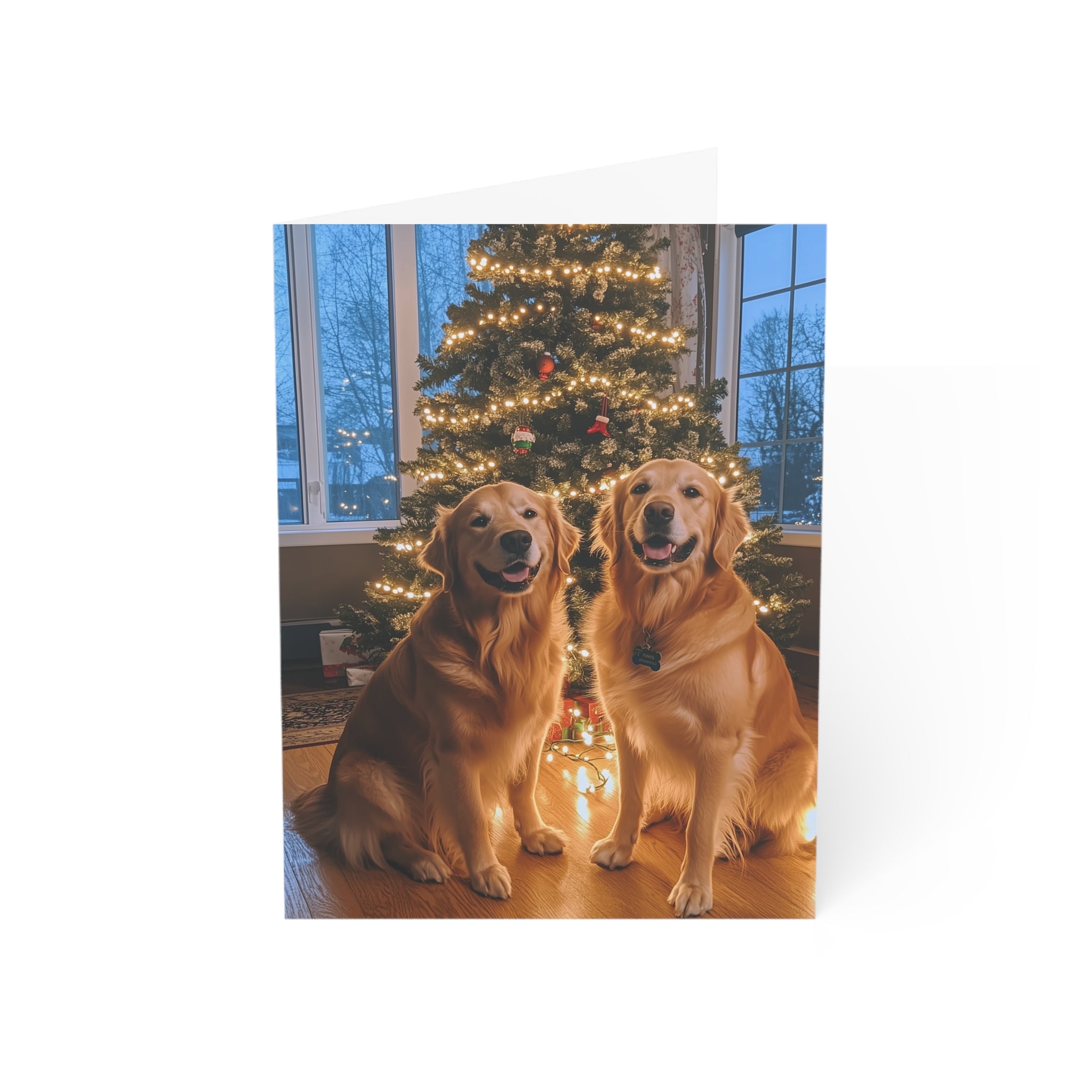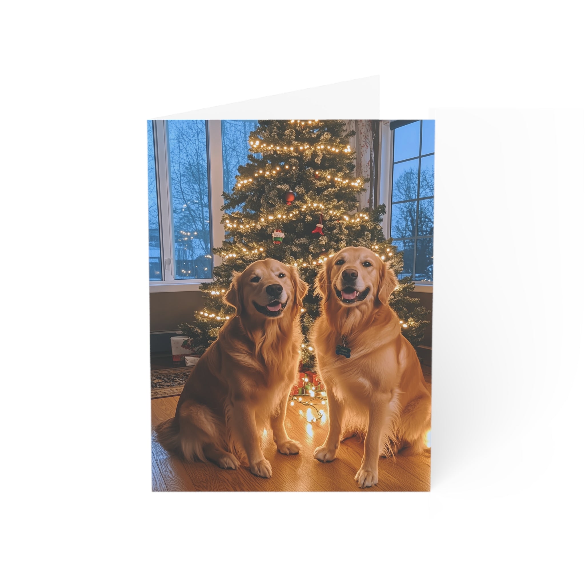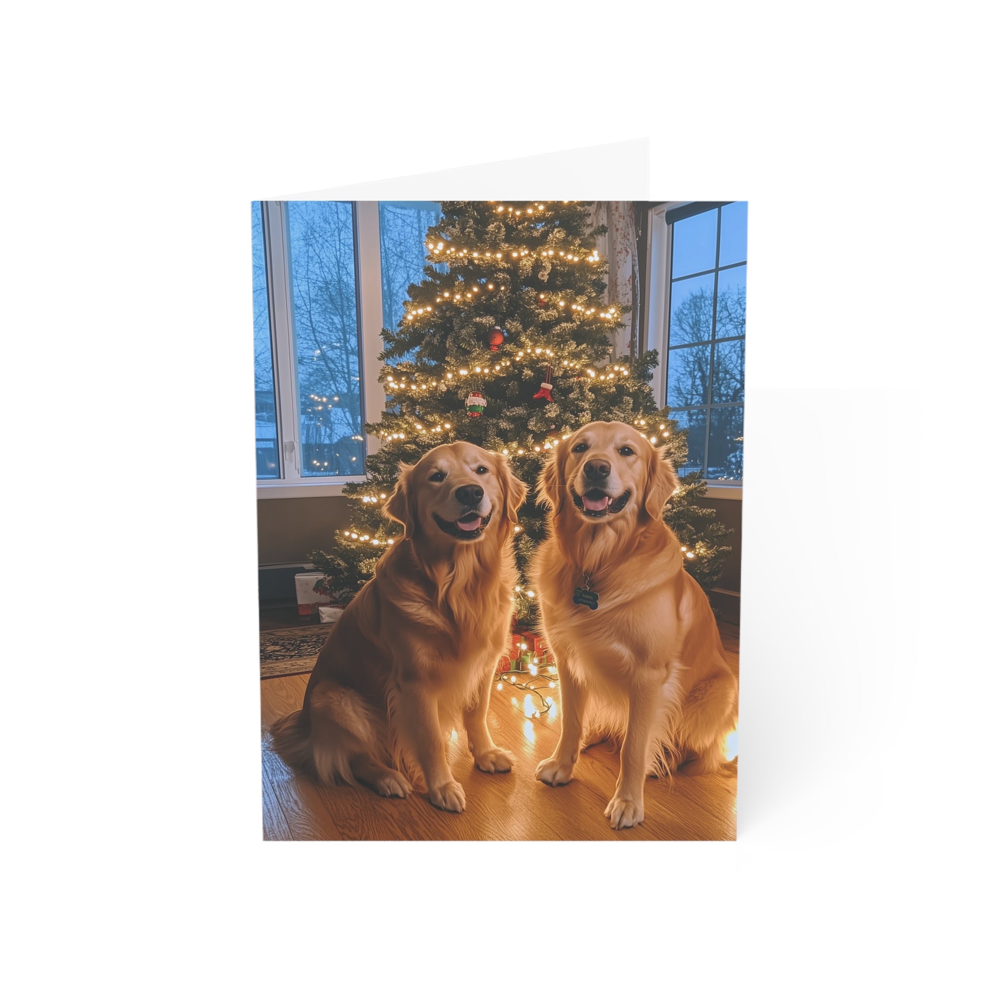 Celebrate the season with our "Powder Paws Collection" – a charming selection of holiday greeting cards featuring adorable dogs and puppies in festive winter scenes. From playful Golden Retriever puppies to cozy canines enjoying snowy landscapes, each card captures the warmth and joy of the holidays. Our Furever Festive Golden Retrievers Christmas Card stands out in this collection, capturing two adorable Golden Retrievers happily posing in front of their beautiful Christmas tree, making it the perfect way to send heartfelt holiday wishes.