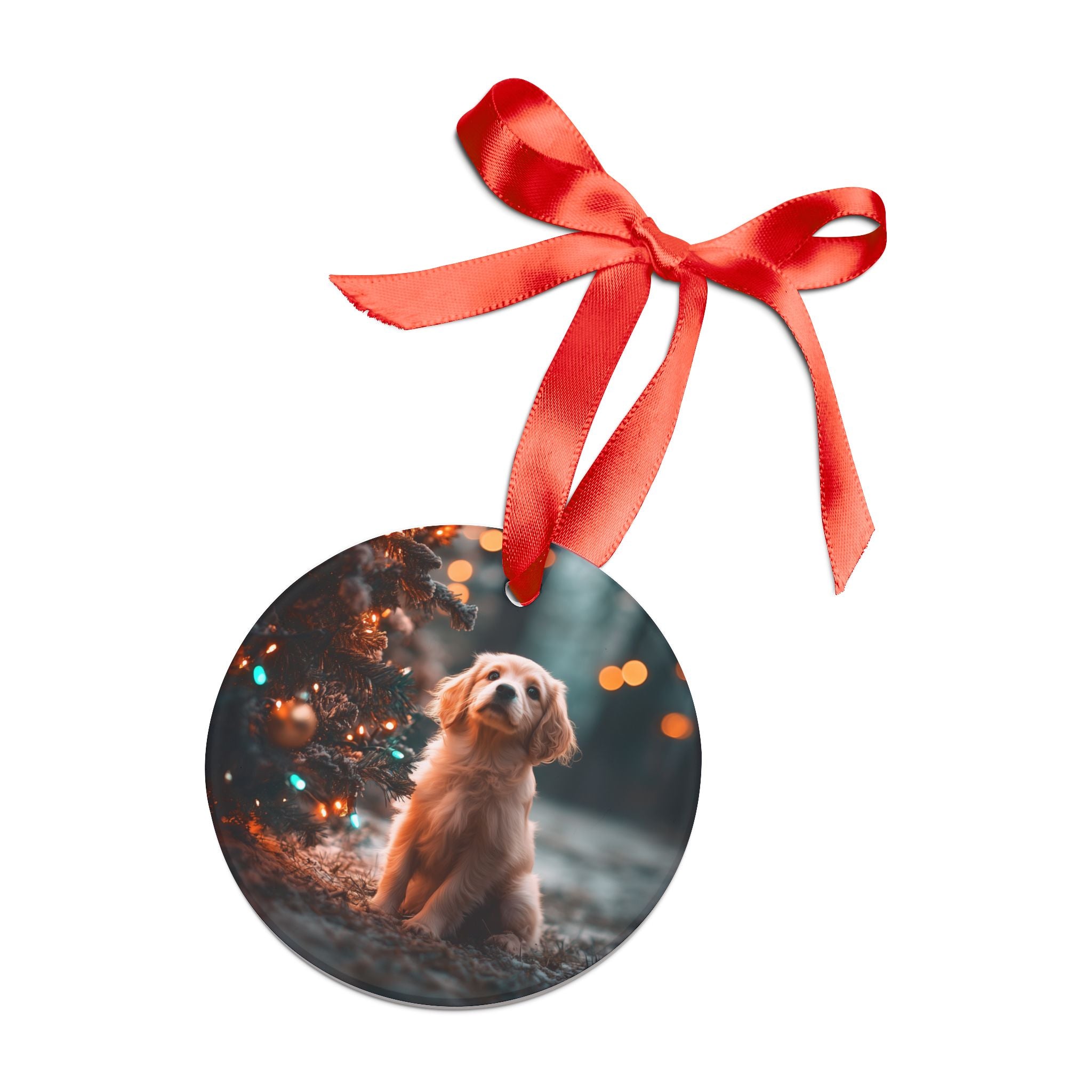 Add charm to your holiday decor with our adorable Golden Puppy Christmas Acrylic Ornament, captured in cozy winter scenes. Part of our exclusive "Powder Paws" Collection, these delightful ornaments bring a playful and festive vibe to your celebrations.