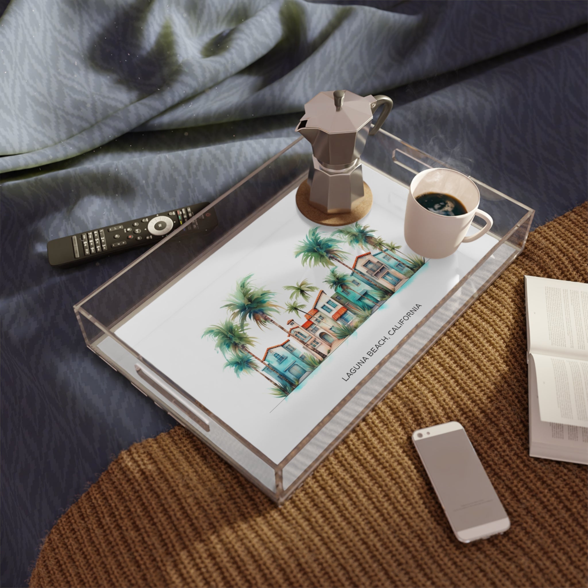 Enhance your space with our exclusive "Laguna Beach Bungalow Acrylic Serving Tray" from our Bungalow Collection. Perfect for adding a personalized touch to any business or home, this versatile tray makes a fantastic gift. Proudly assembled in the USA, it features a high-quality laminated artwork insert, ensuring your custom design is beautifully showcased on a durable white-base insert. The tray's convenient handles make it easy to carry for home or professional use.
