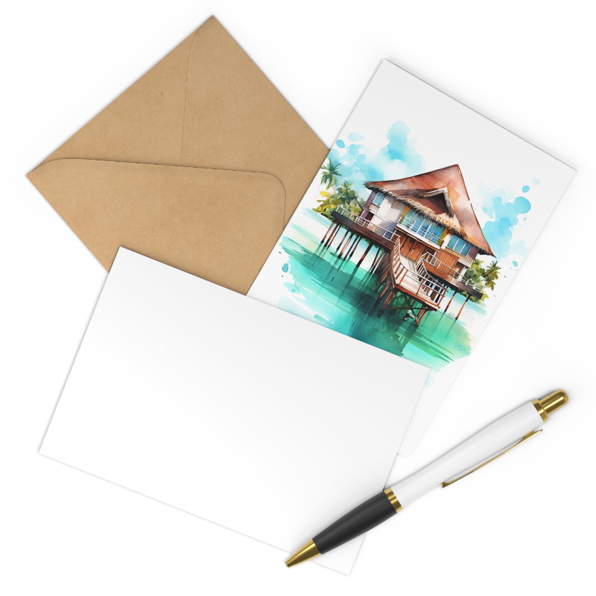 Part of our exclusive Bungalow Collection, these postcards are more than souvenirs; they're gateways to a world of serene beauty and cherished moments. With their watercolor artistry, they add a touch of elegance to your keepsakes.