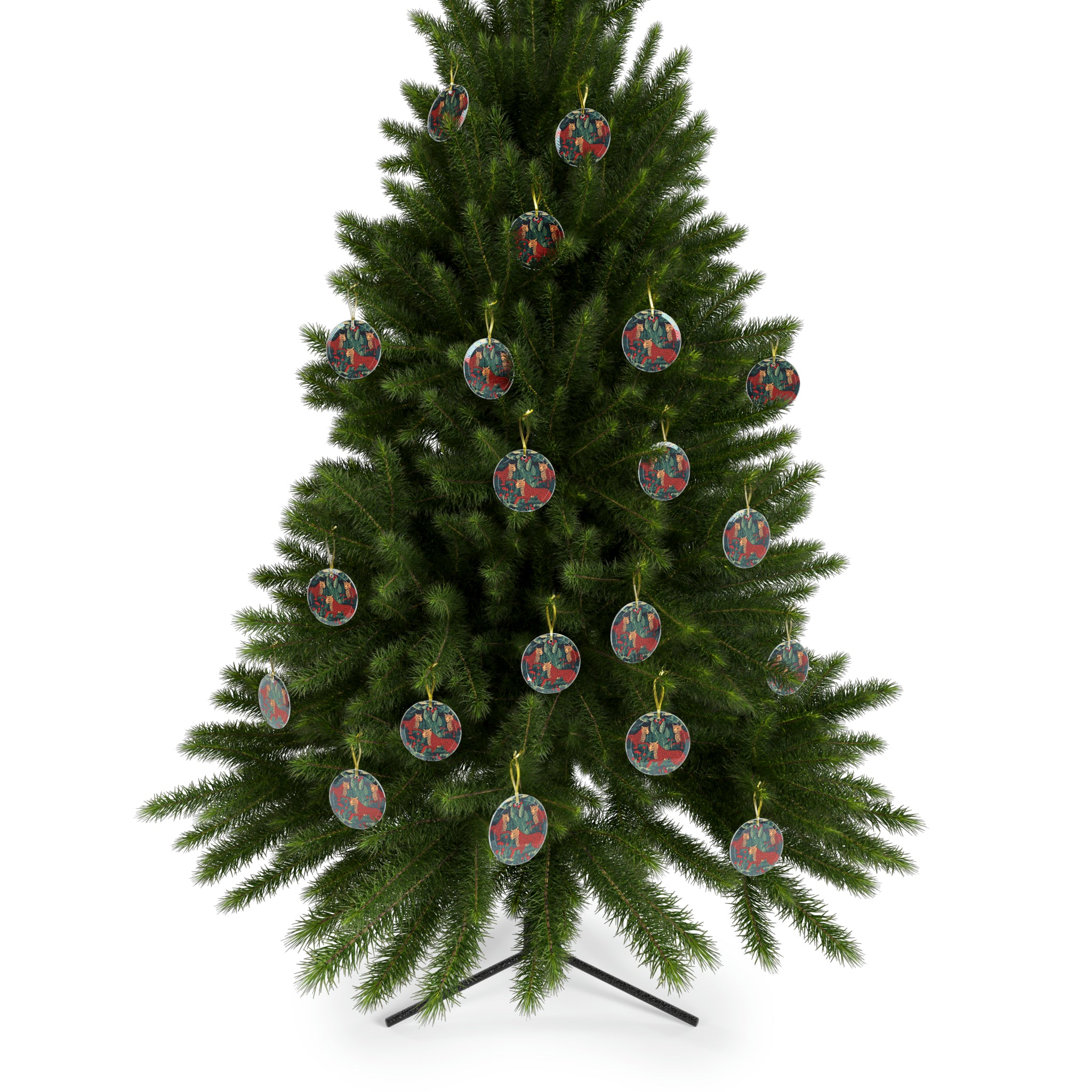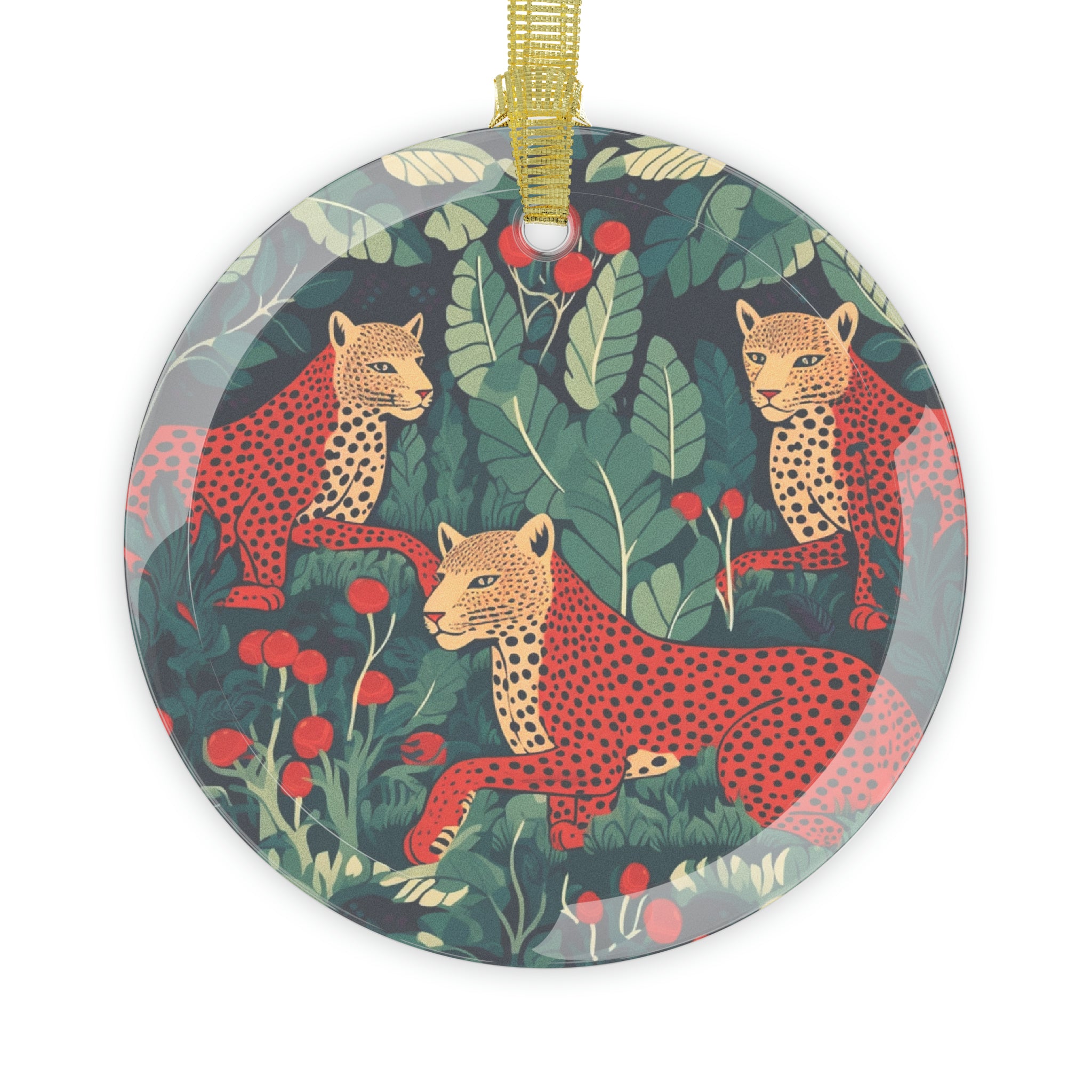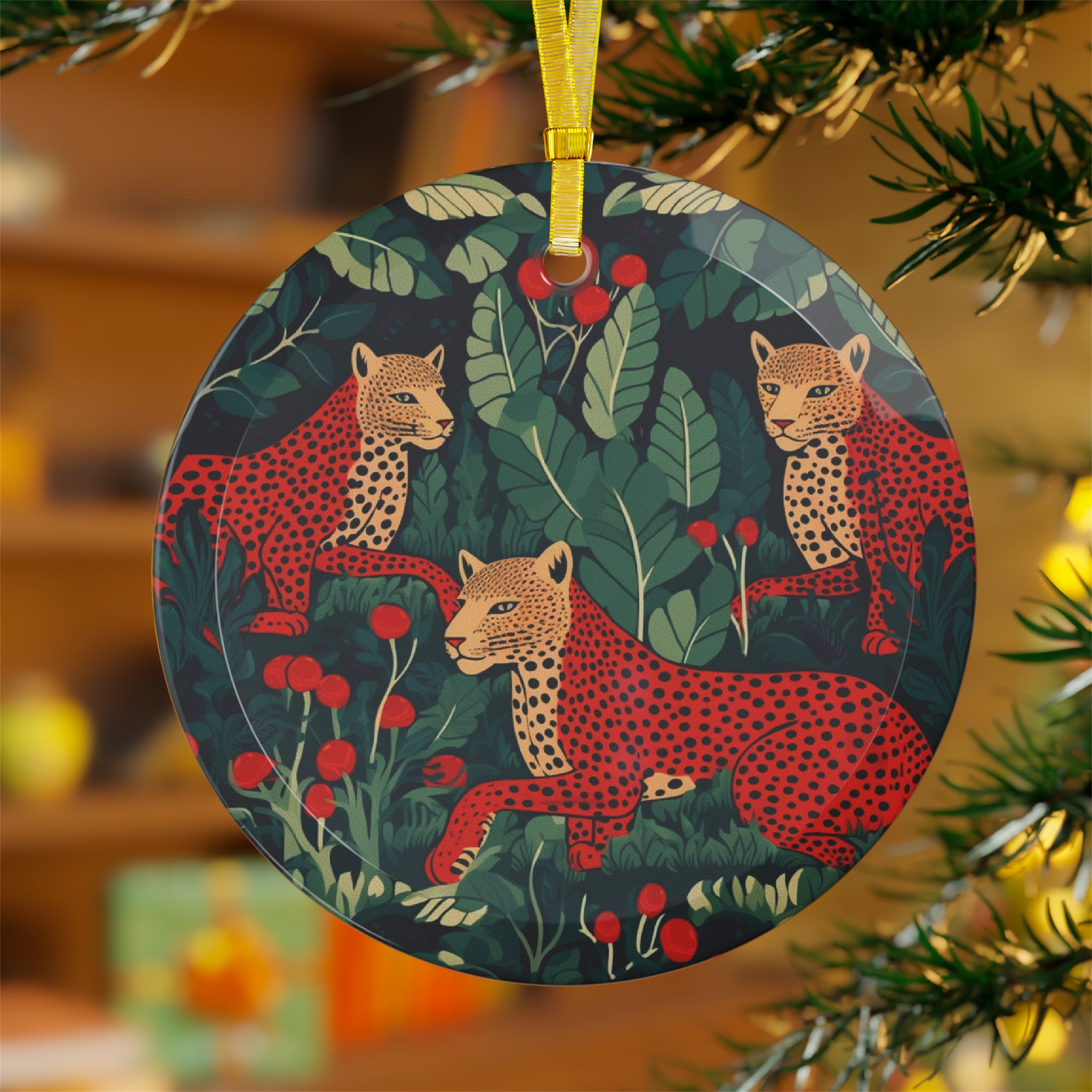 The high-quality, one-sided print showcases Leopard Love with vivid clarity and precision. Bring the allure of the wild into your holiday festivities with our "Leopard Love" glass ornaments. Let the Highland Haven Collection transform your decor into a haven of untamed beauty. N.B. The design might appear slightly transparent on the final product.