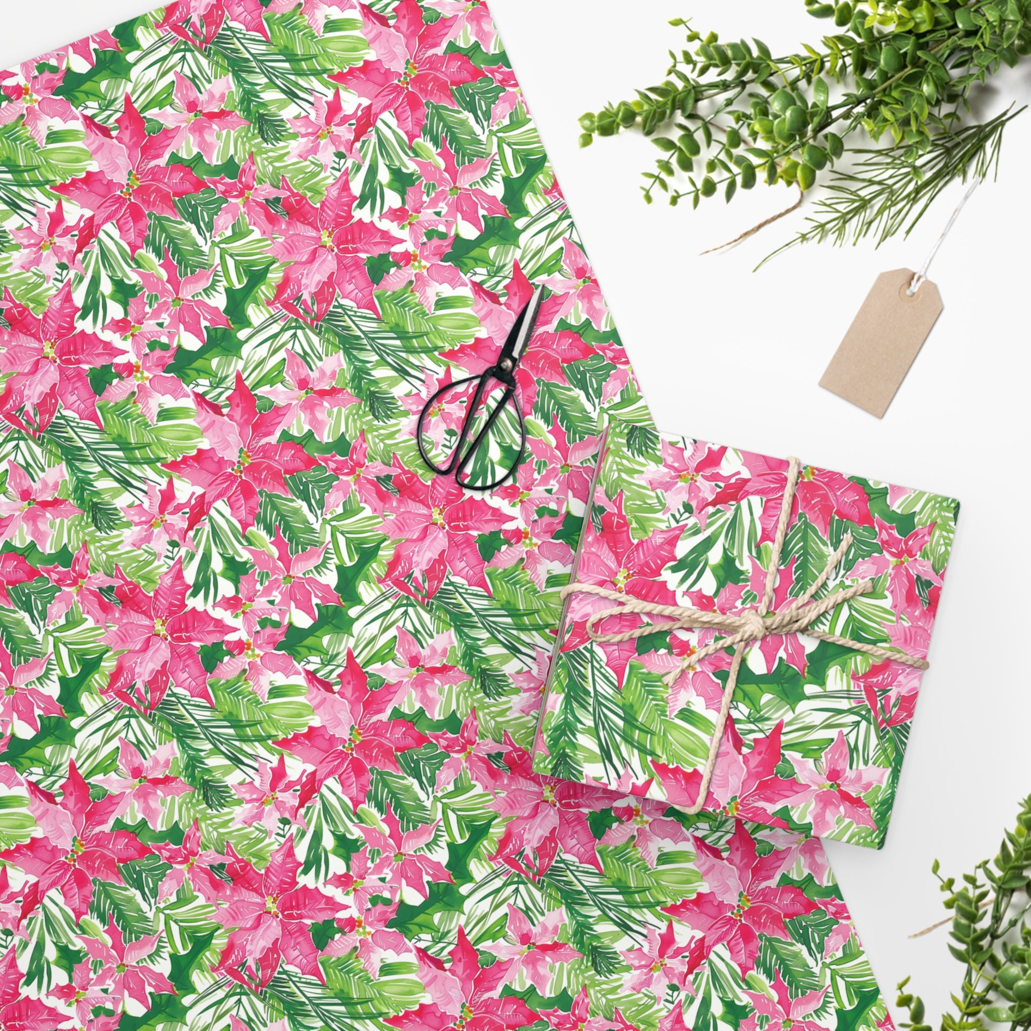 Premium Quality Paper: Crafted on high-quality, durable paper, our Tropical Poinsettias Wrapping Paper ensures that your gifts are wrapped with care and precision. The material is sturdy enough to withstand the rigors of the holiday season.