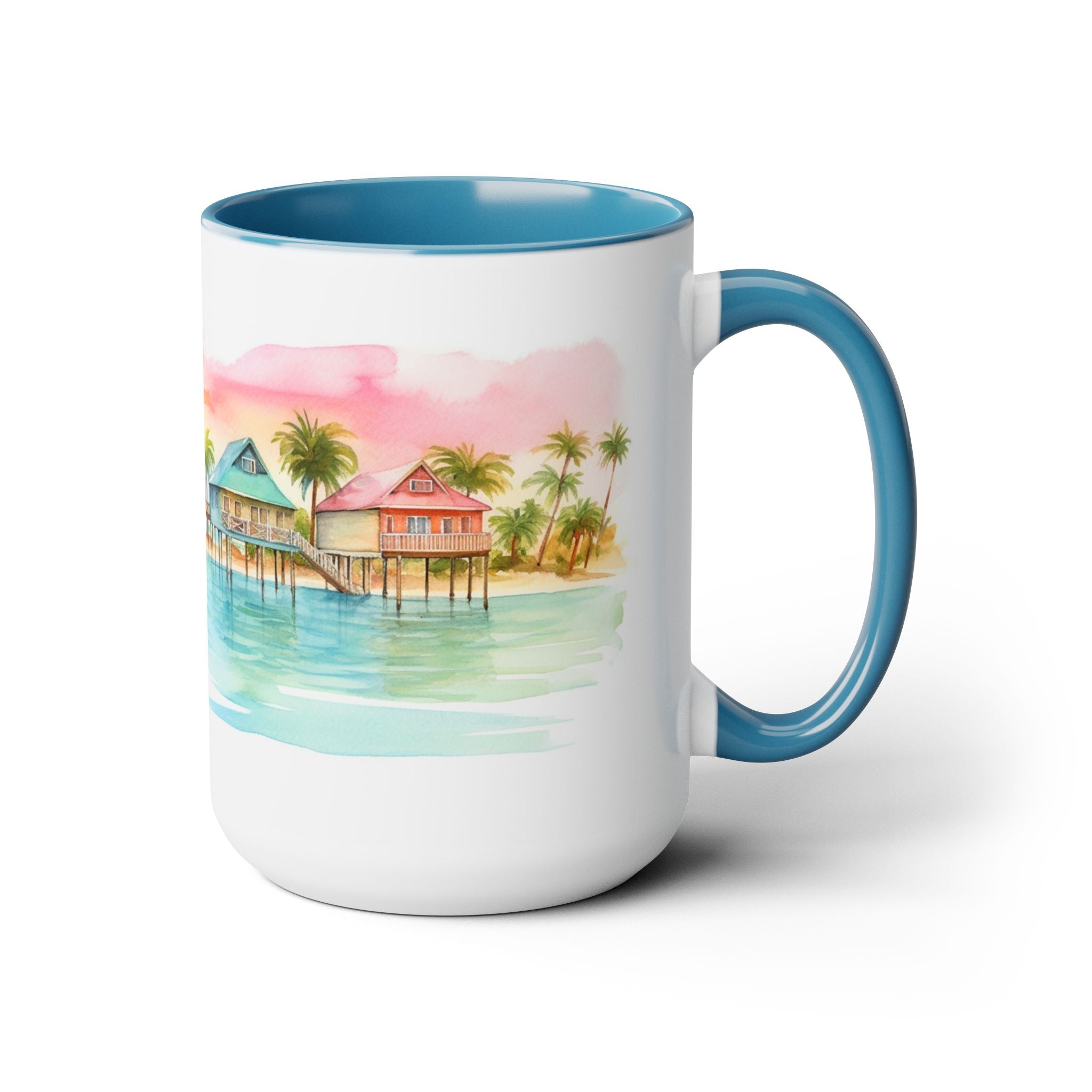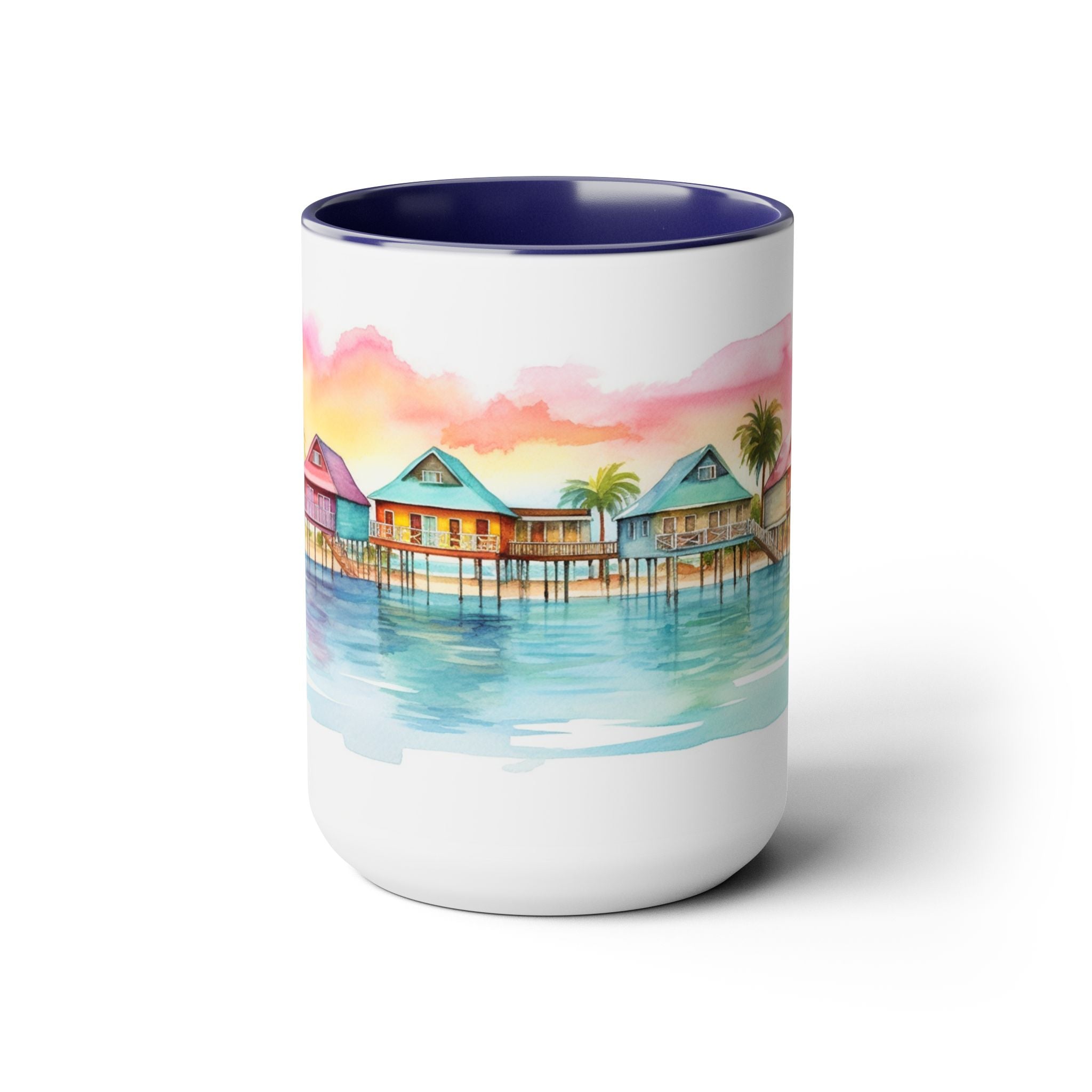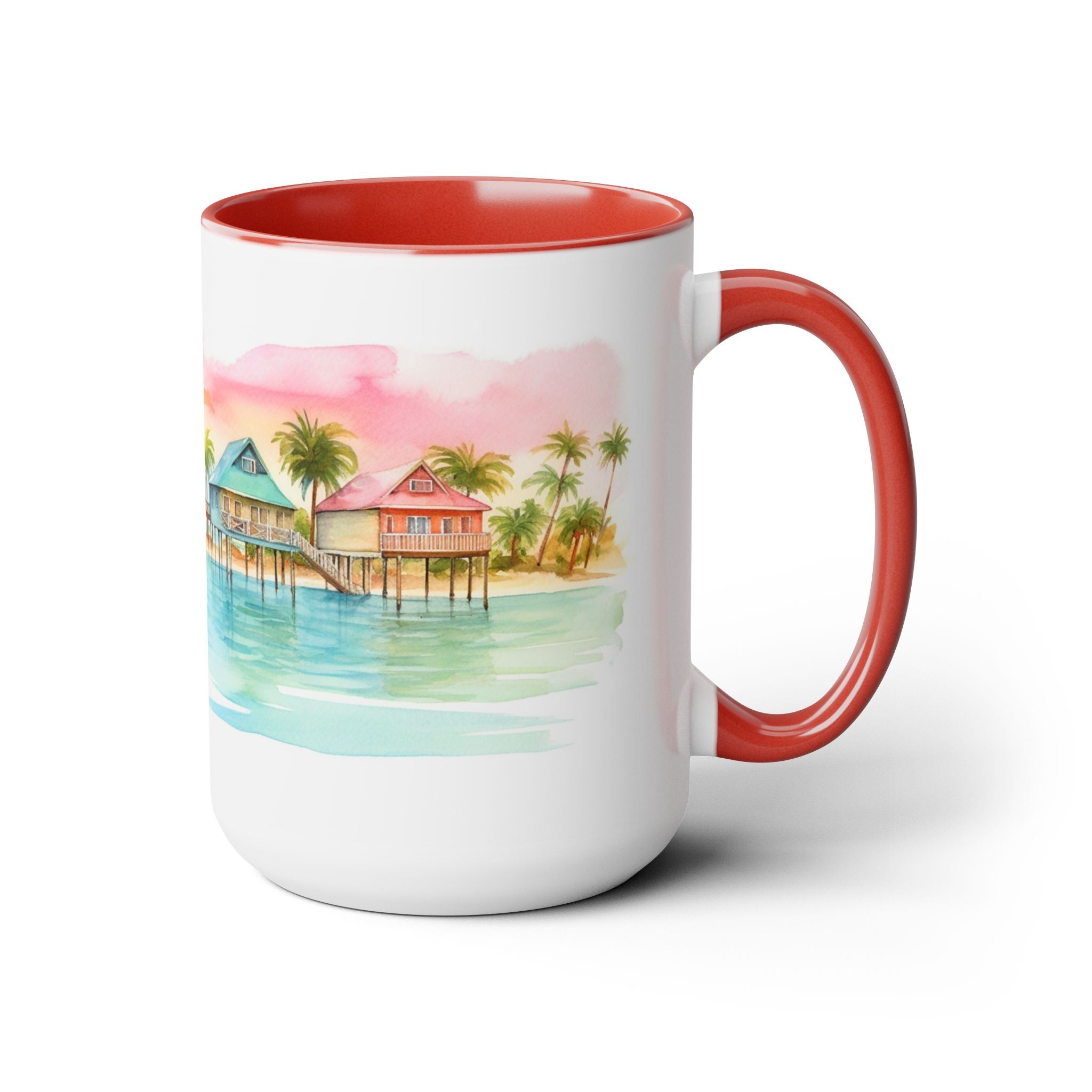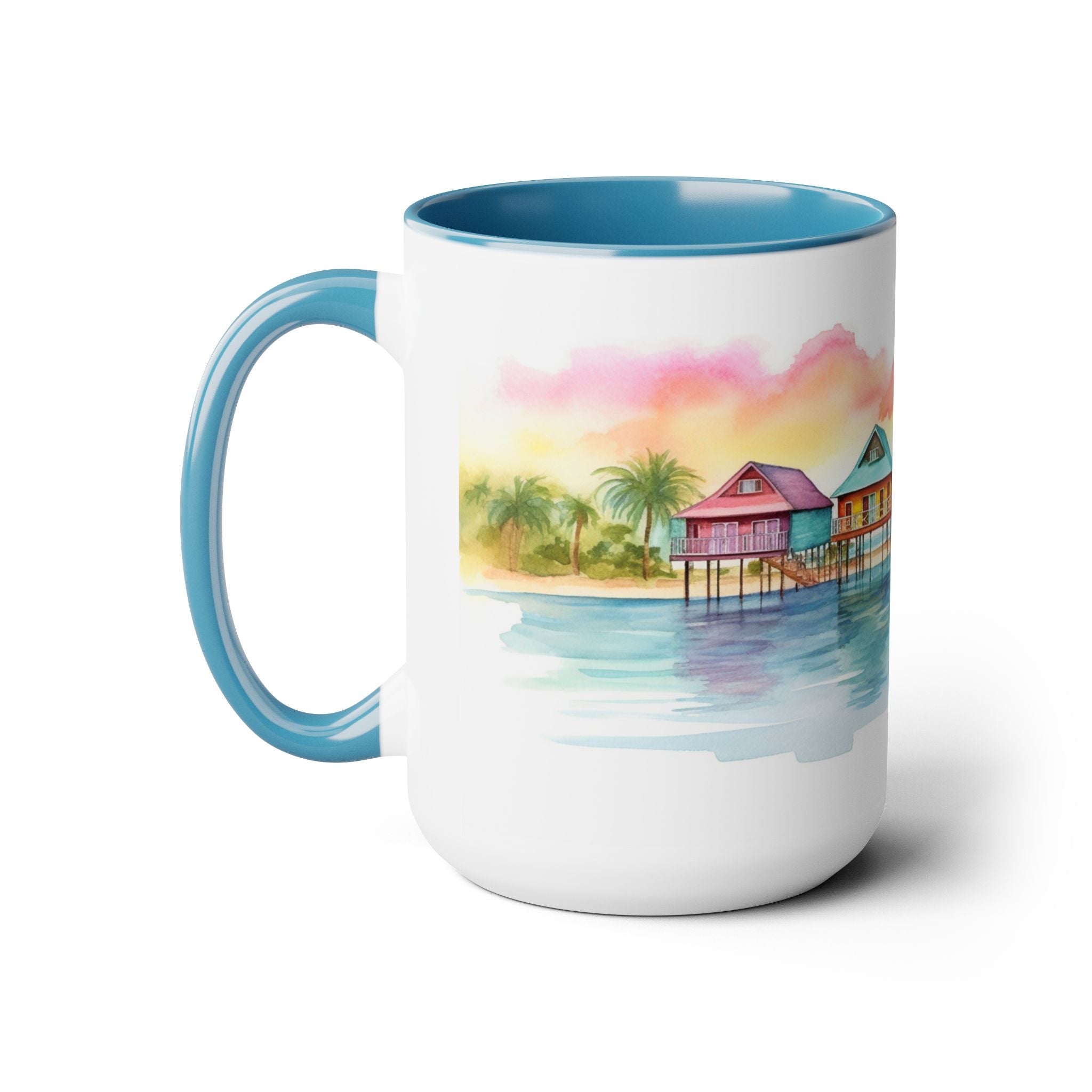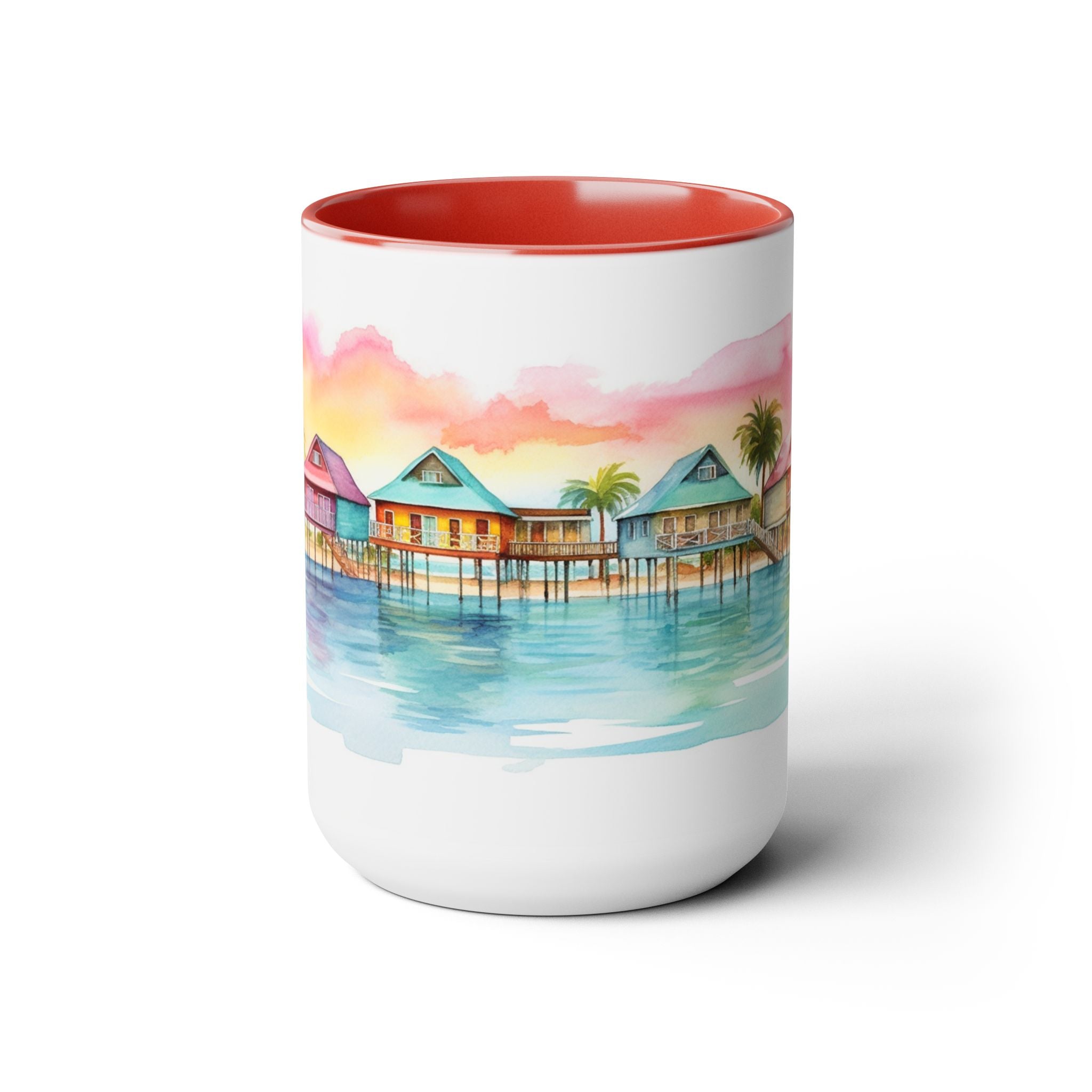 Breathtaking Watercolor Illustration: Adorned with a vivid watercolor image of a beachfront bungalow in Aruba, this mug is a true work of art that captures the essence of coastal tranquility.