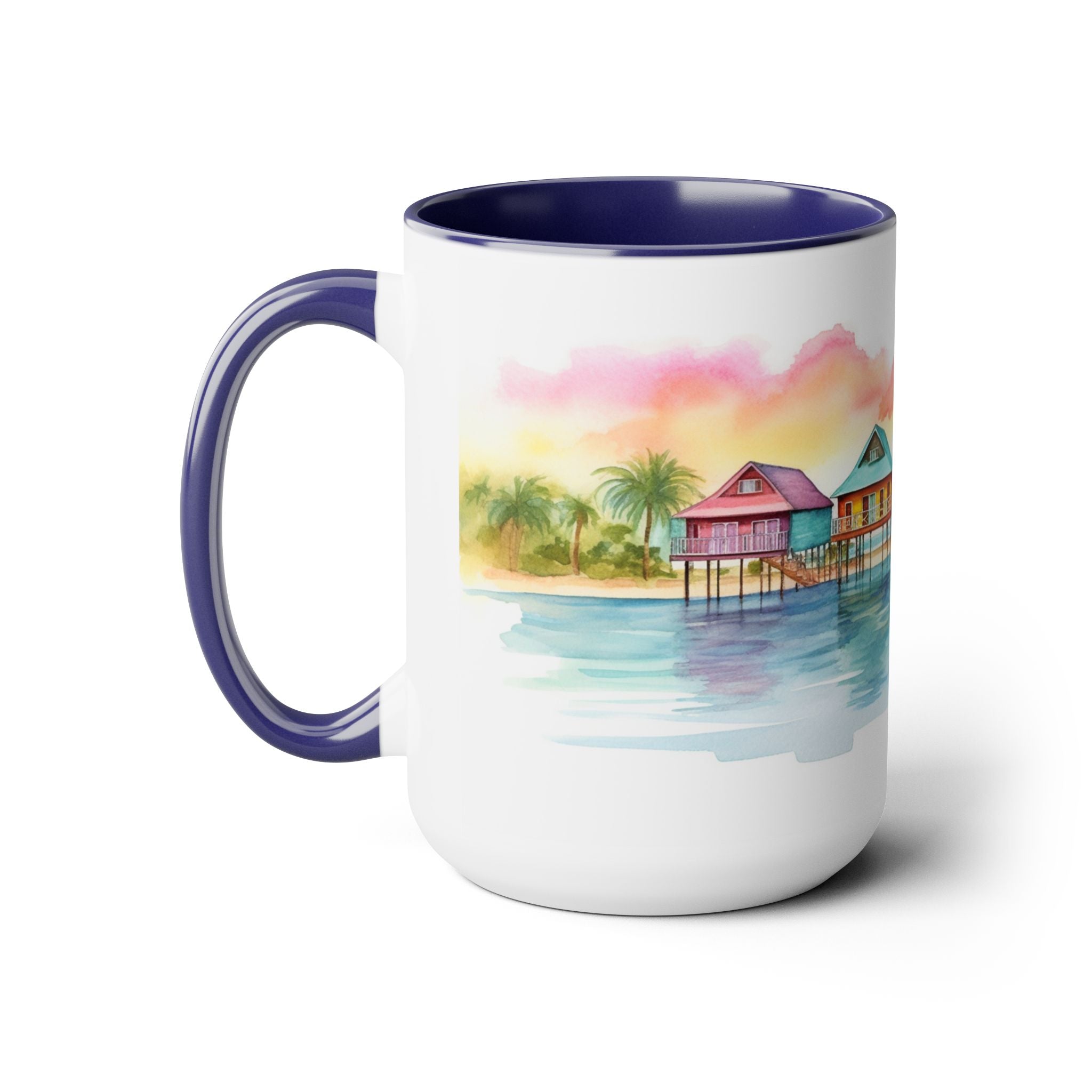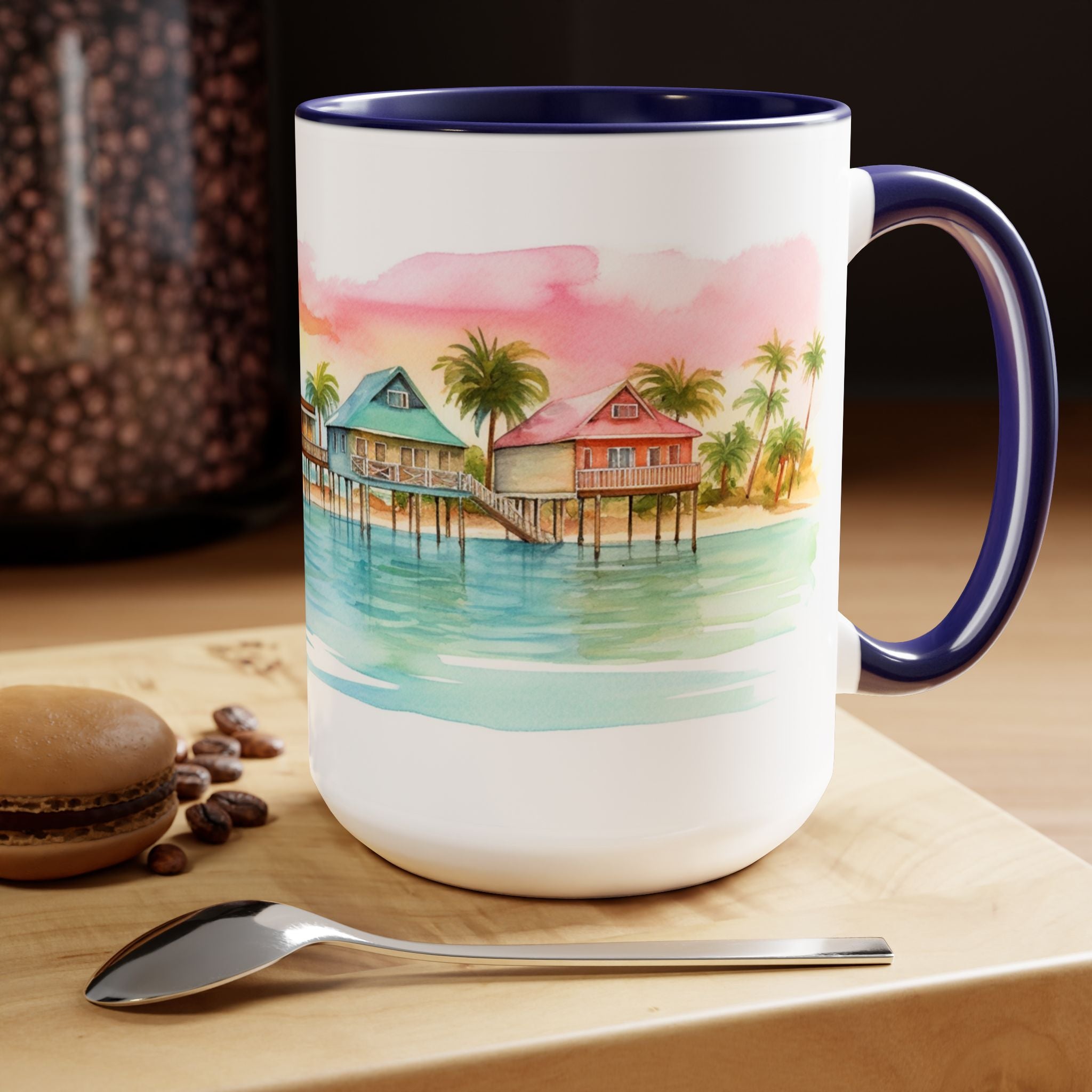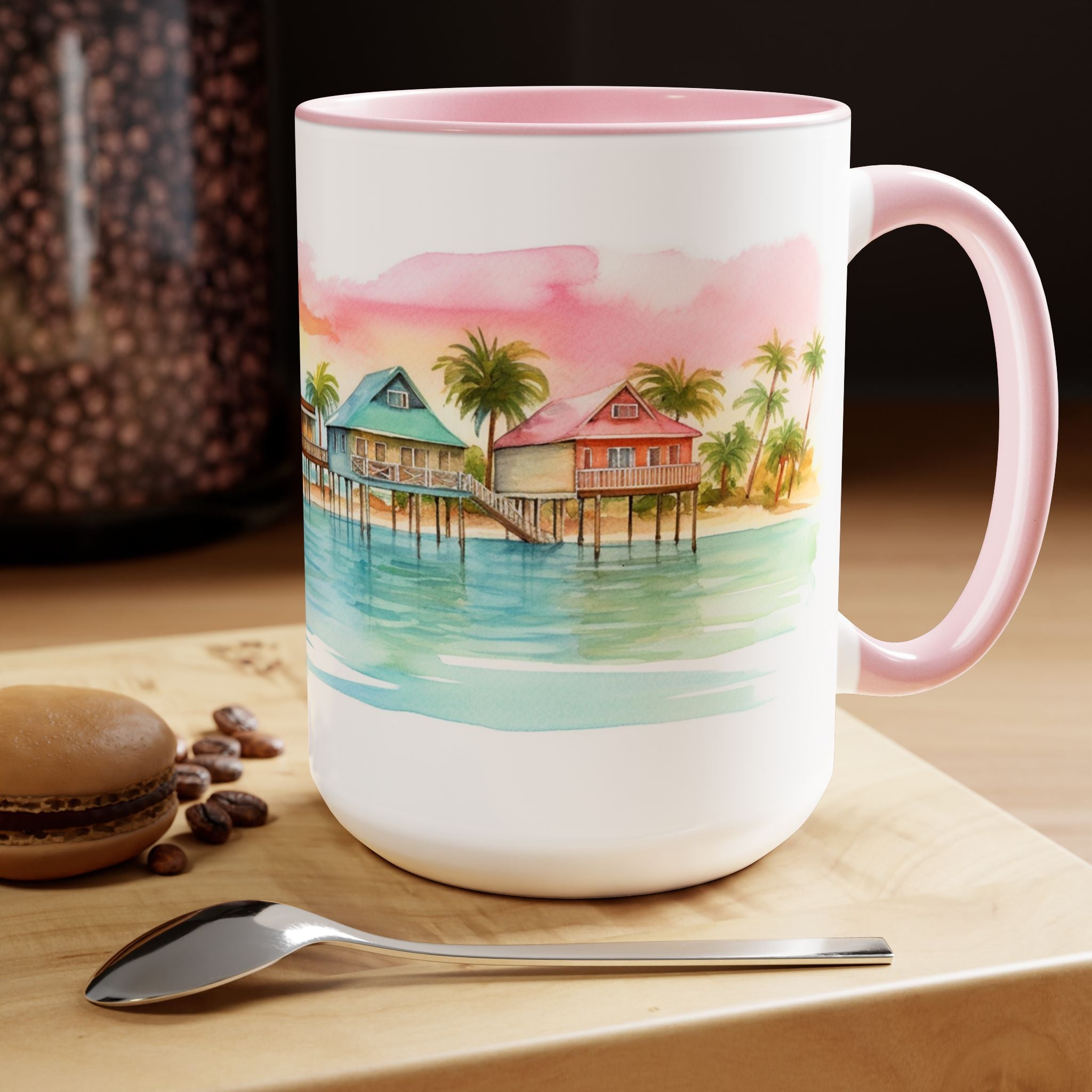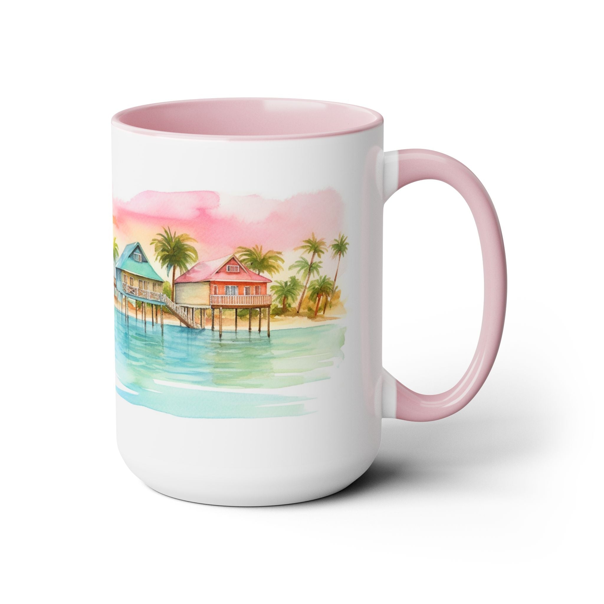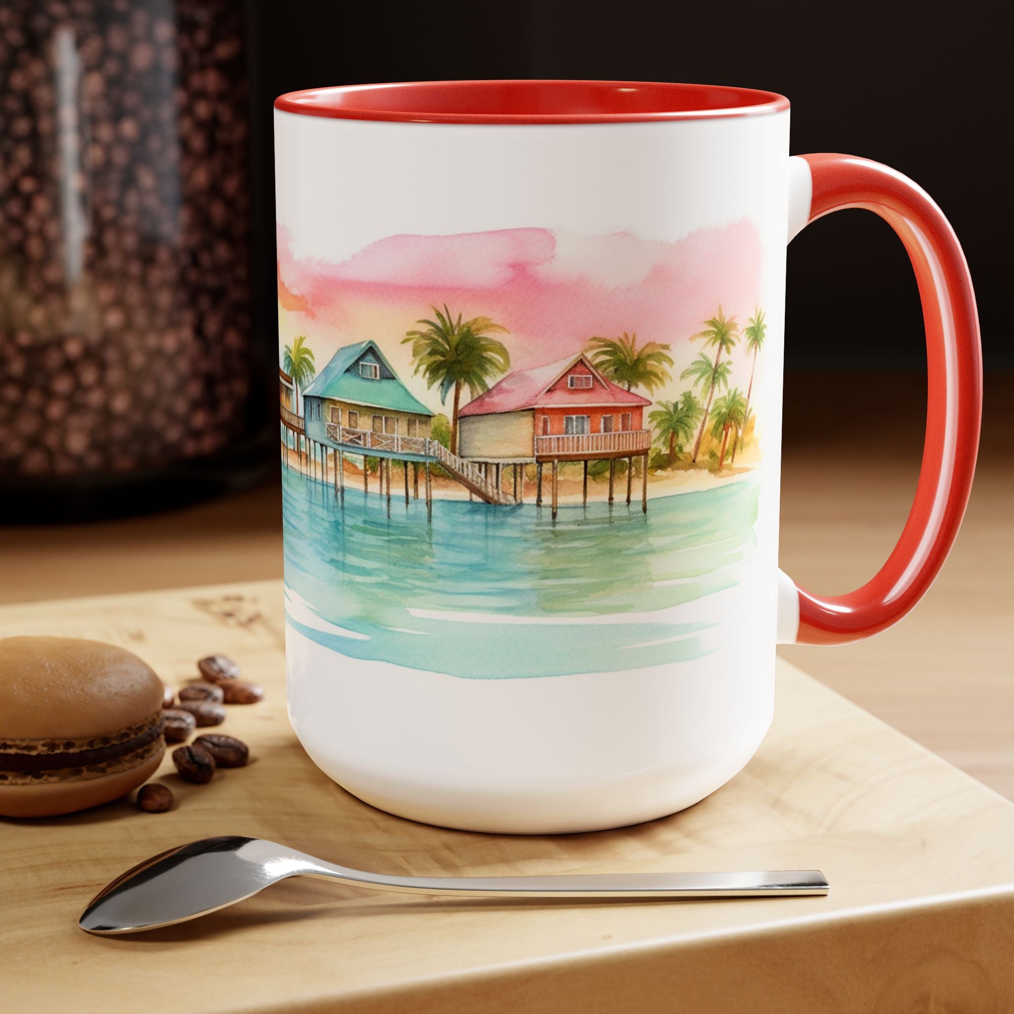 Breathtaking Watercolor Illustration: Adorned with a vivid watercolor image of a beachfront bungalow in Aruba, this mug is a true work of art that captures the essence of coastal tranquility.