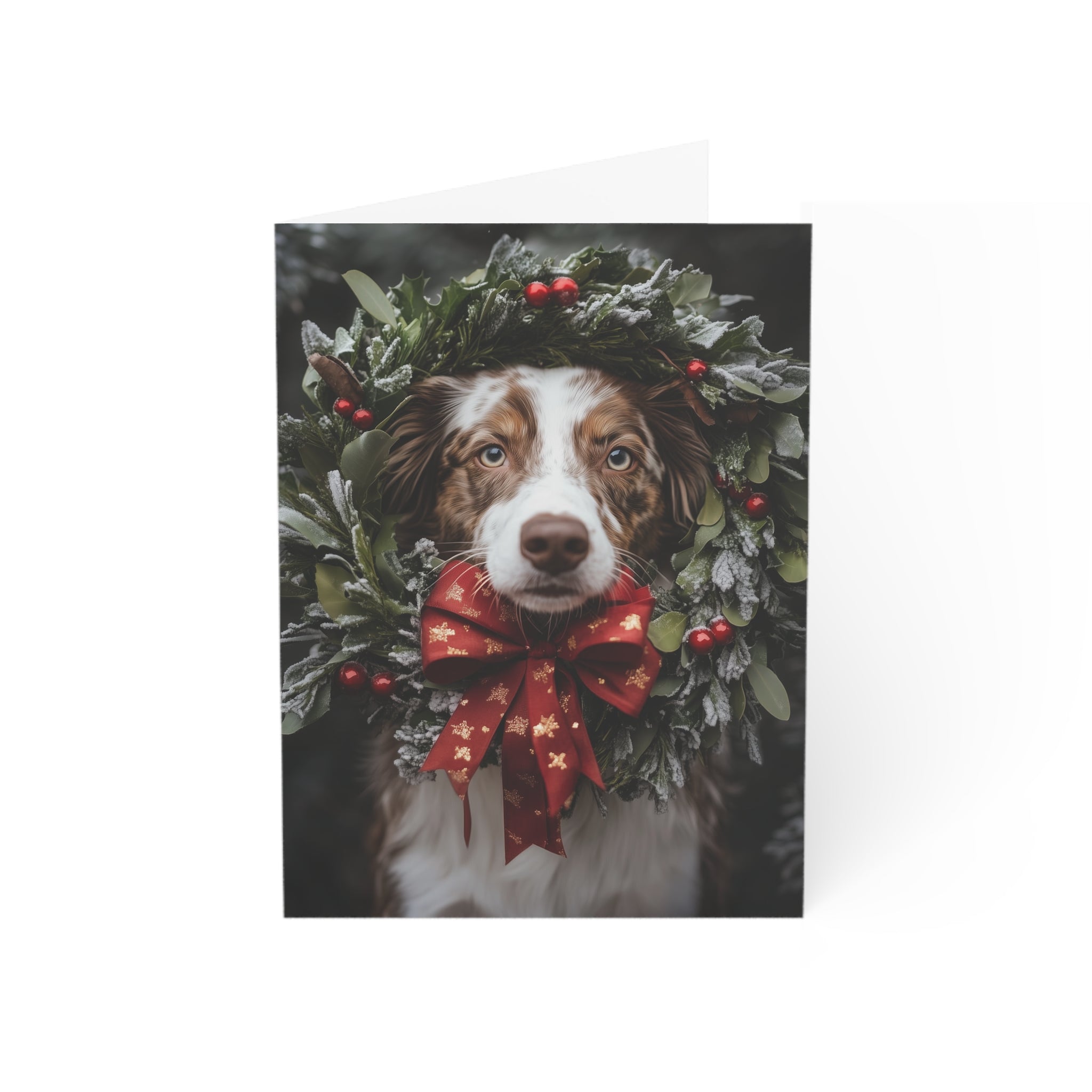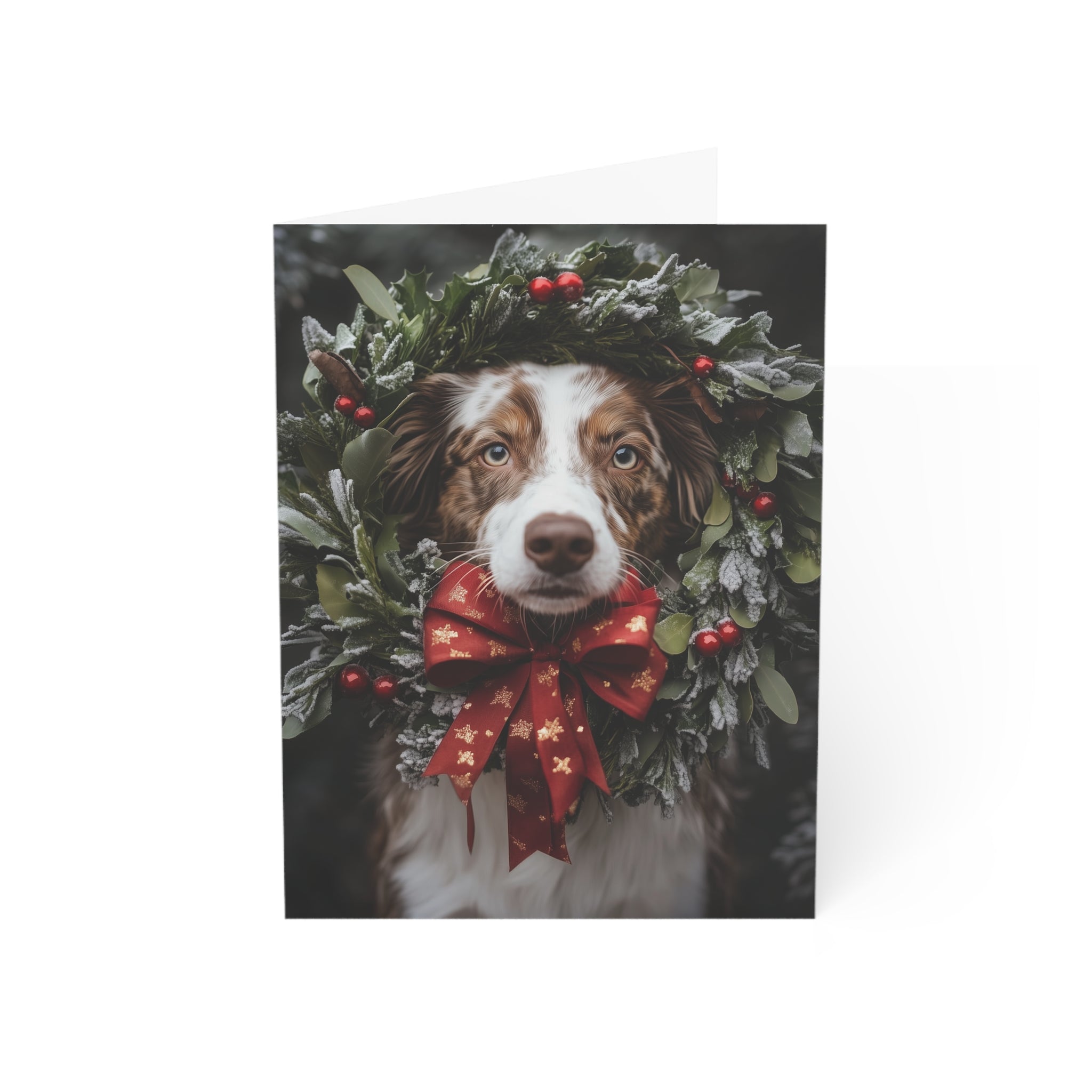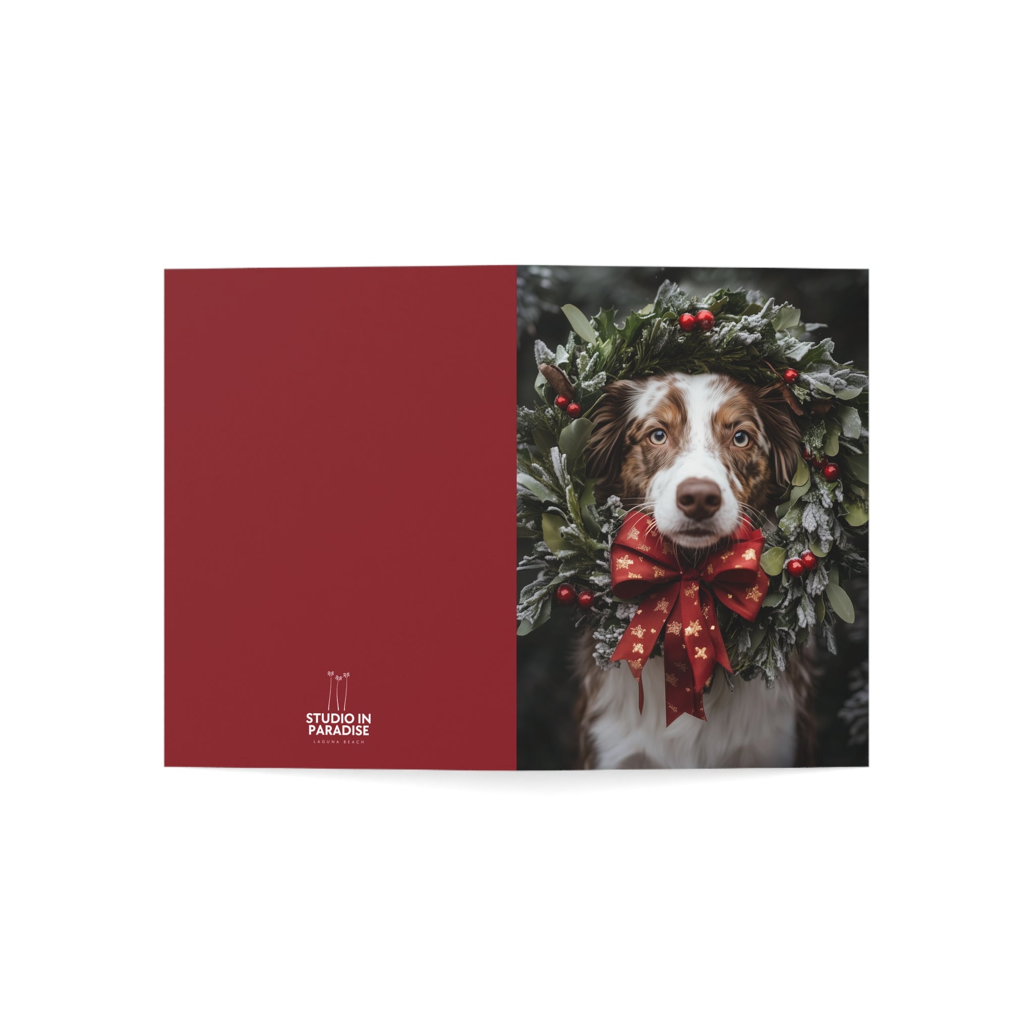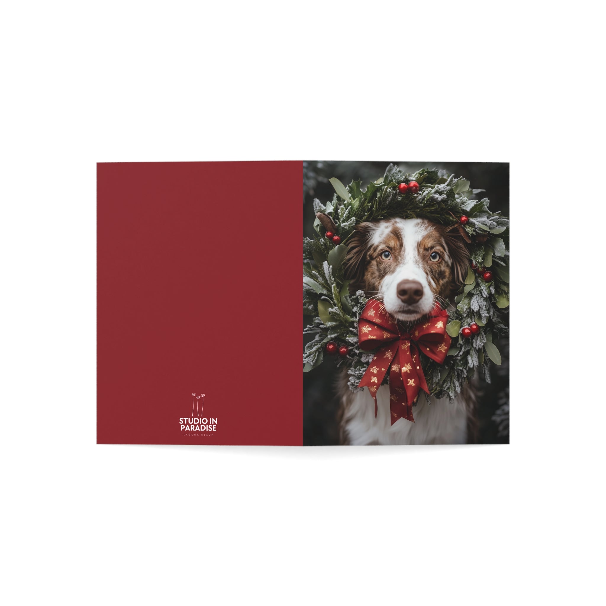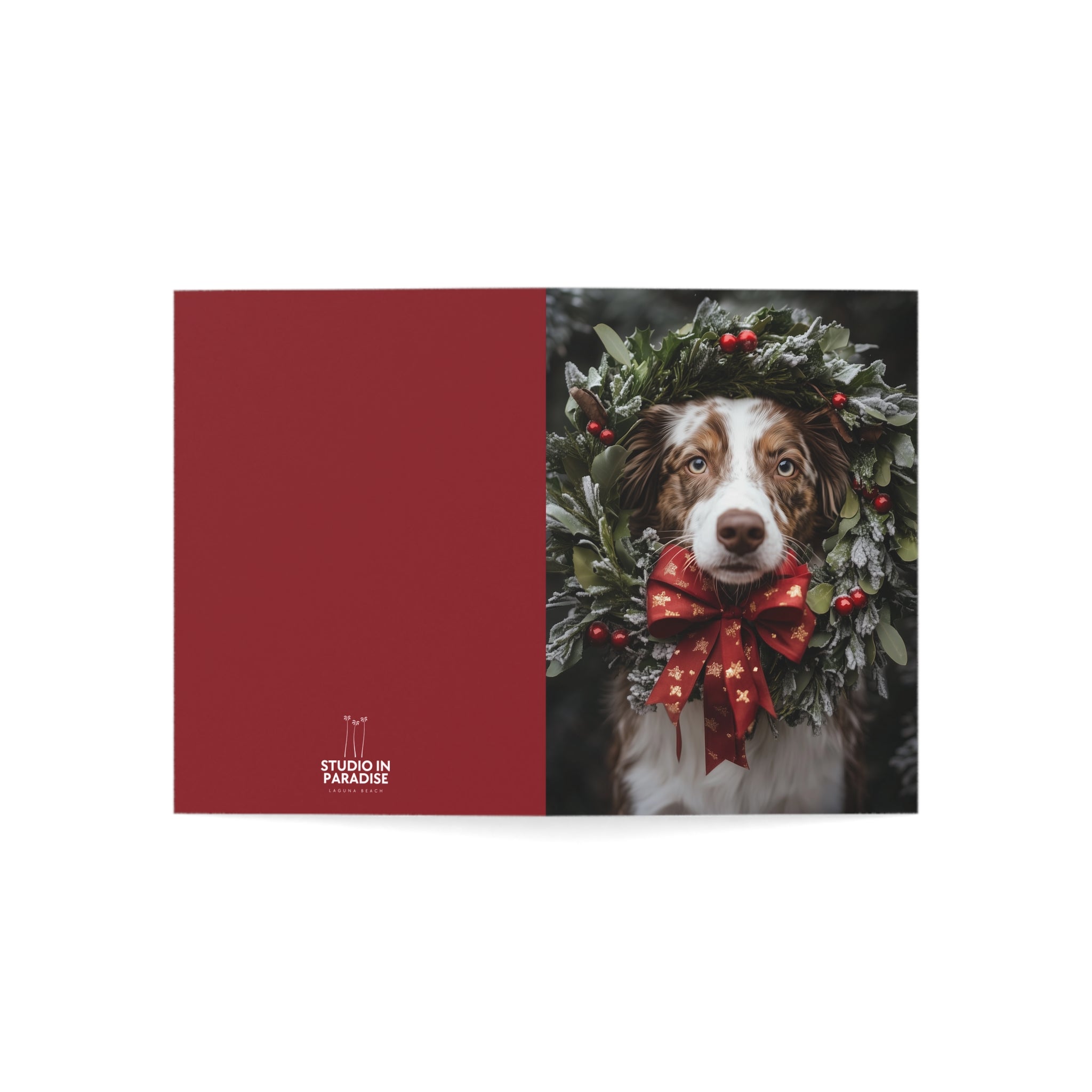 Celebrate the season with our "Powder Paws Collection" – a charming selection of holiday greeting cards featuring adorable dogs and puppies in festive winter scenes. From playful Golden Retriever puppies to cozy canines enjoying snowy landscapes, each card captures the warmth and joy of the holidays. Our Australian Collie Christmas Greeting Card is a standout in this collection, capturing a sweet Australian Collie surrounded by a Christmas wreath, making it the perfect way to send heartfelt holiday wishes.