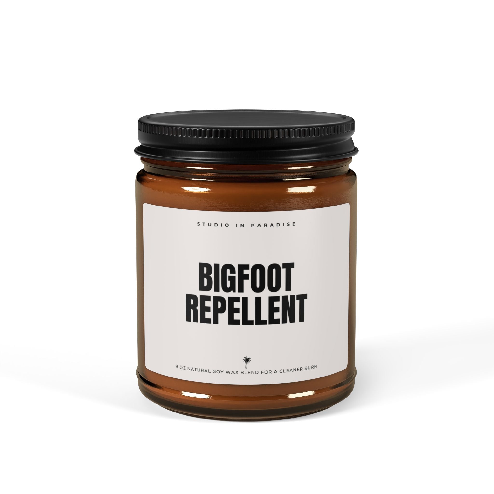 "Bigfoot Repellent" Amber Glass Candle – Quirky & Functional