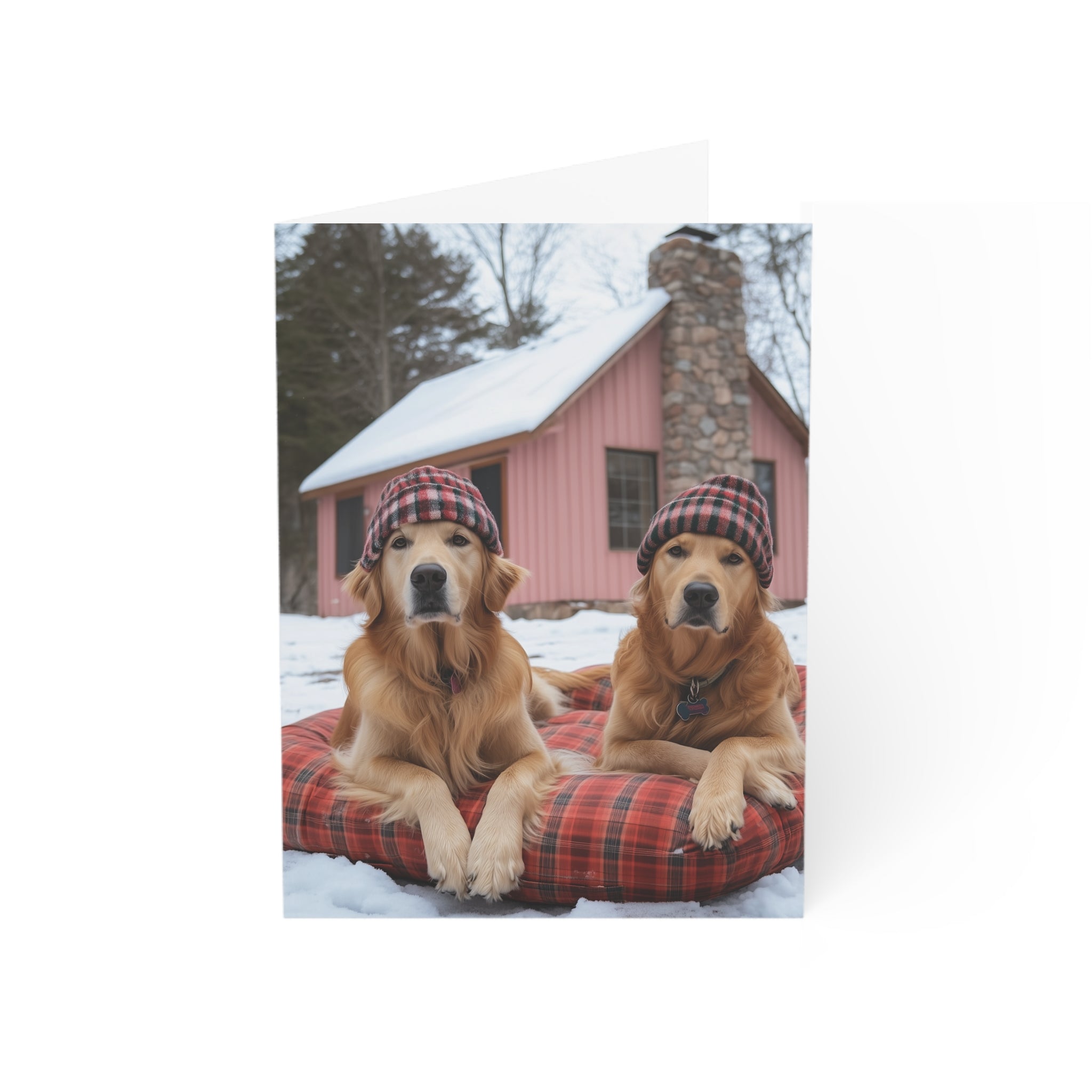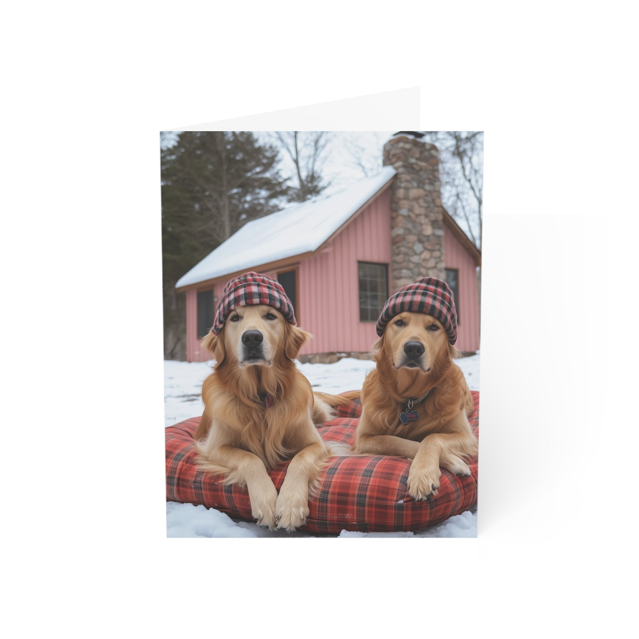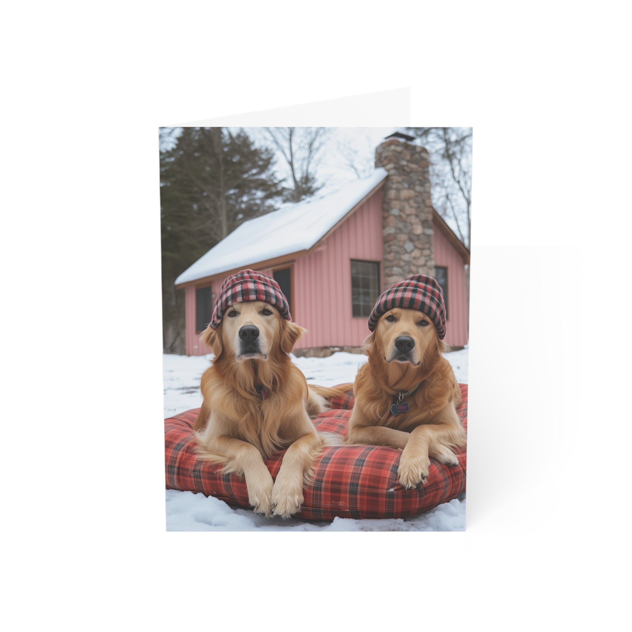Celebrate the season with our "Powder Paws Collection" – a charming selection of holiday greeting cards featuring adorable dogs and puppies in festive winter scenes. From playful Golden Retriever puppies to cozy canines enjoying snowy landscapes, each card captures the warmth and joy of the holidays. Our Bonnie and Clyde Golden Retrievers Greeting Card is a standout in this collection, capturing two adorable Golden Retrievers waiting patiently for more snow, making it the perfect way to send heartfelt holiday wishes.