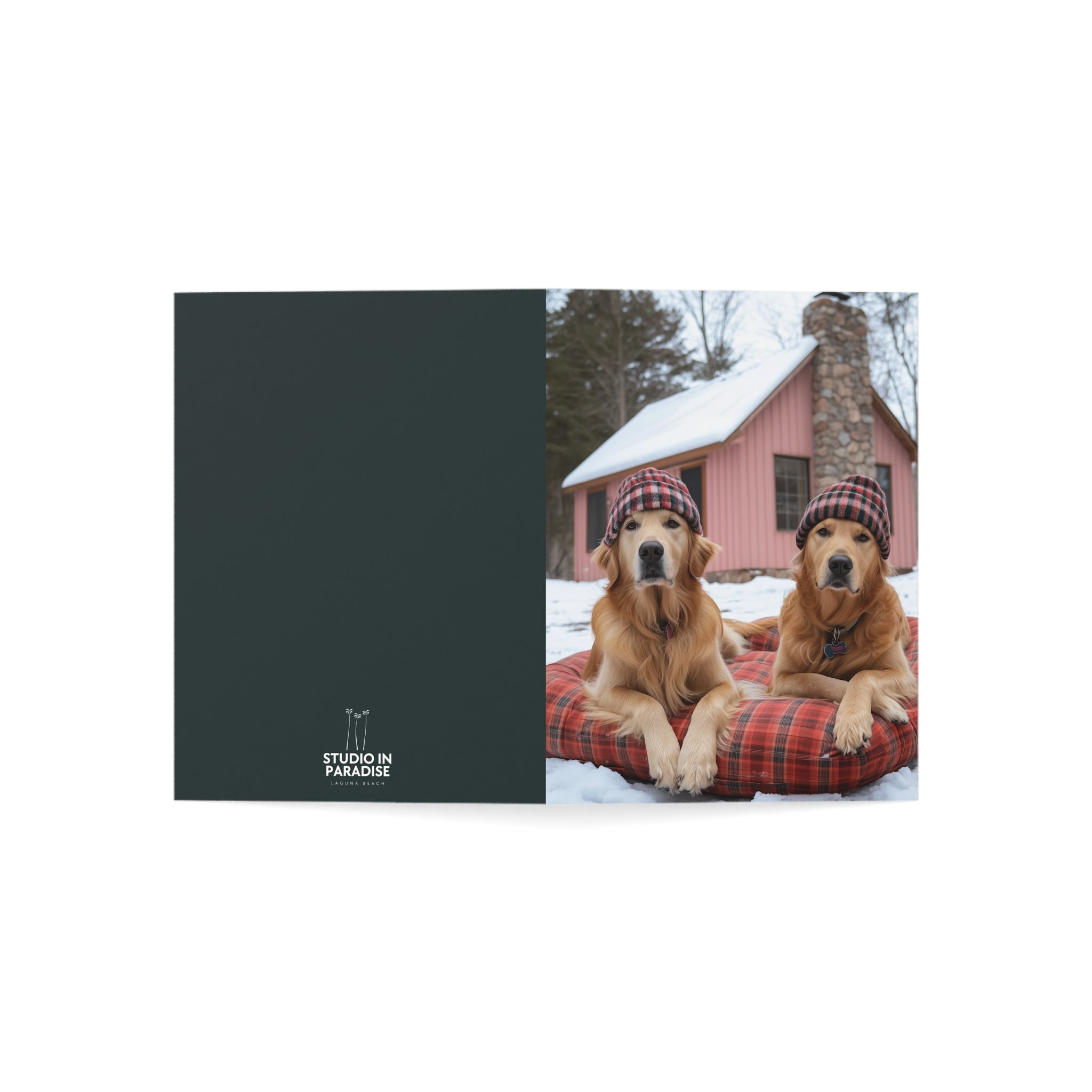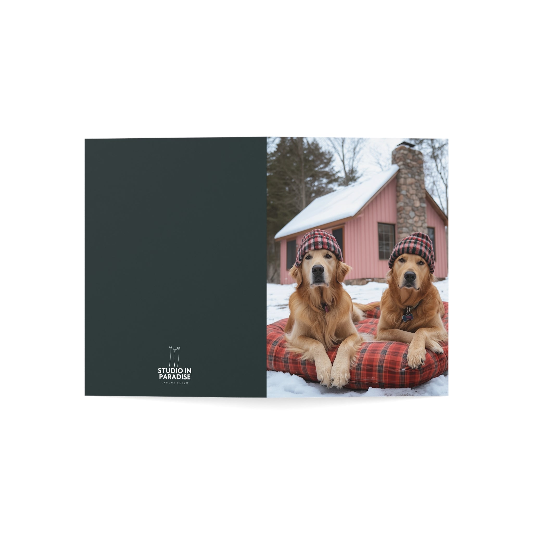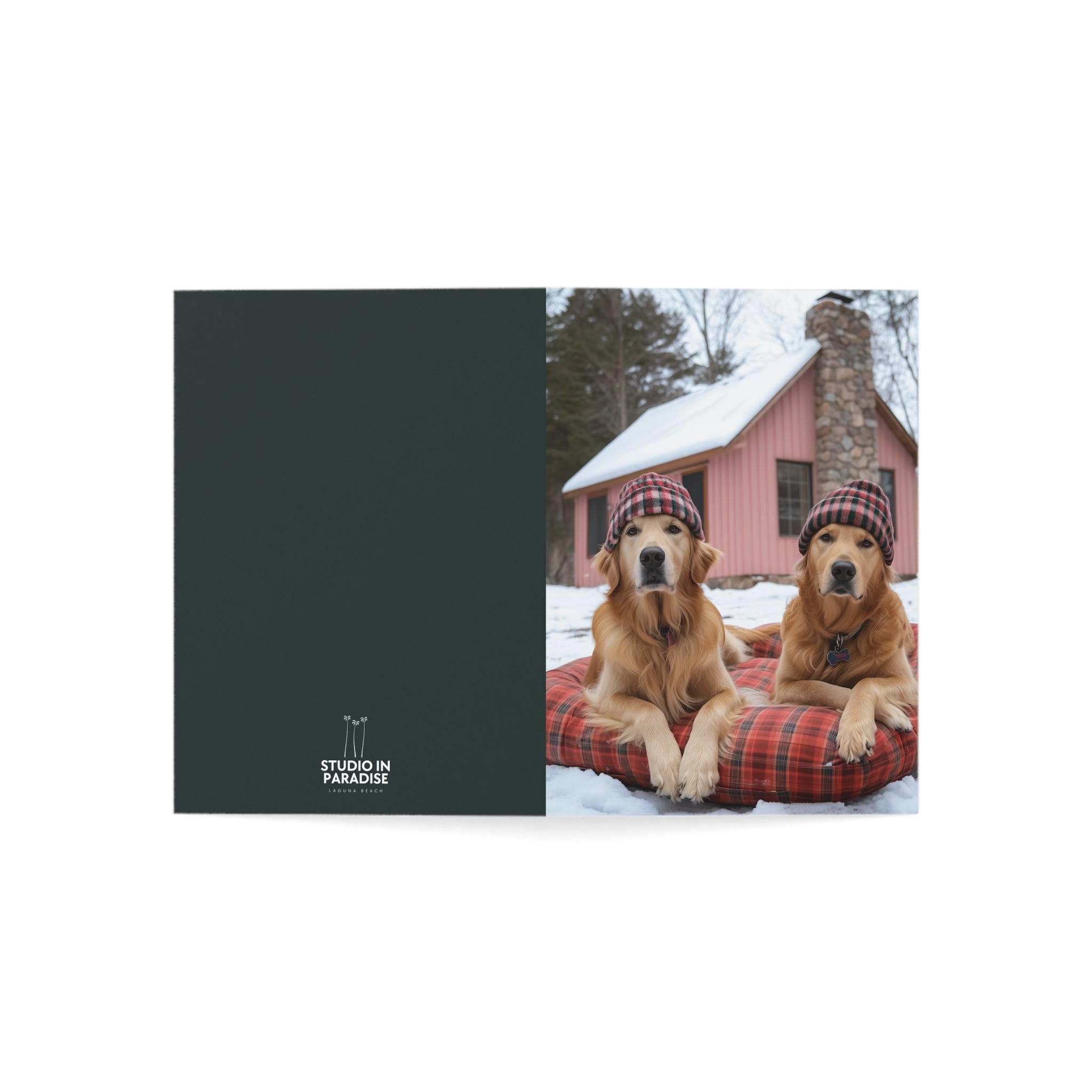 Celebrate the season with our "Powder Paws Collection" – a charming selection of holiday greeting cards featuring adorable dogs and puppies in festive winter scenes. From playful Golden Retriever puppies to cozy canines enjoying snowy landscapes, each card captures the warmth and joy of the holidays. Our Bonnie and Clyde Golden Retrievers Greeting Card is a standout in this collection, capturing two adorable Golden Retrievers waiting patiently for more snow, making it the perfect way to send heartfelt holiday wishes.