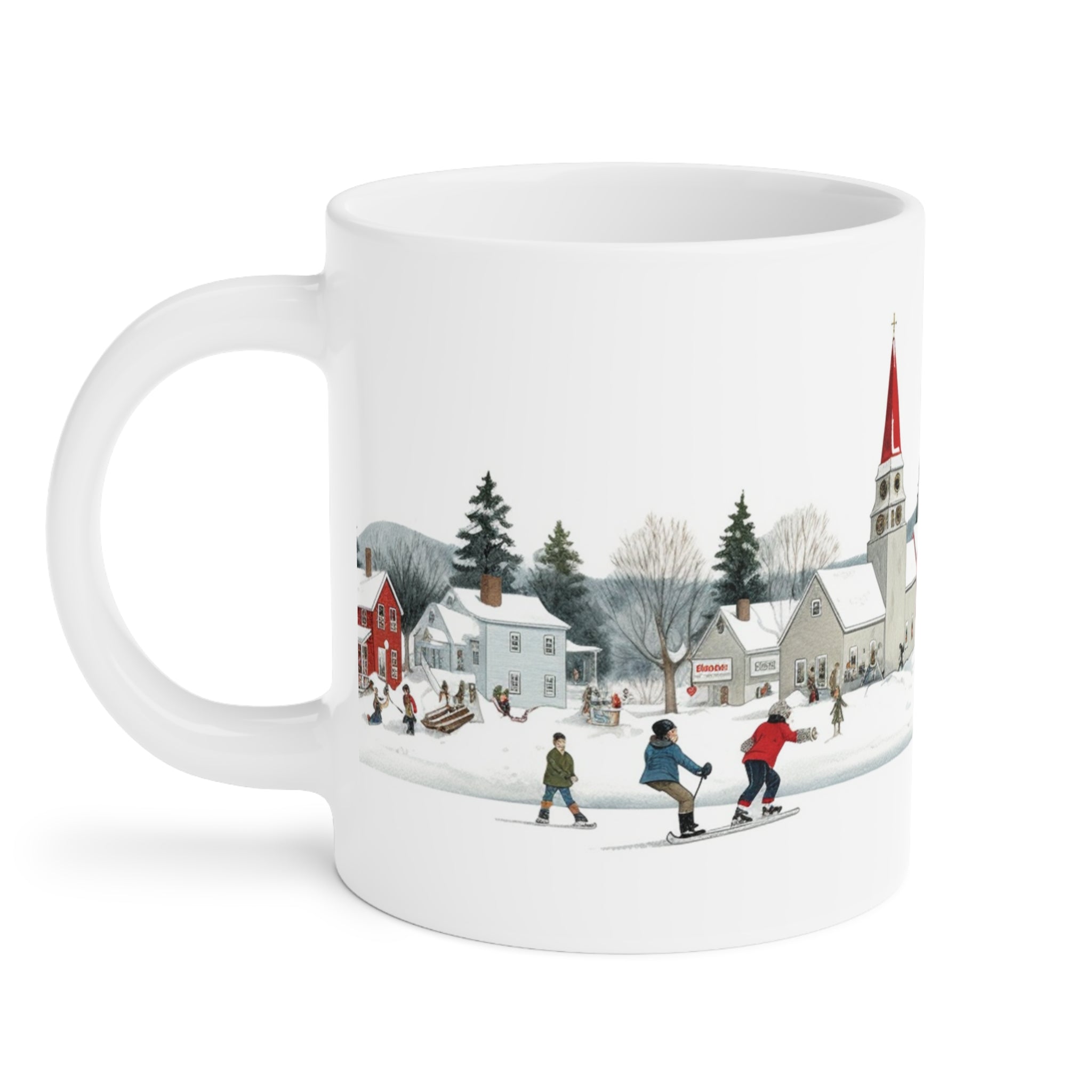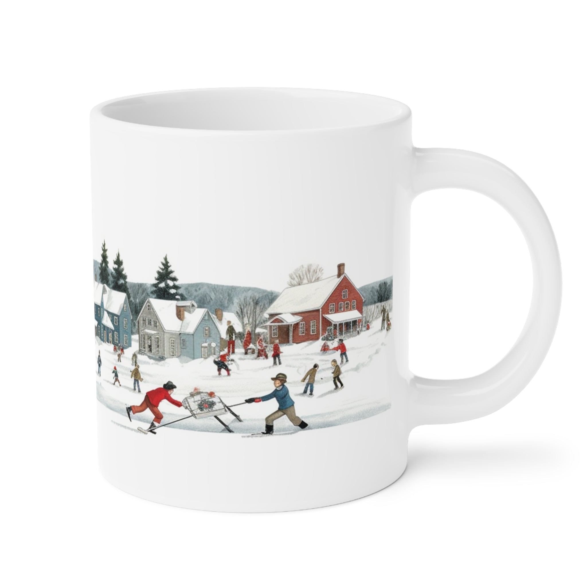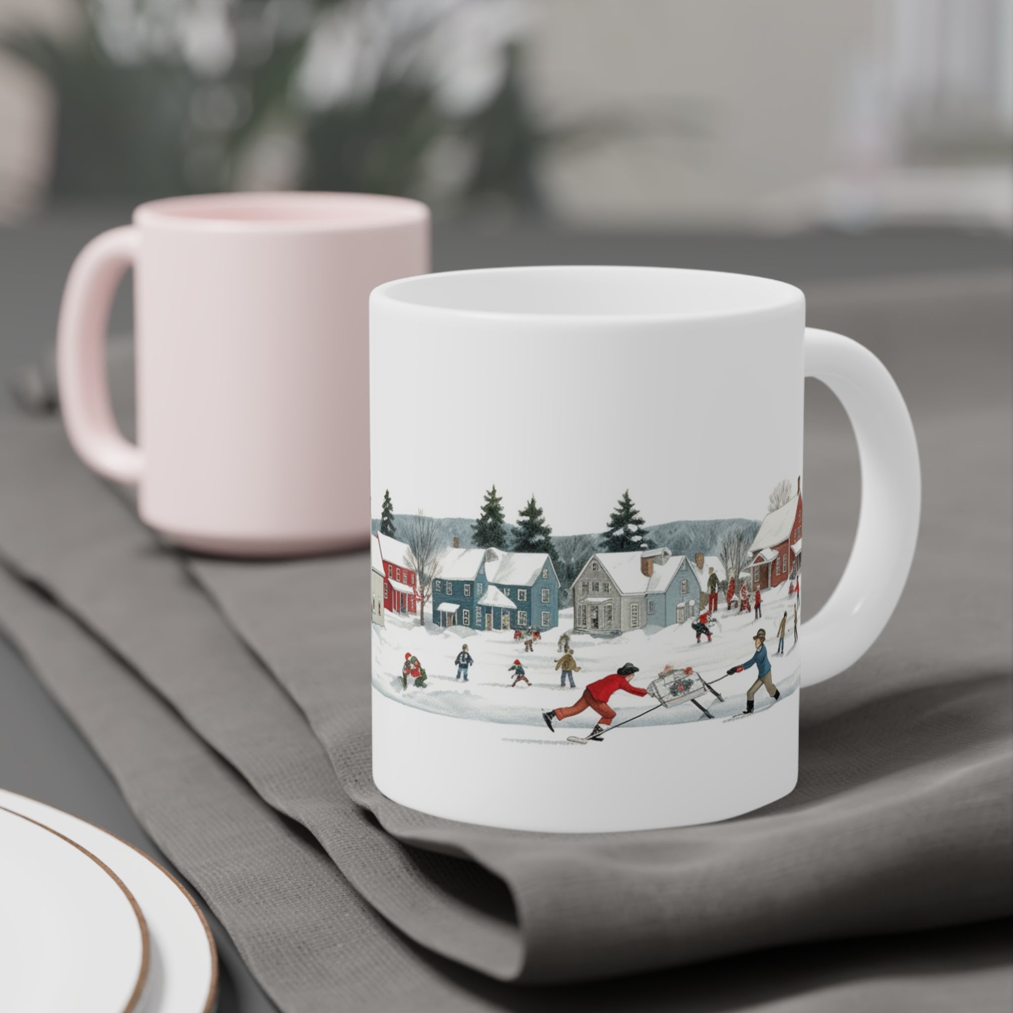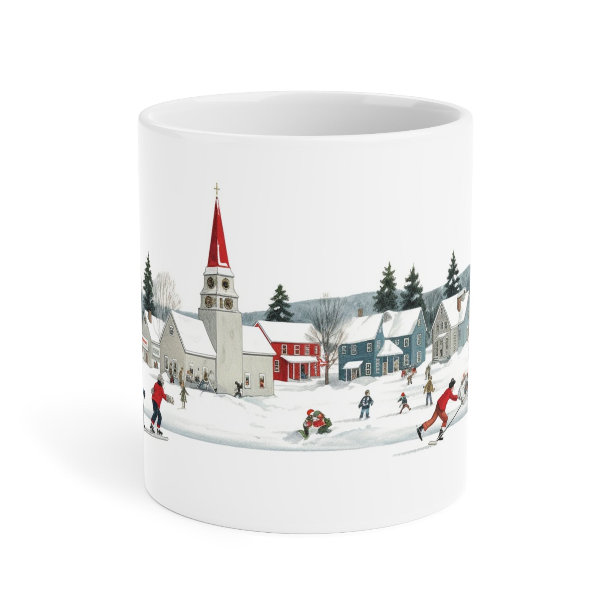 Imagine a serene winter day, where snowflakes gently fall, and a cozy town square comes to life with the joyous laughter of people ice skating. This beautiful scene, meticulously crafted with a touch of holiday magic, adorns our 20oz mug, making it the perfect festive companion for your morning routine.