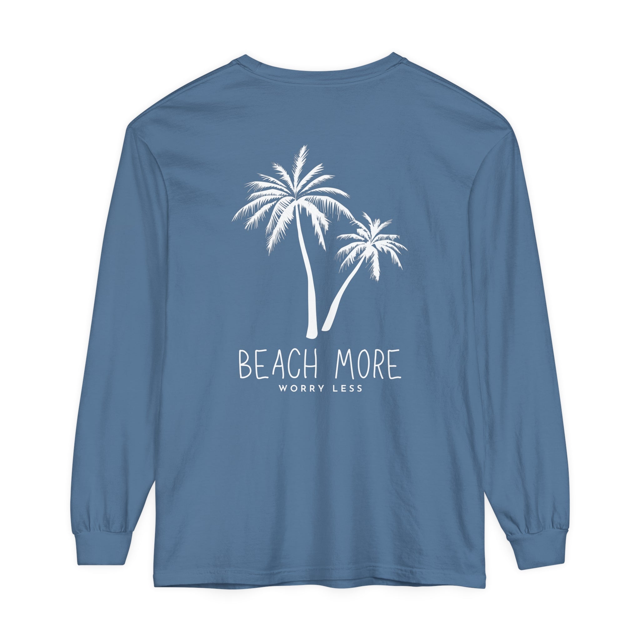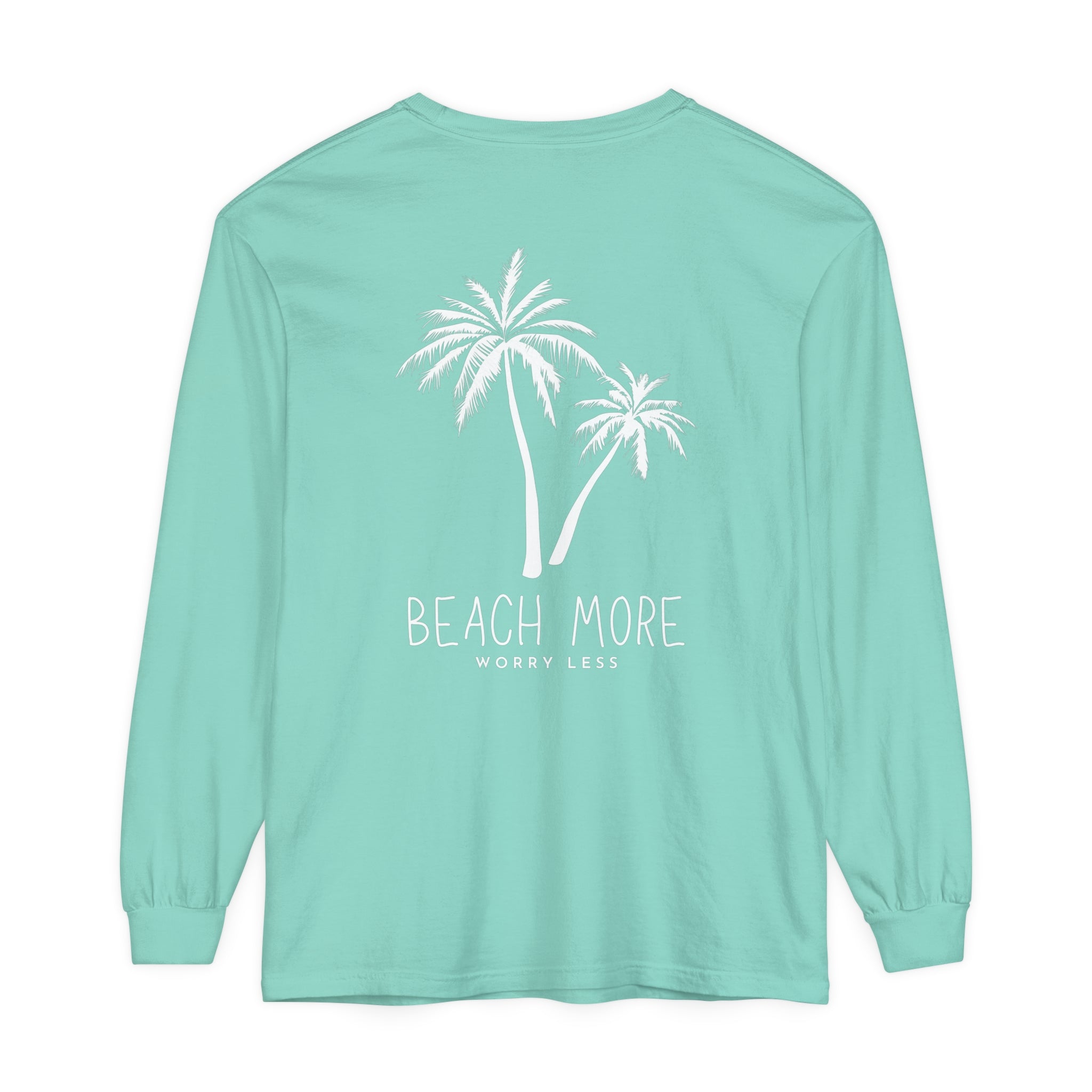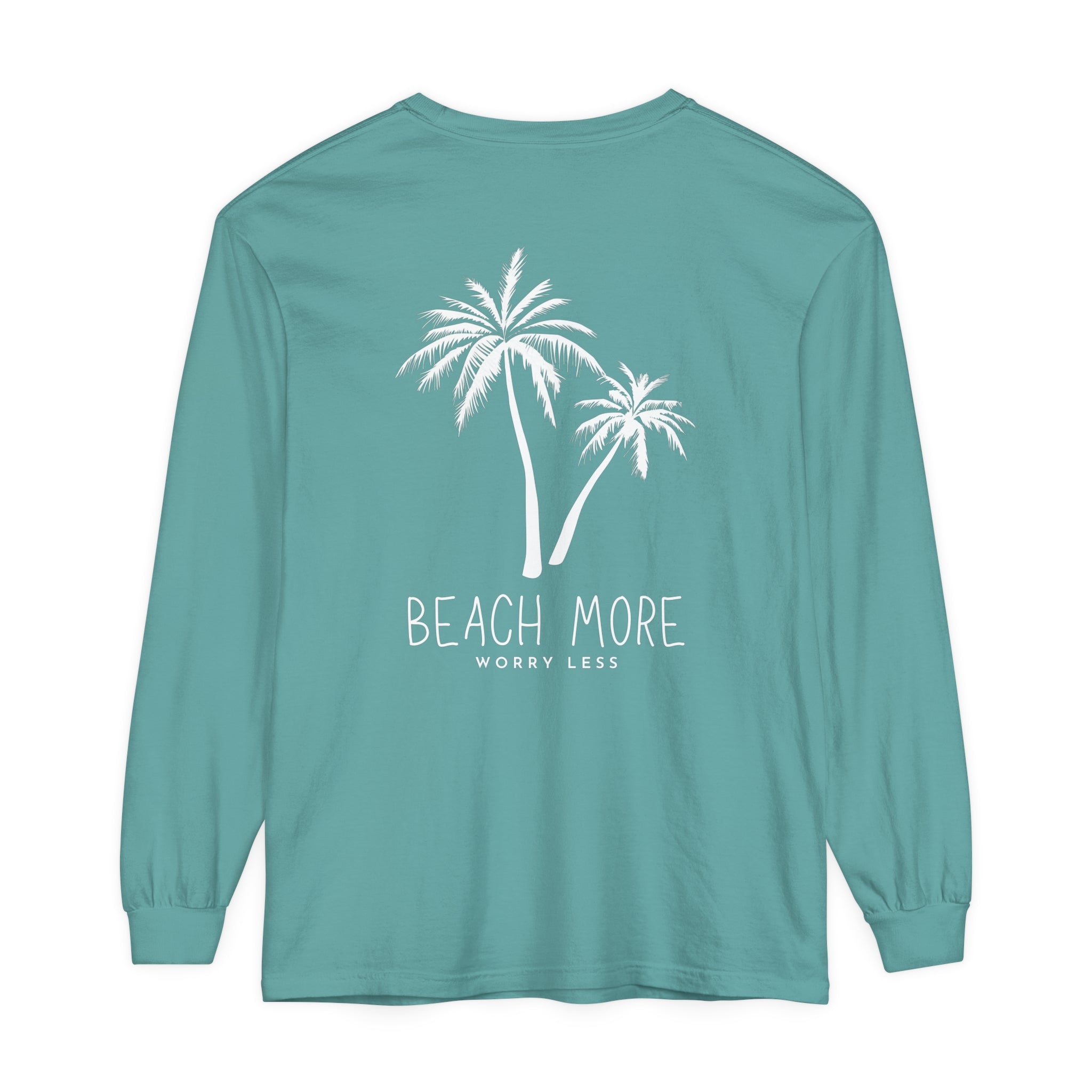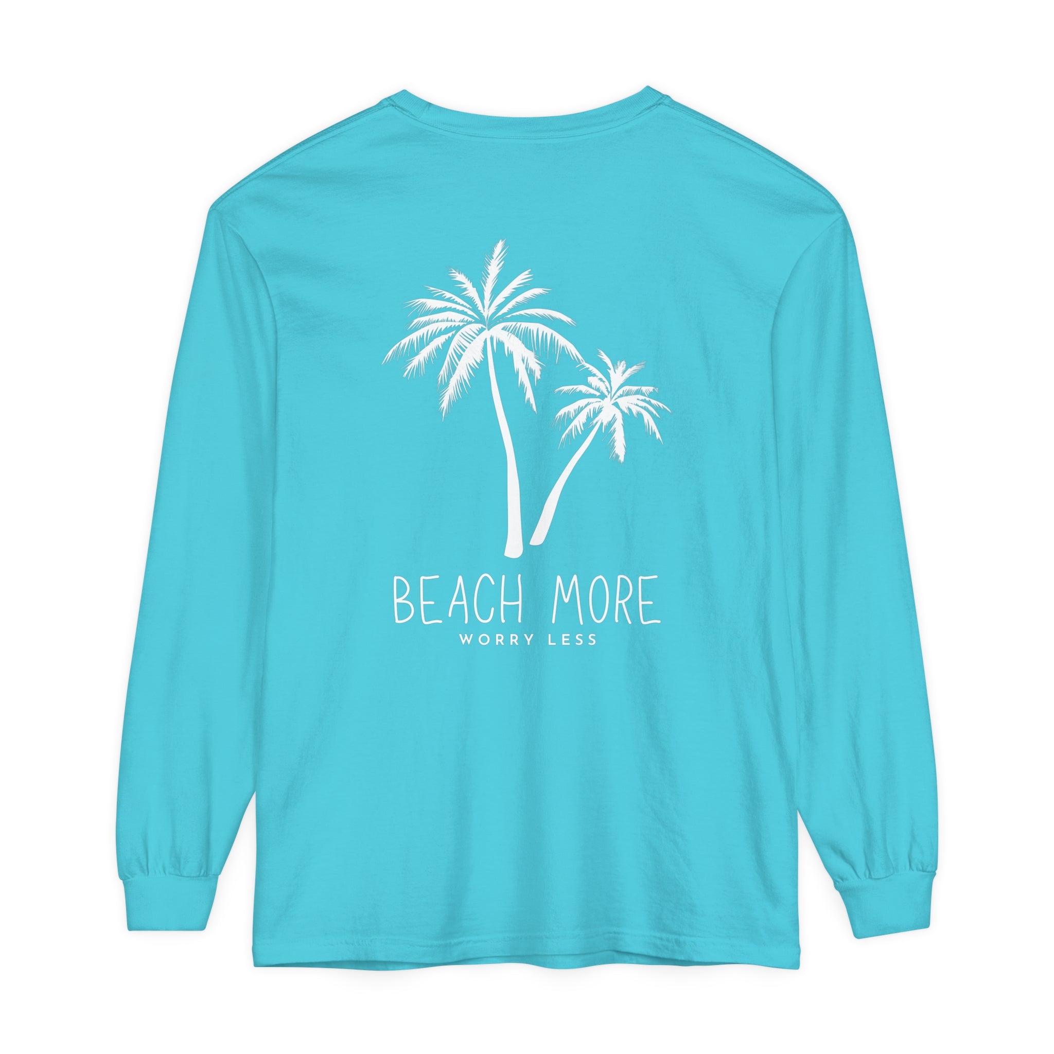 Embrace the good vibes and beach more with this stylish and comfortable long-sleeve tee. Add it to your collection today and let the beach adventures begin!