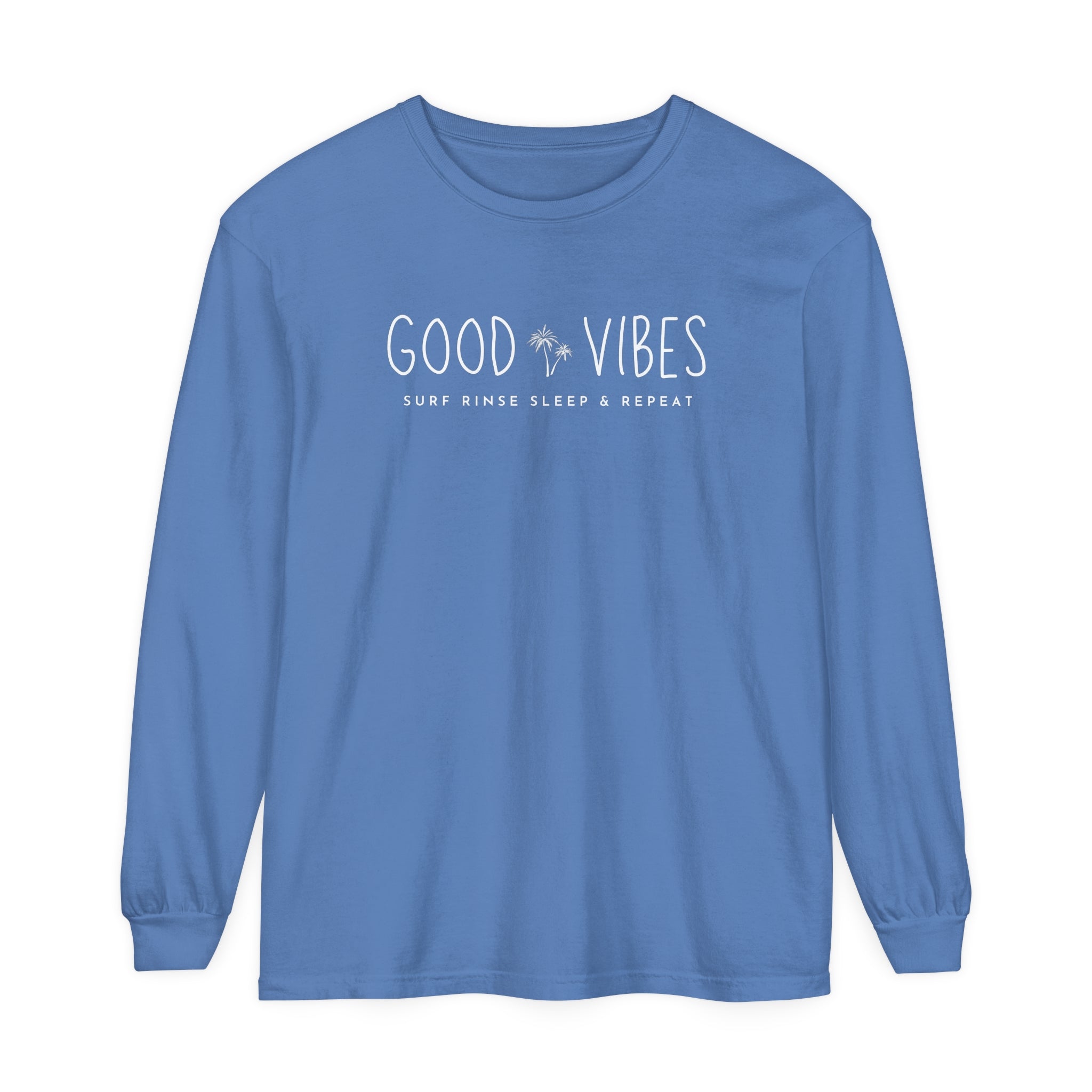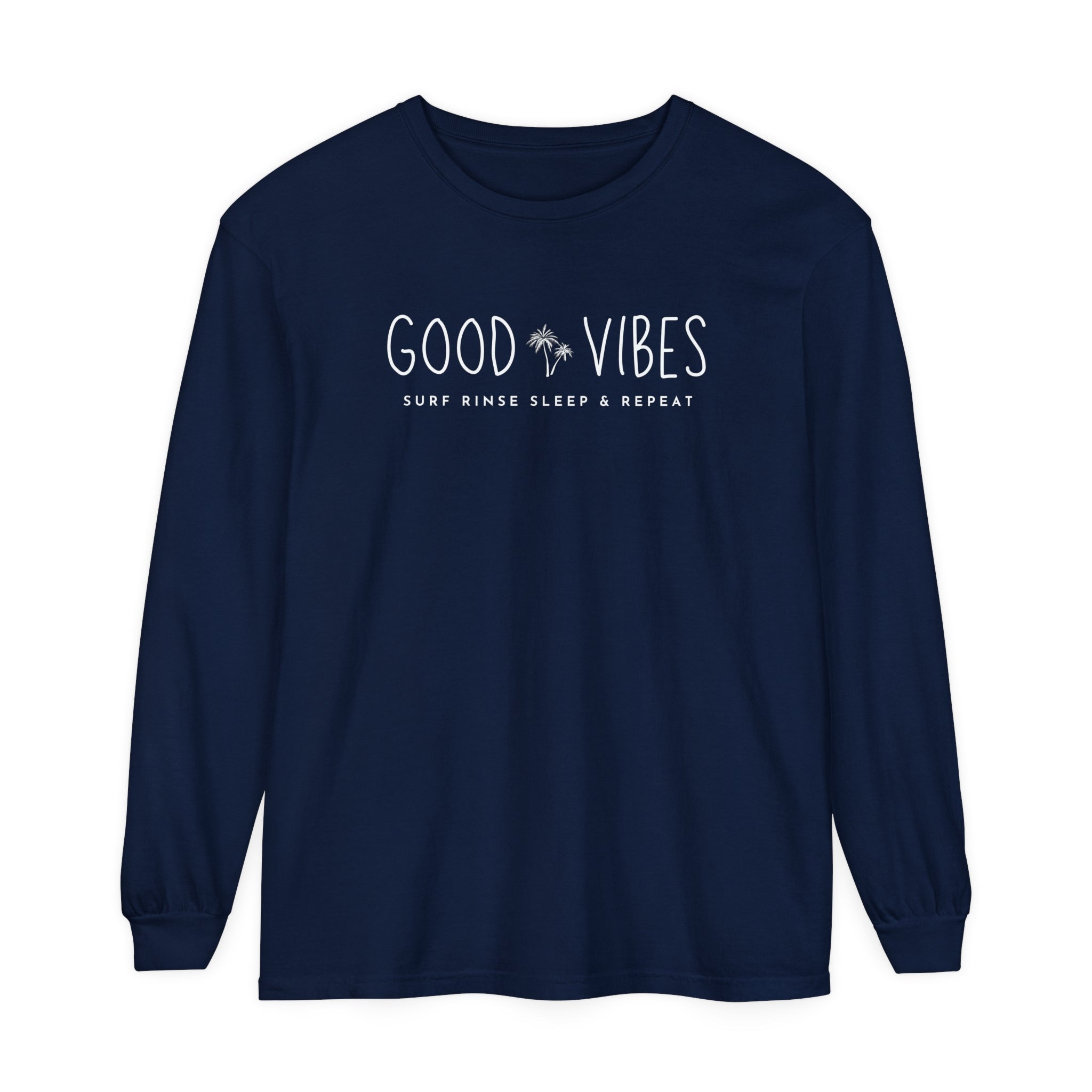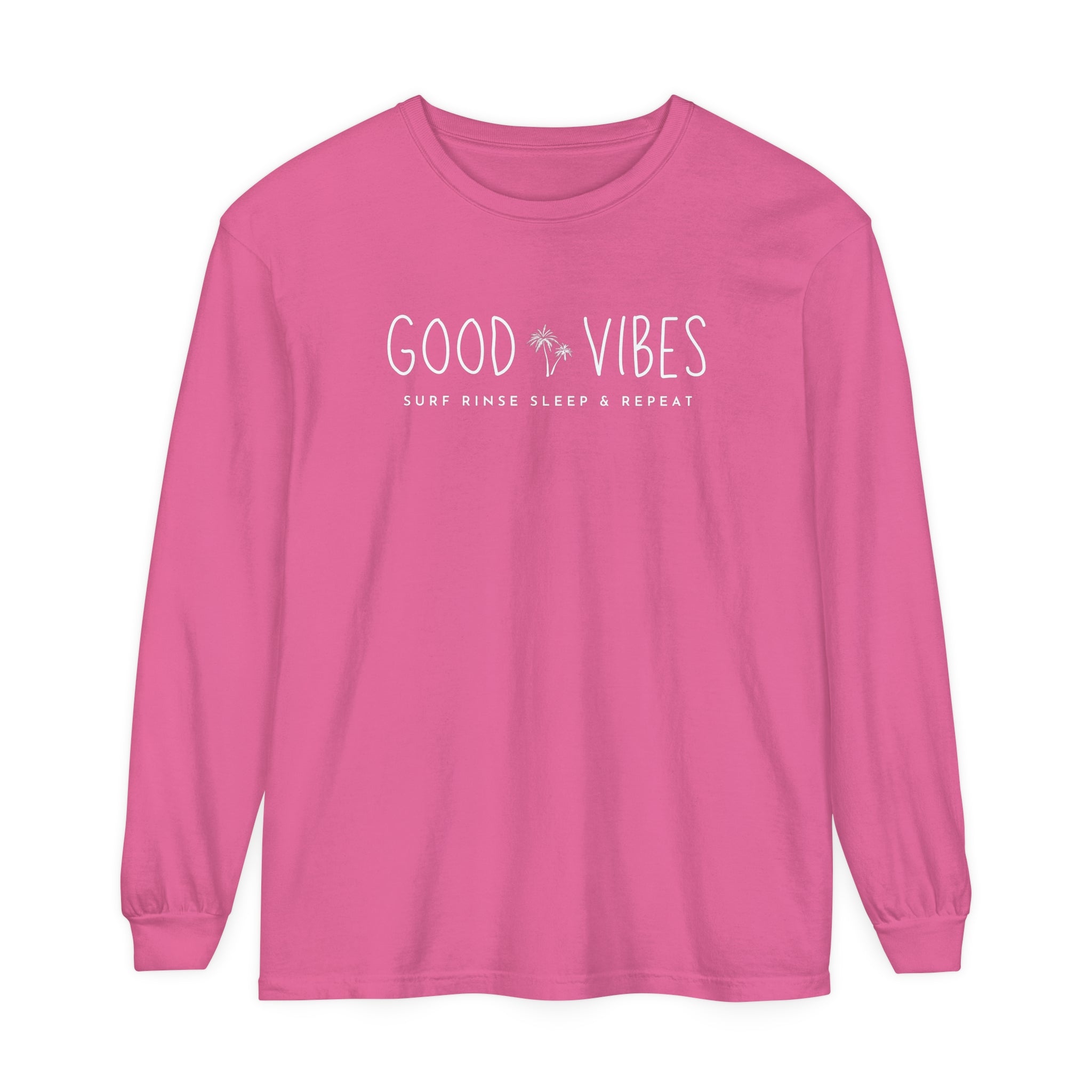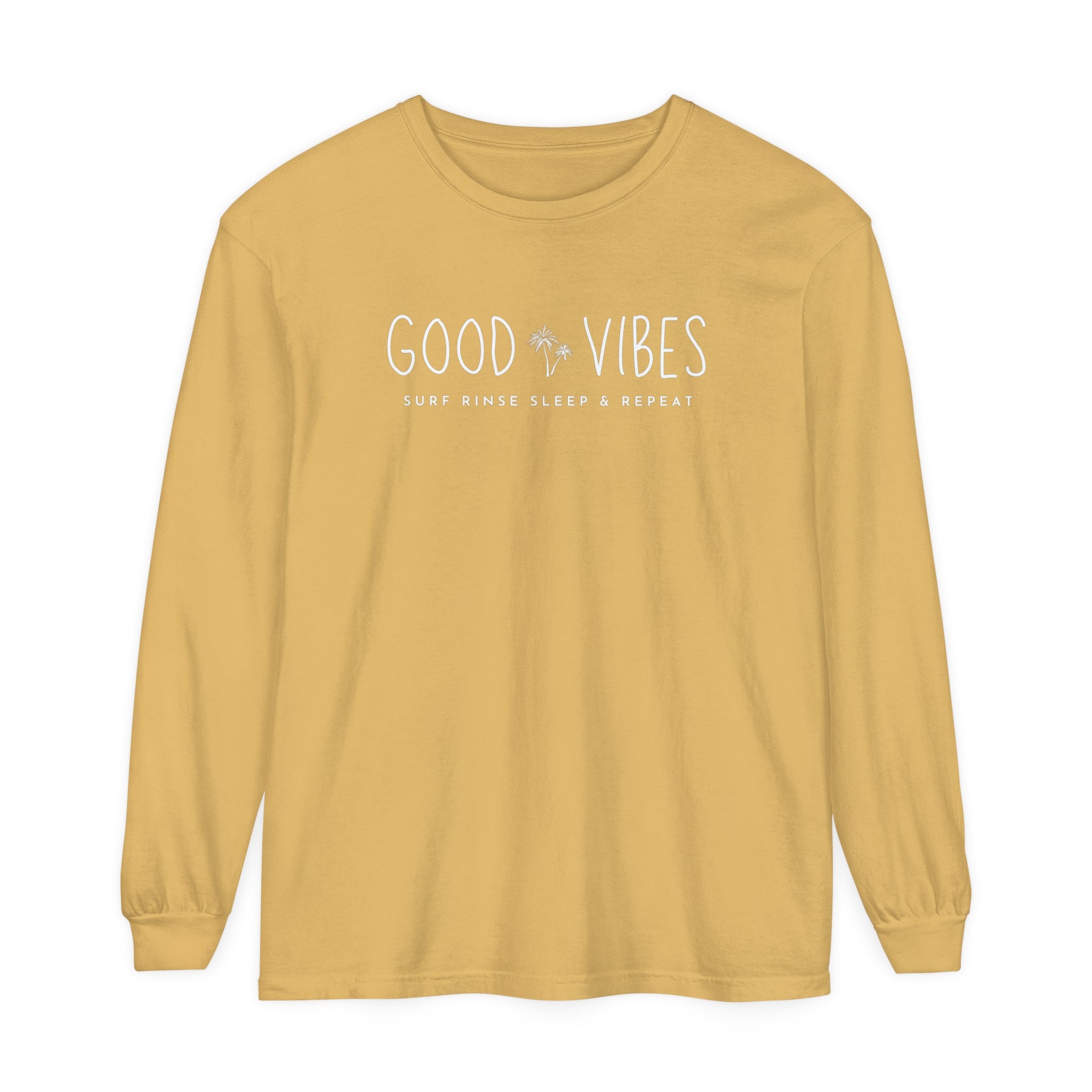 Good Vibes, Beach More Garment Dyed Long Sleeve T-Shirt