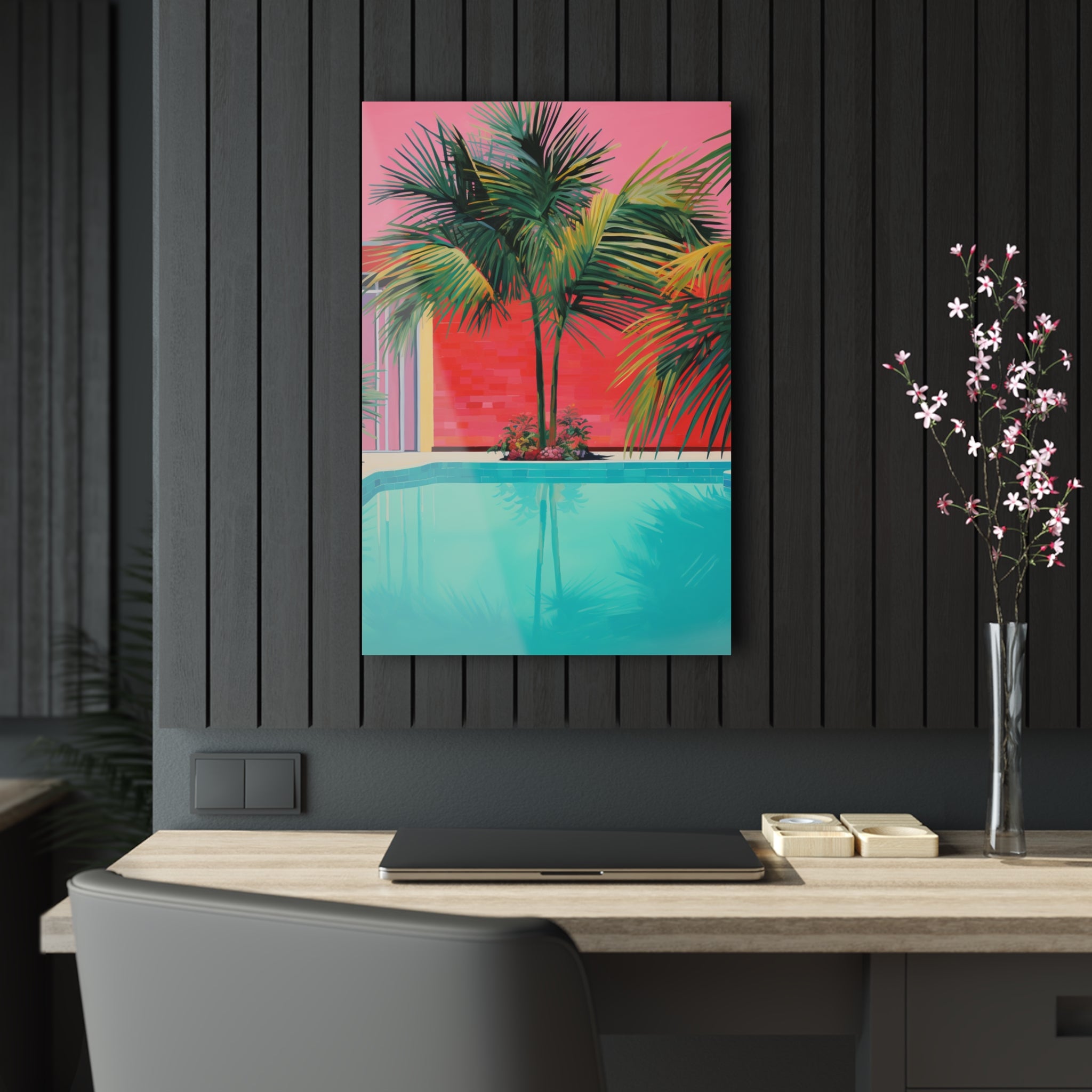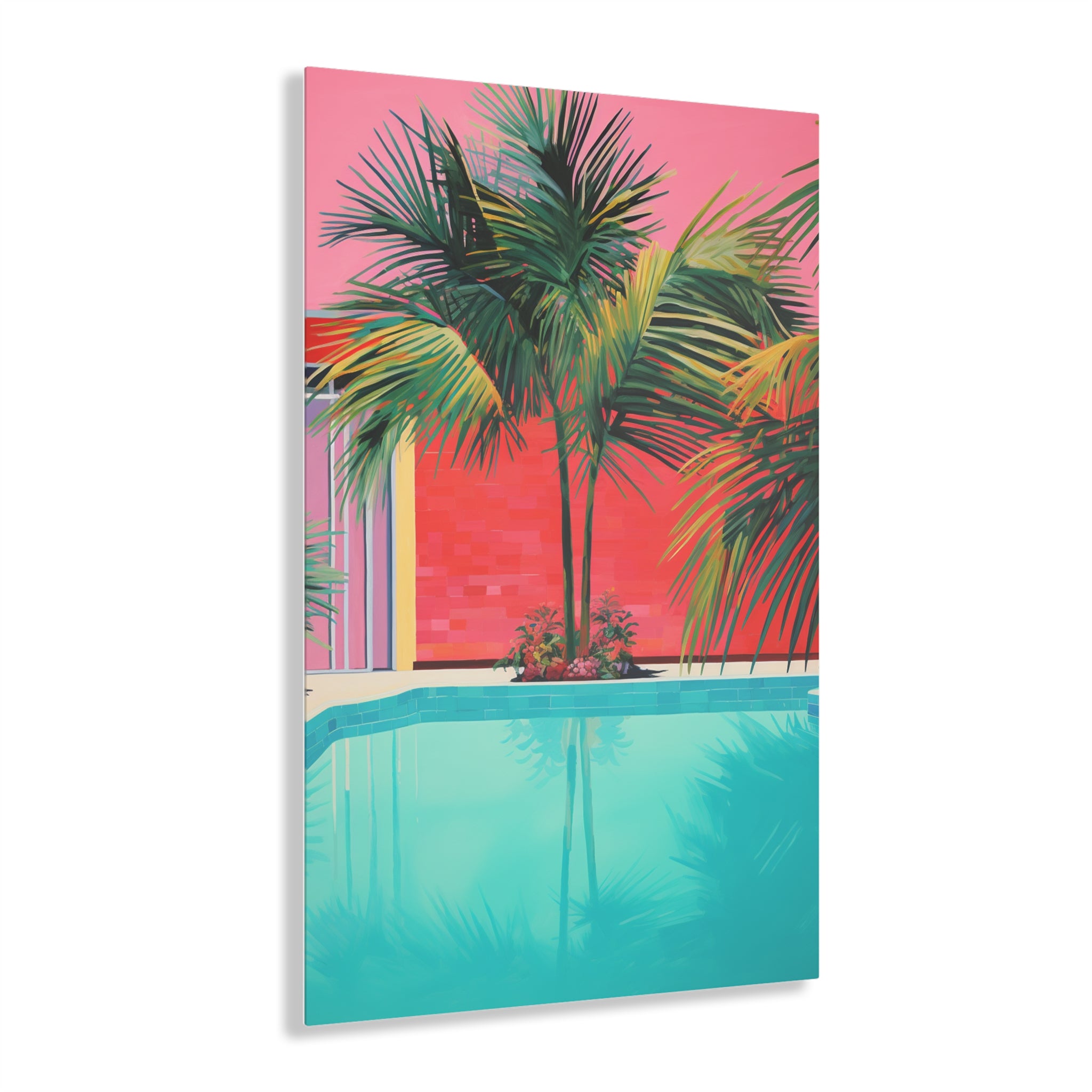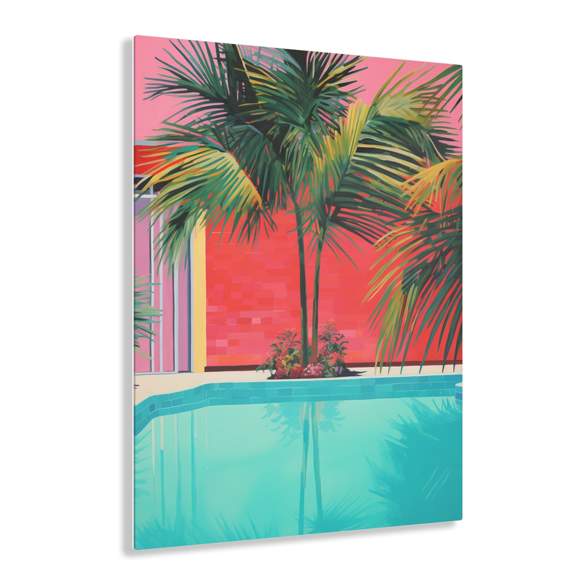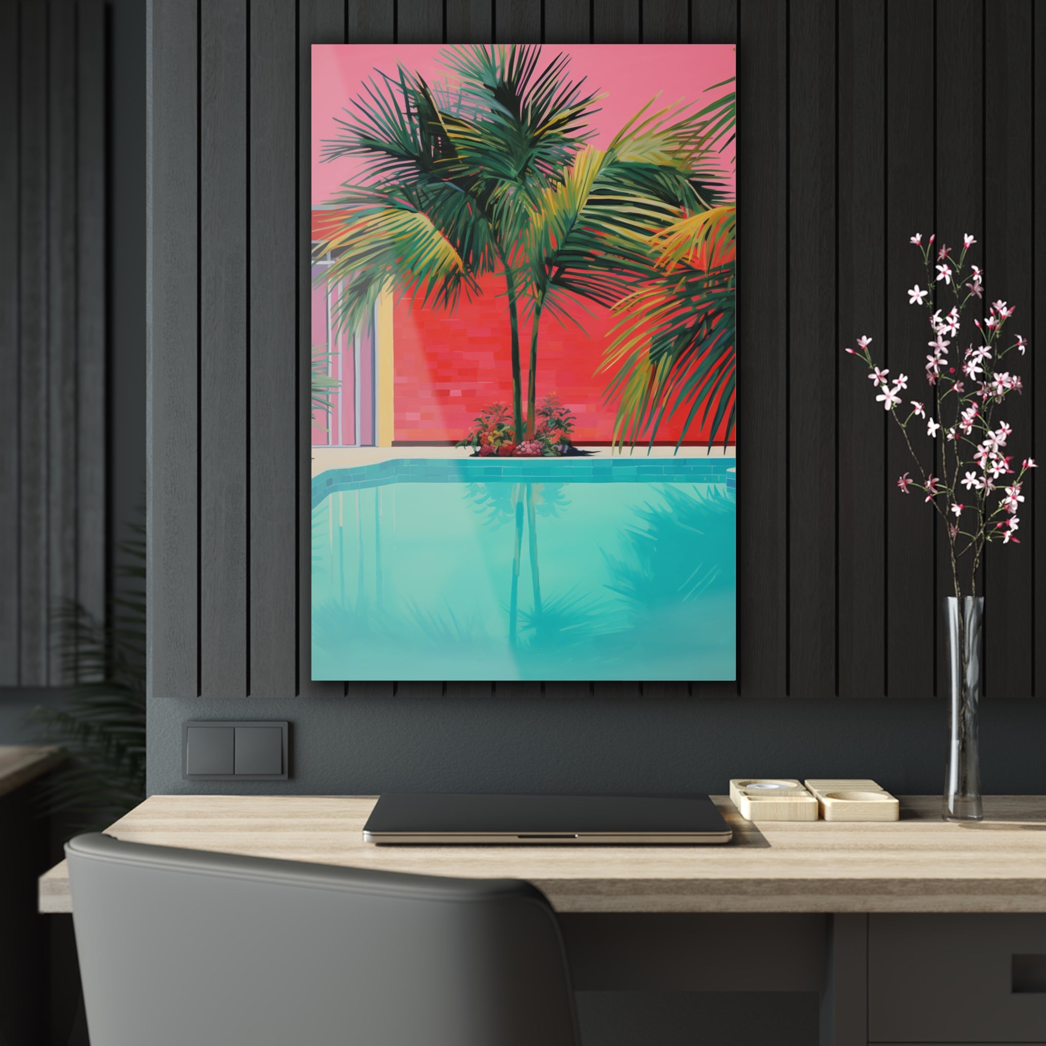 Transform your living space with the "Palm Springs Poolside Bliss" Acrylic Art Print and enjoy the essence of summer all year round.
