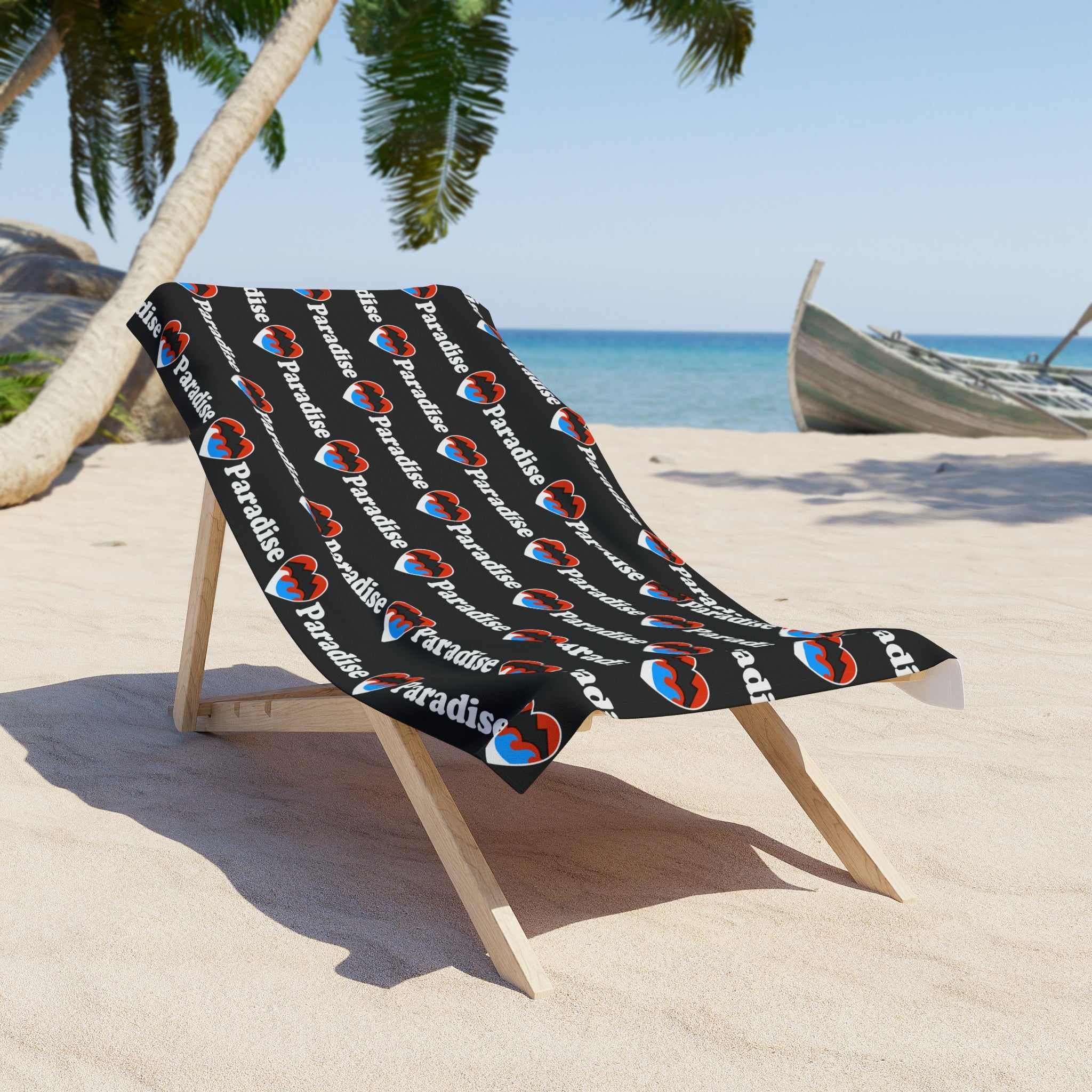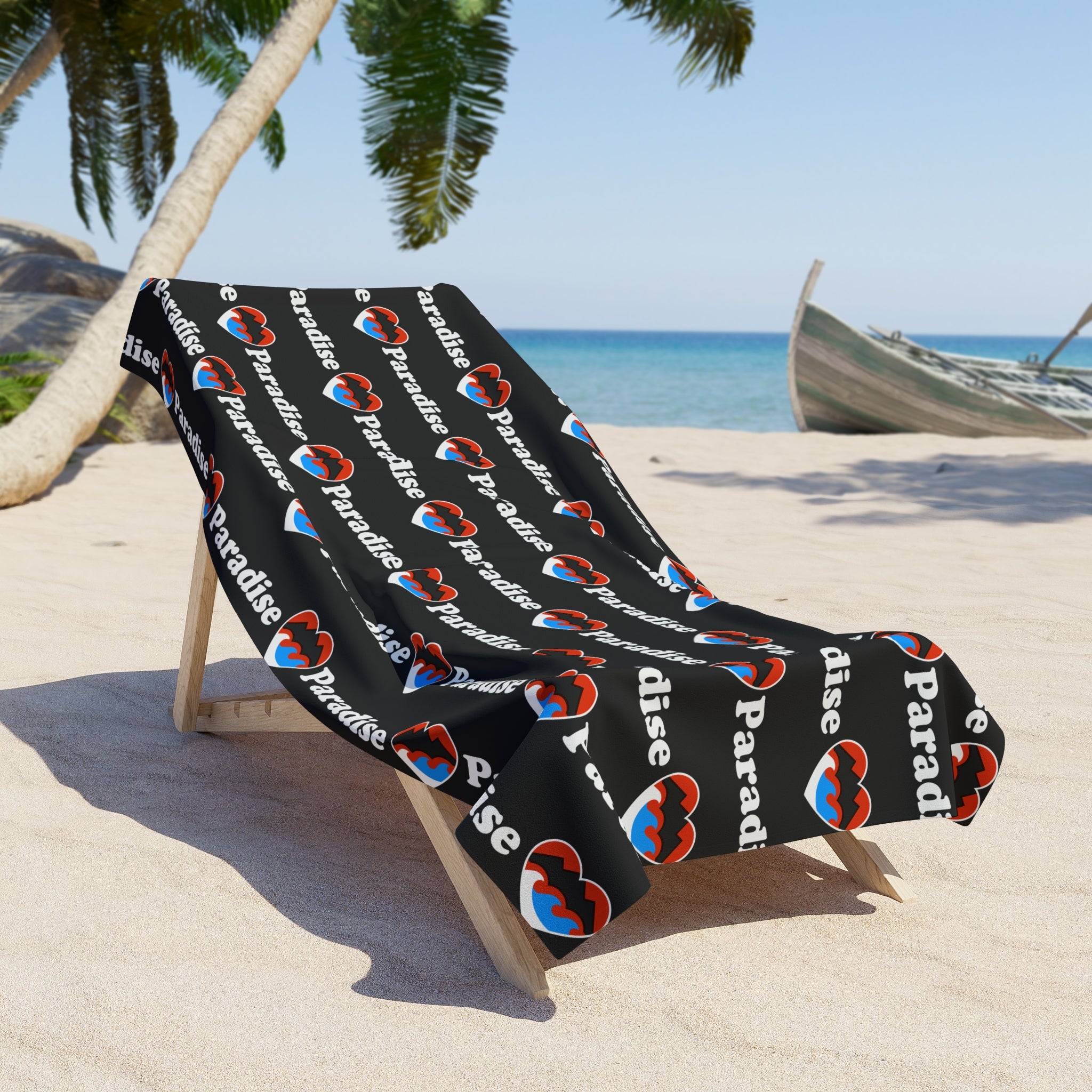 Ride the Retro Wave with the 'Paradise Heart' Logo Beach Towel!