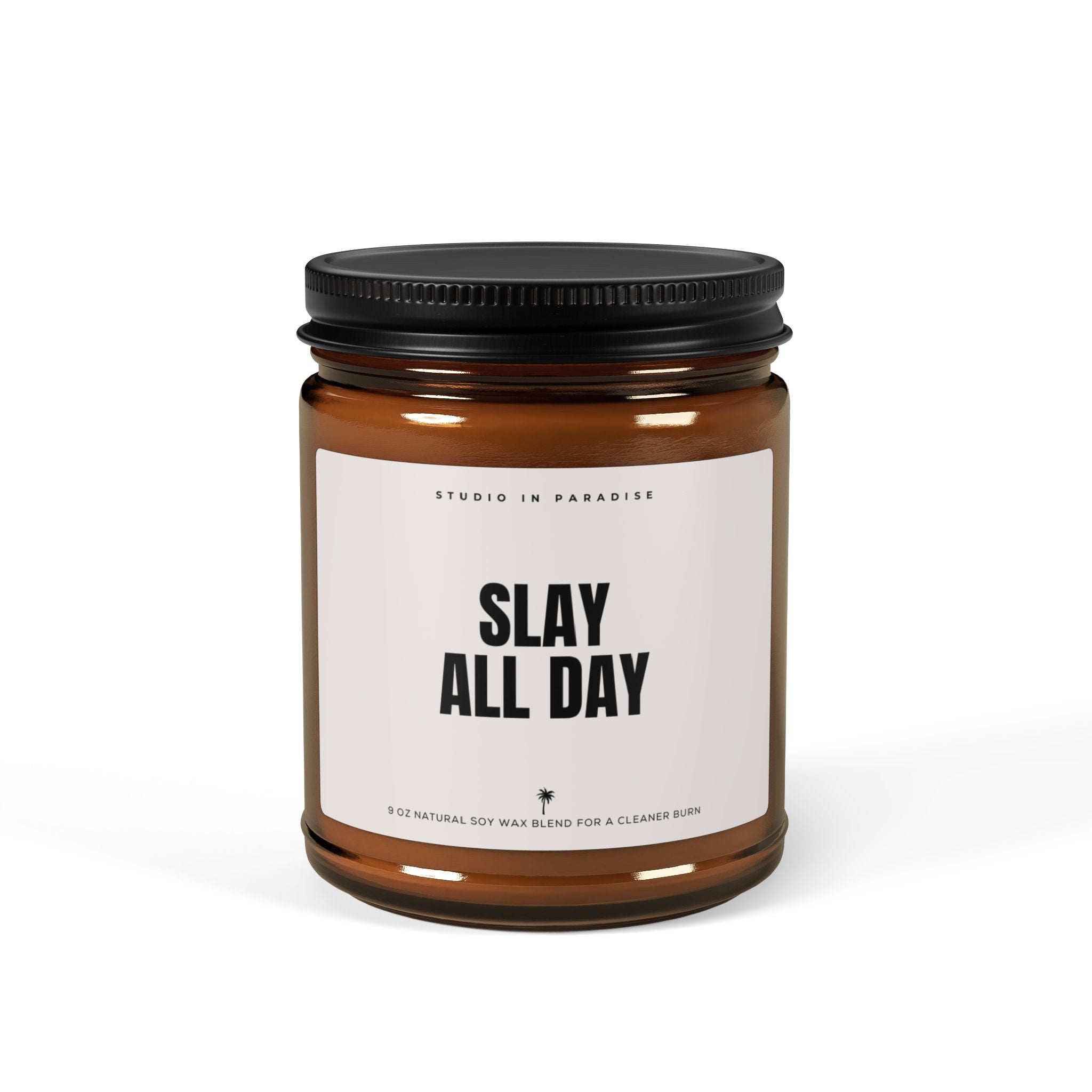 "Slay All Day" Amber Glass Candle – Fierce & Motivational