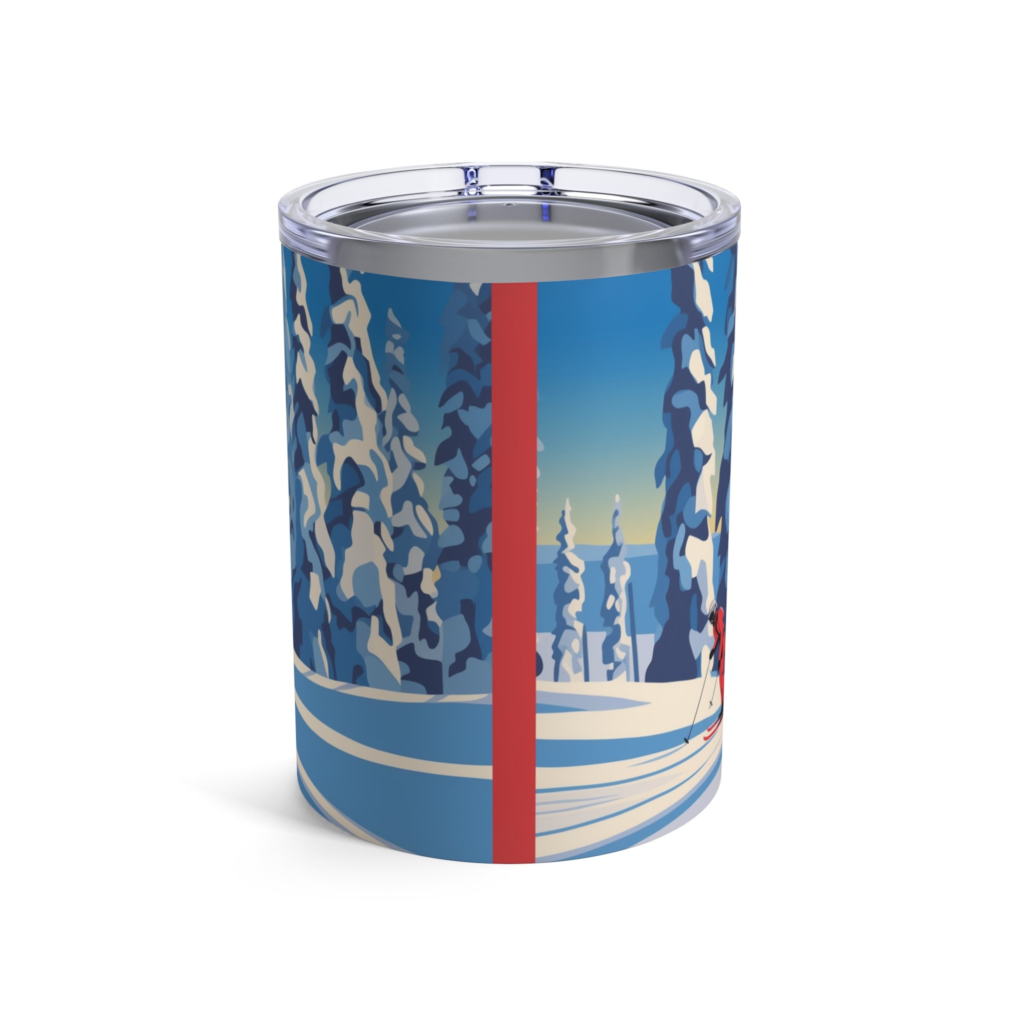 Experience the perfect blend of style and functionality with our "Sugar Bowl Lake Tahoe CA Stainless Steel Tumbler" from the Chalet Collection. This compact 10oz tumbler showcases stunning, hand-illustrated depictions of USA ski slopes, evoking the charm and adventure of Aspen.