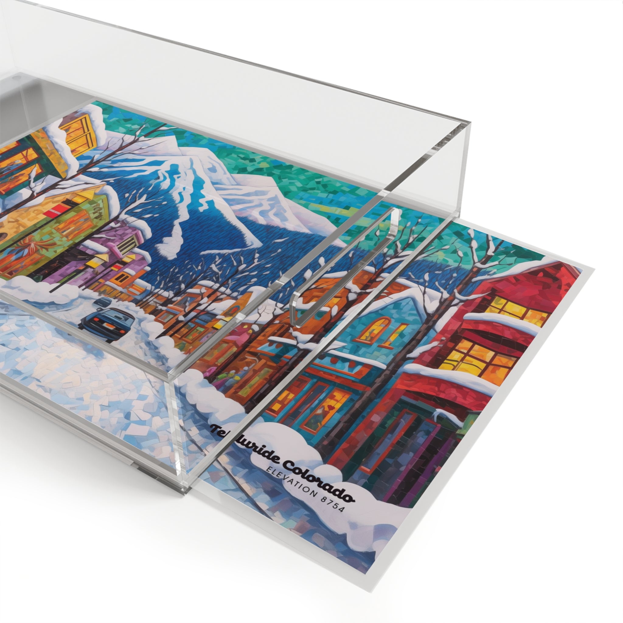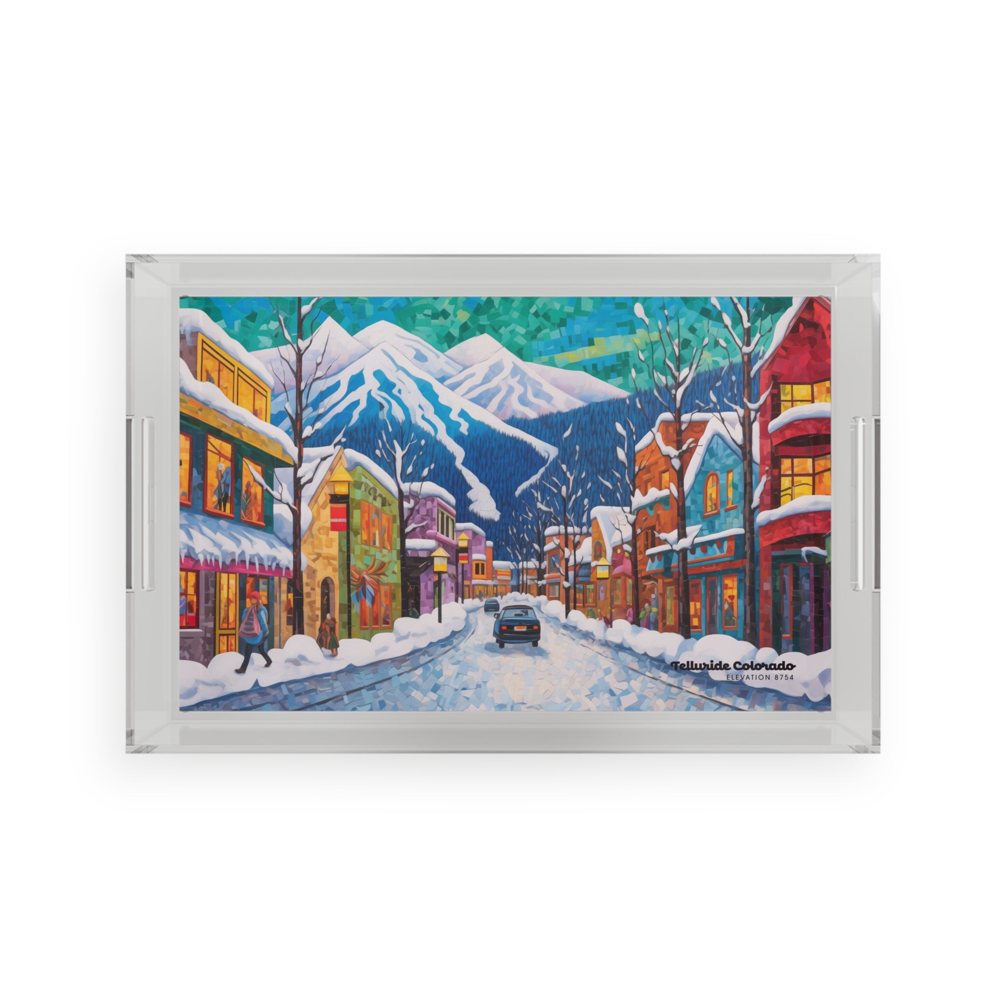 You'll love our "Telluride Downtown Acrylic Serving Tray" from our Chalet Collection. Perfect for adding a personalized touch to any business or home, this versatile tray makes a fantastic gift. Proudly assembled in the USA, it features a high-quality laminated artwork insert, ensuring your custom design is beautifully showcased on a durable white-base insert. The tray's convenient handles make it easy to carry for home or professional use.