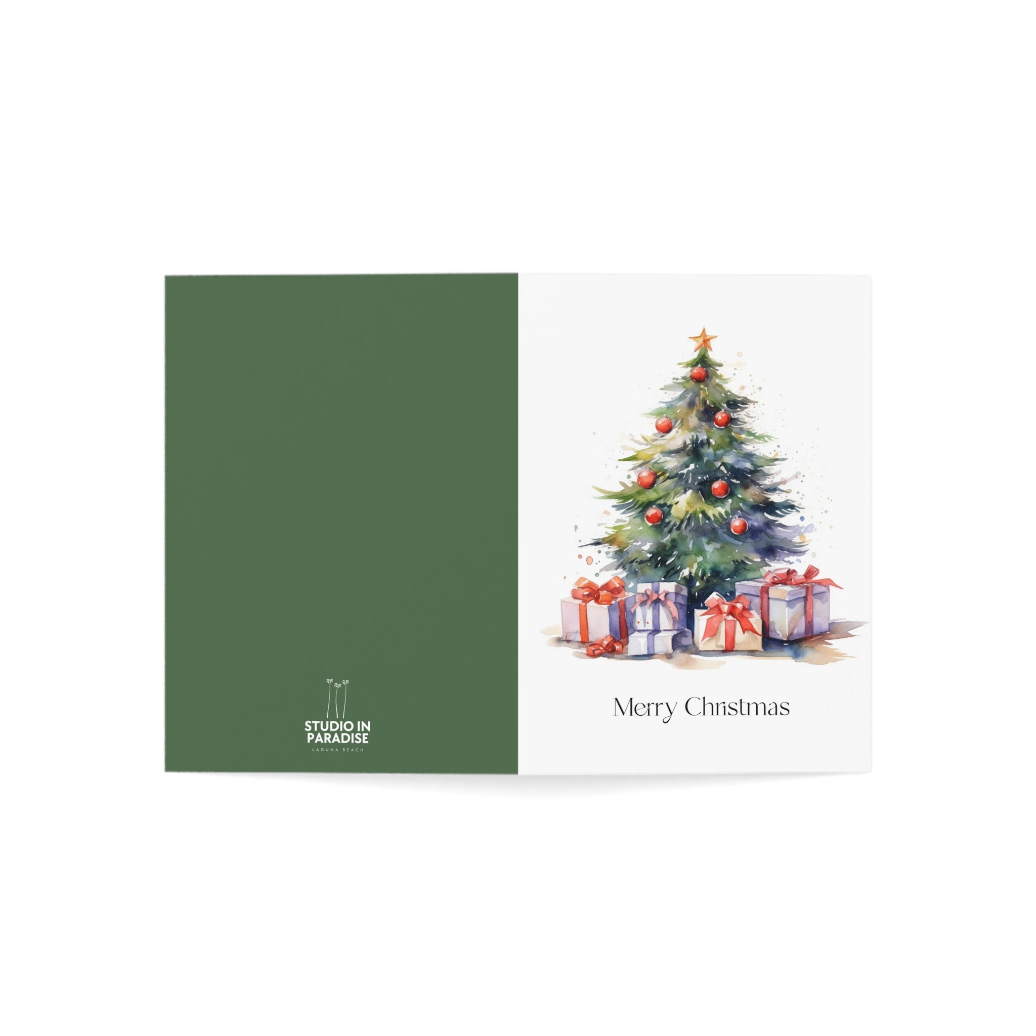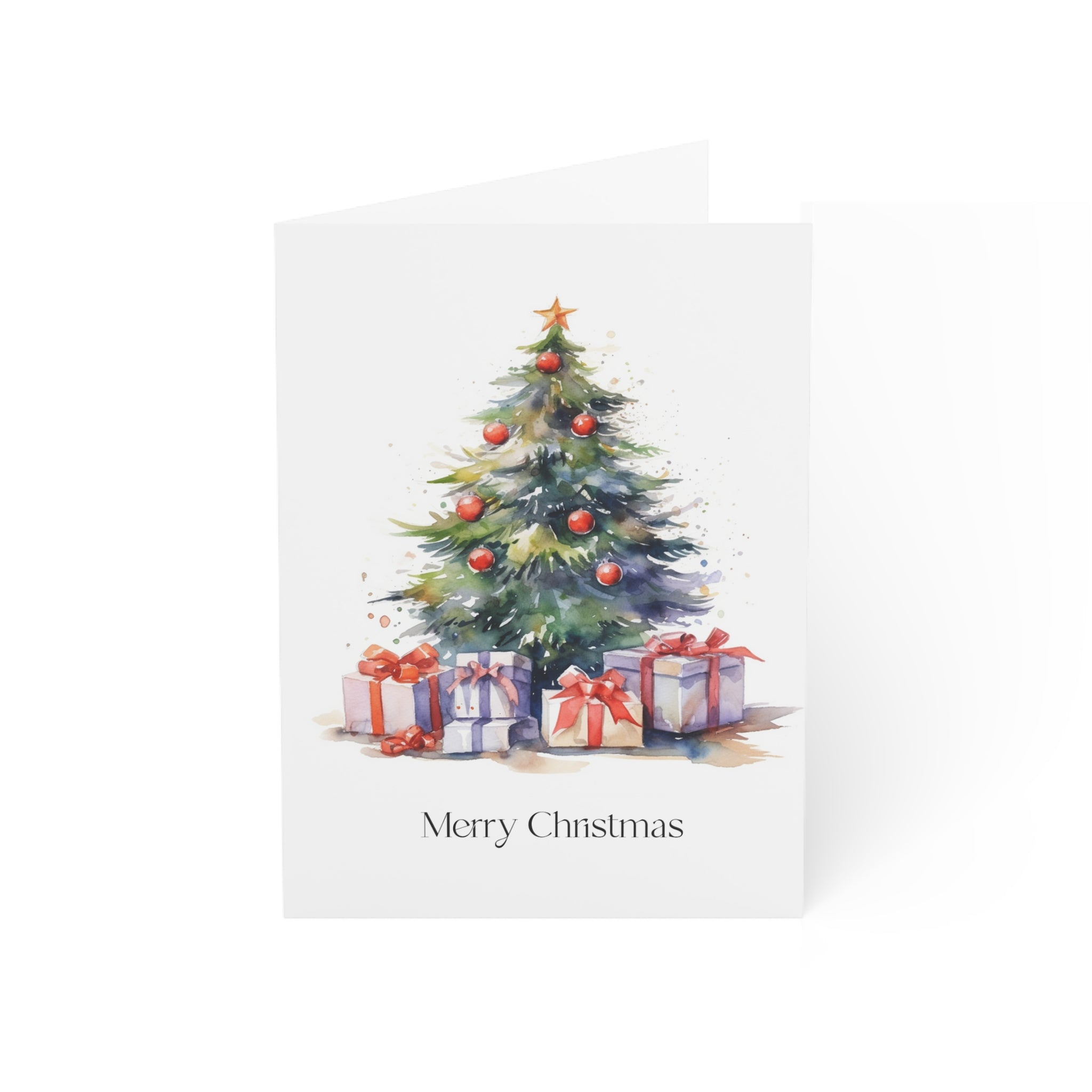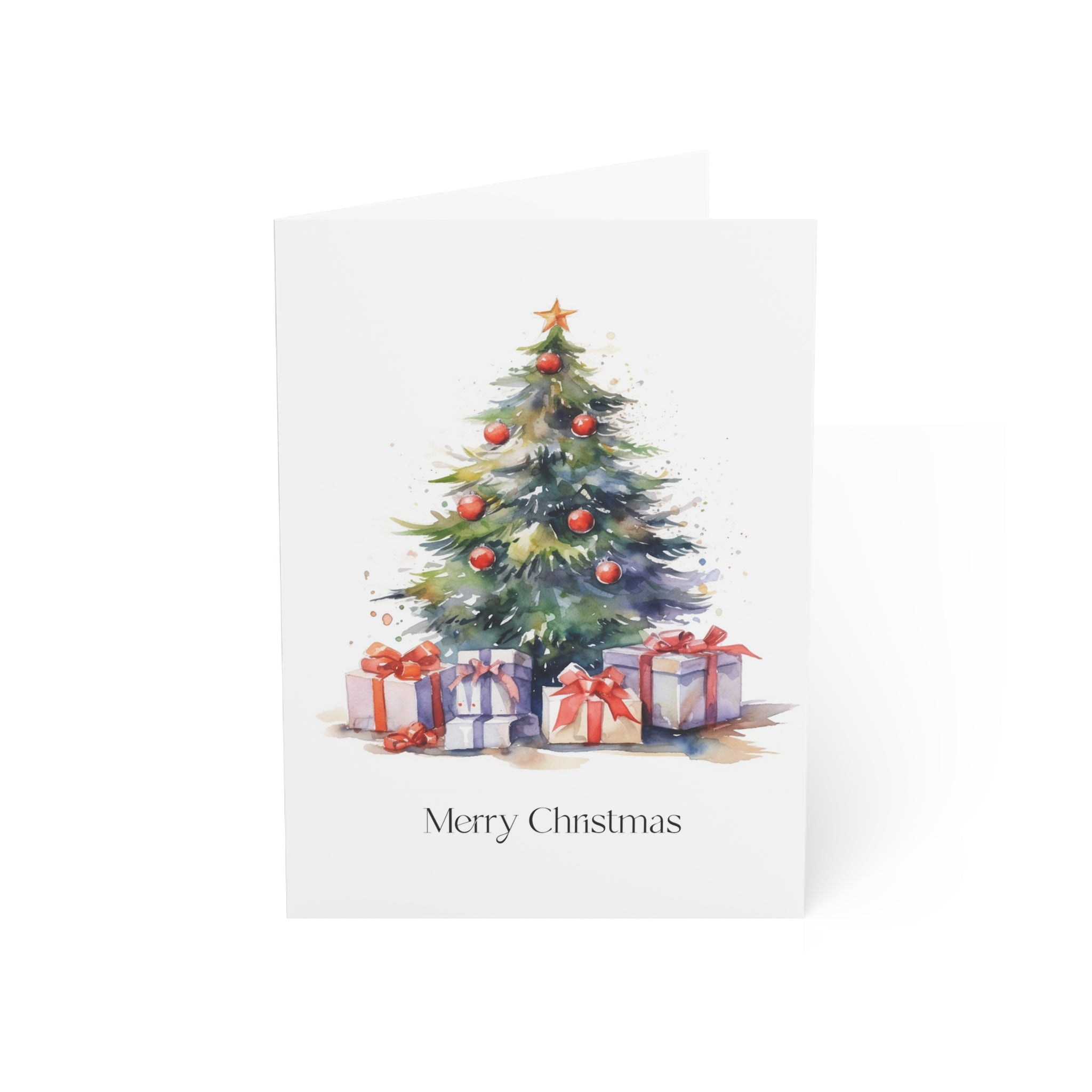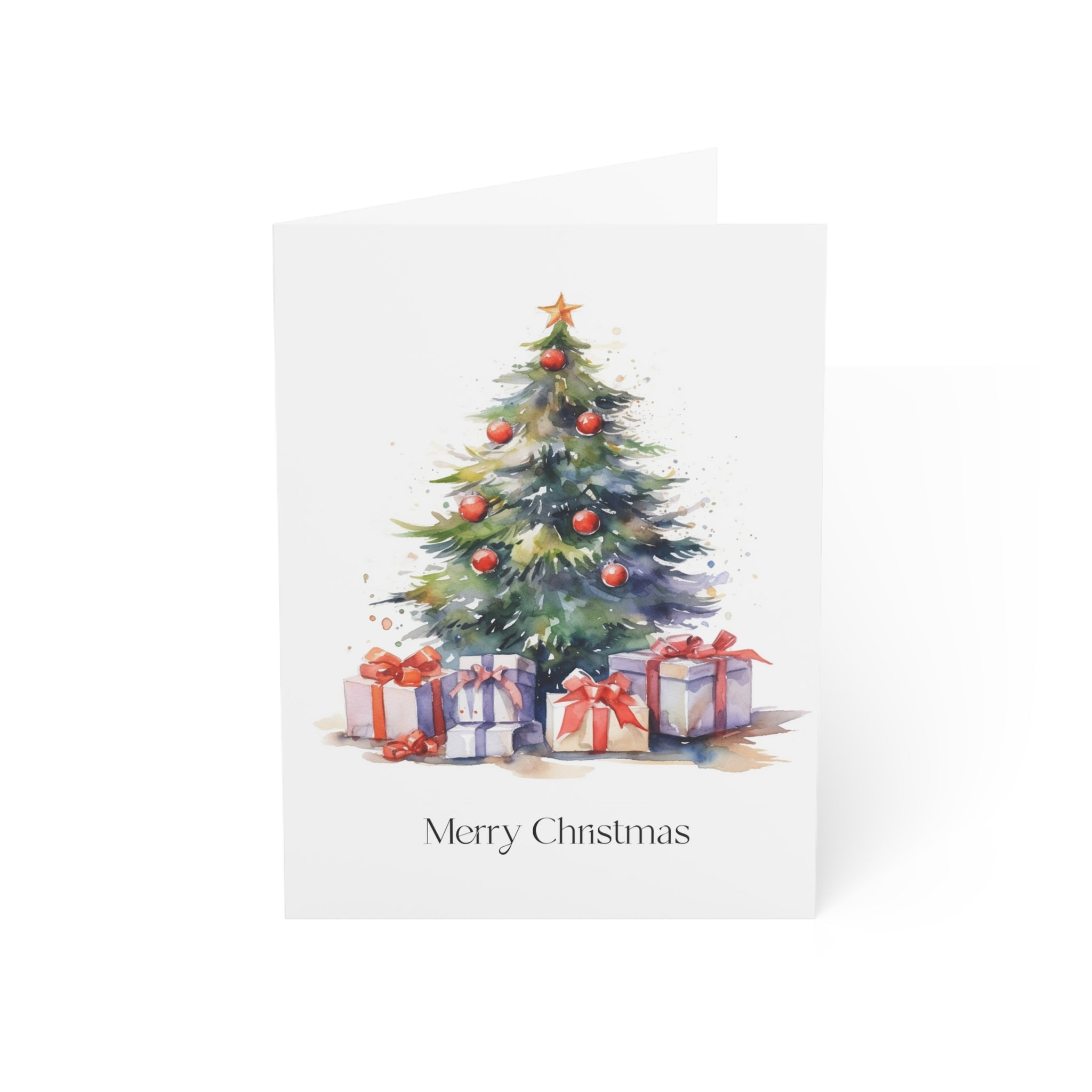 Embrace the Magic of Christmas with Our Enchanting Watercolor Christmas Tree Card! Introducing a heartwarming addition to our Christmas collection—a beautifully crafted card featuring a stunning watercolor illustration of a Christmas tree adorned with decorations and surrounded by beautifully wrapped presents. This design is sure to fill hearts with warmth and holiday cheer. Transport yourself to a winter wonderland with this enchanting watercolor illustration. The beautifully decorated tree, aglow with festive lights, creates a scene that captures the true spirit of the season. Blank inside!