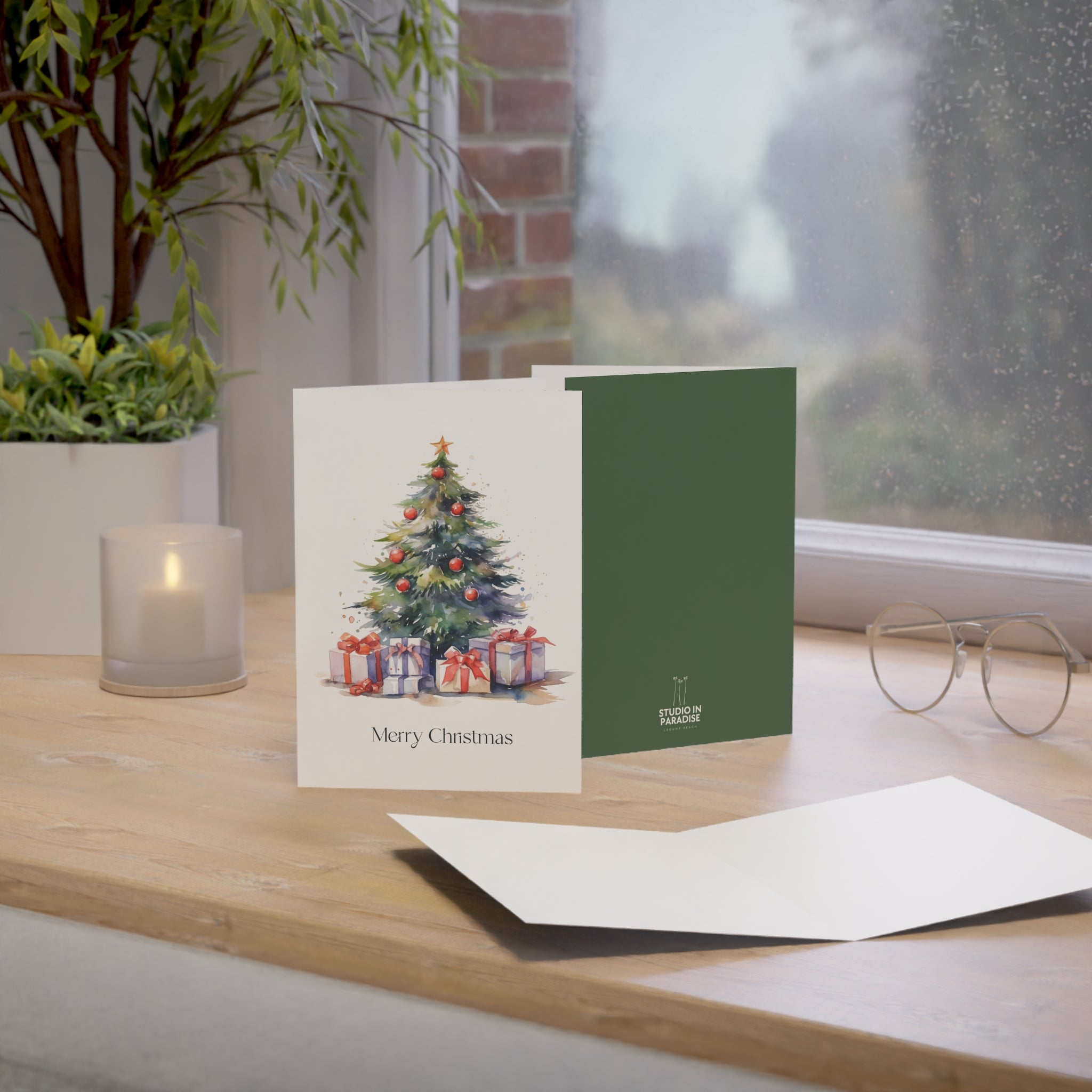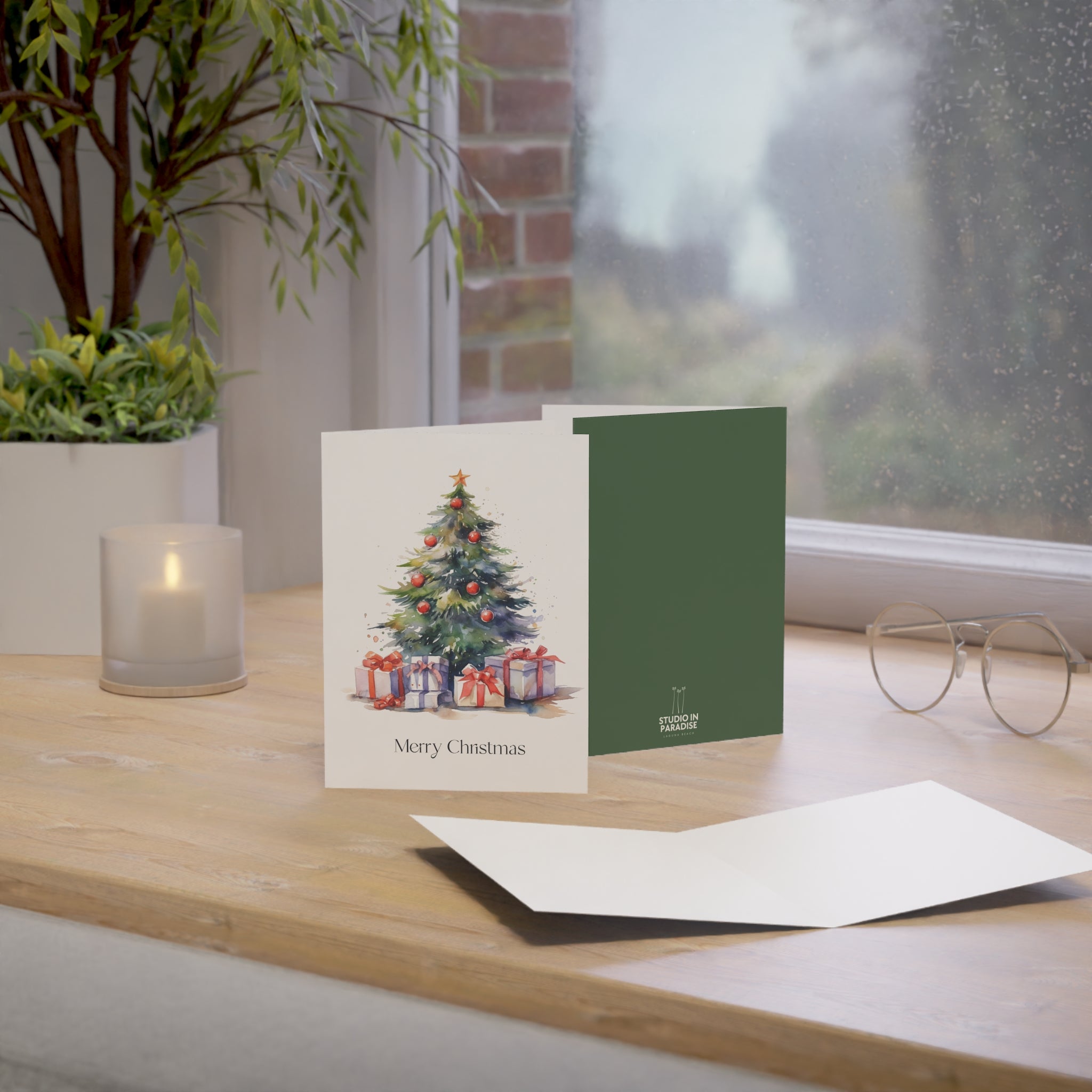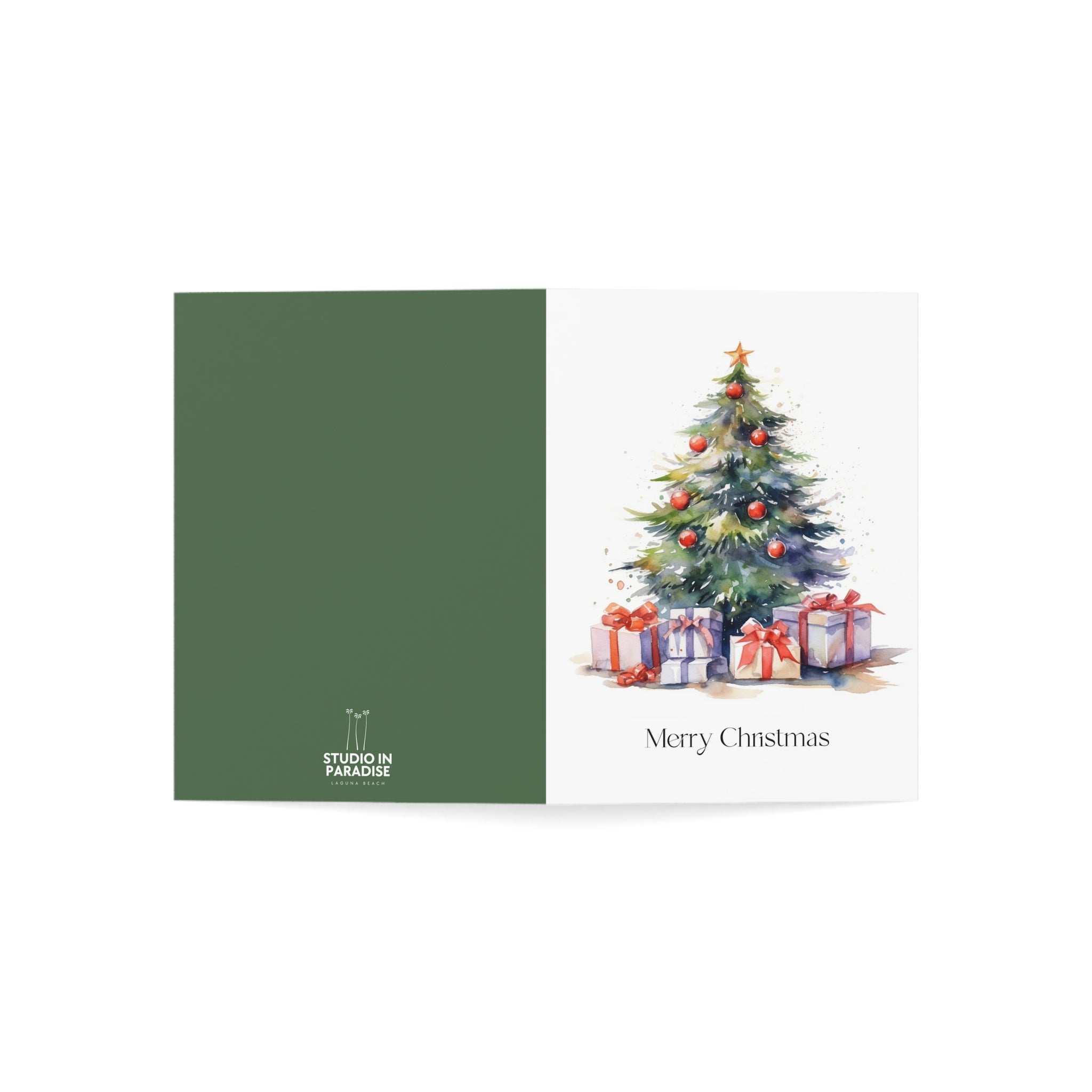 Embrace the Magic of Christmas with Our Enchanting Watercolor Christmas Tree Card! Introducing a heartwarming addition to our Christmas collection—a beautifully crafted card featuring a stunning watercolor illustration of a Christmas tree adorned with decorations and surrounded by beautifully wrapped presents. This design is sure to fill hearts with warmth and holiday cheer. Transport yourself to a winter wonderland with this enchanting watercolor illustration. The beautifully decorated tree, aglow with festive lights, creates a scene that captures the true spirit of the season. Blank inside!