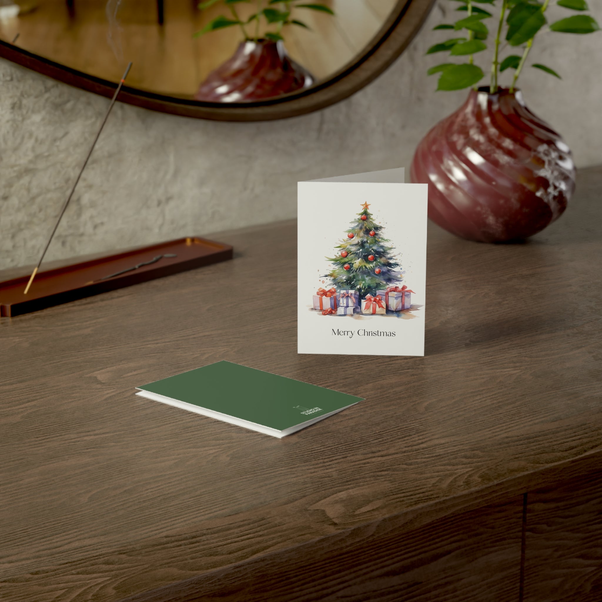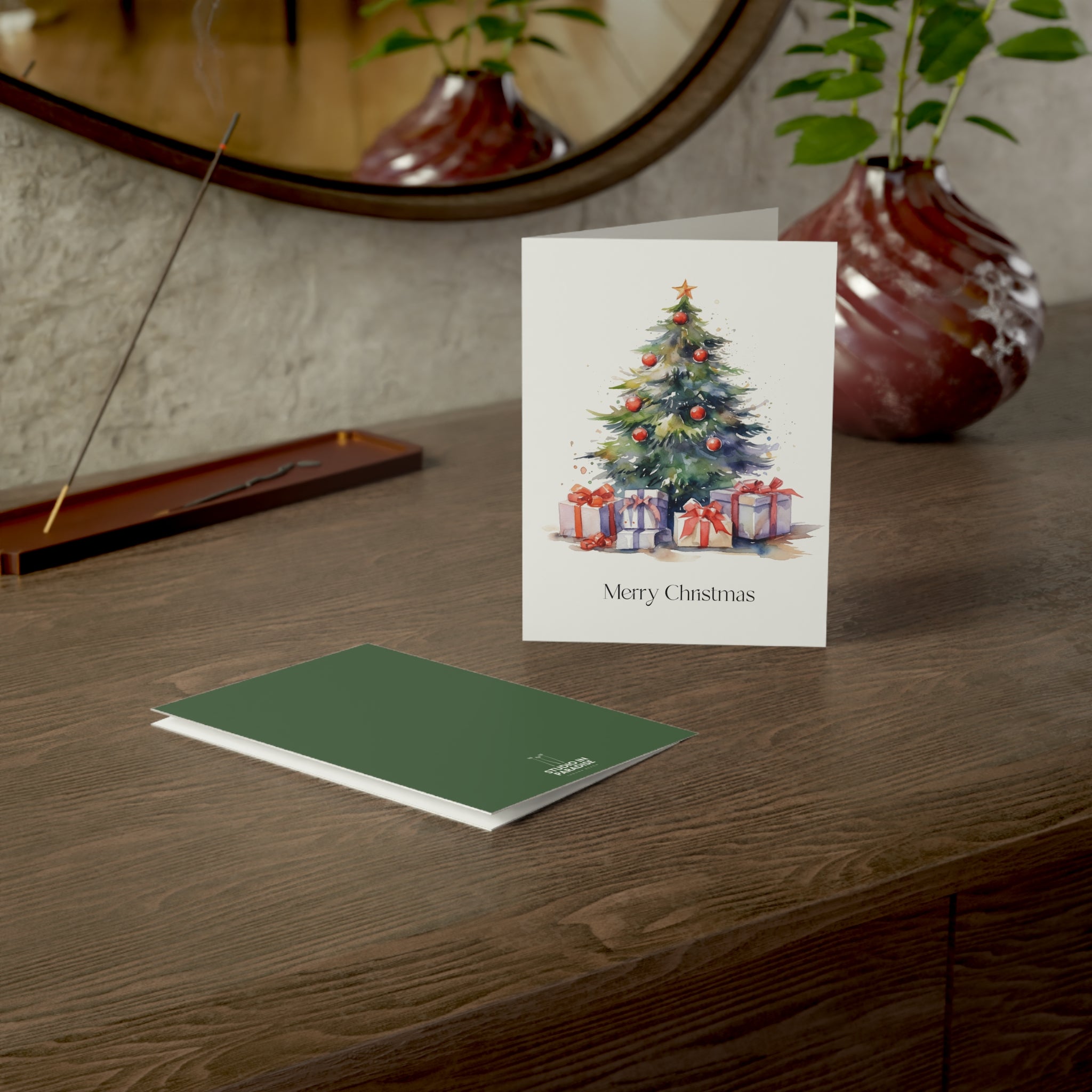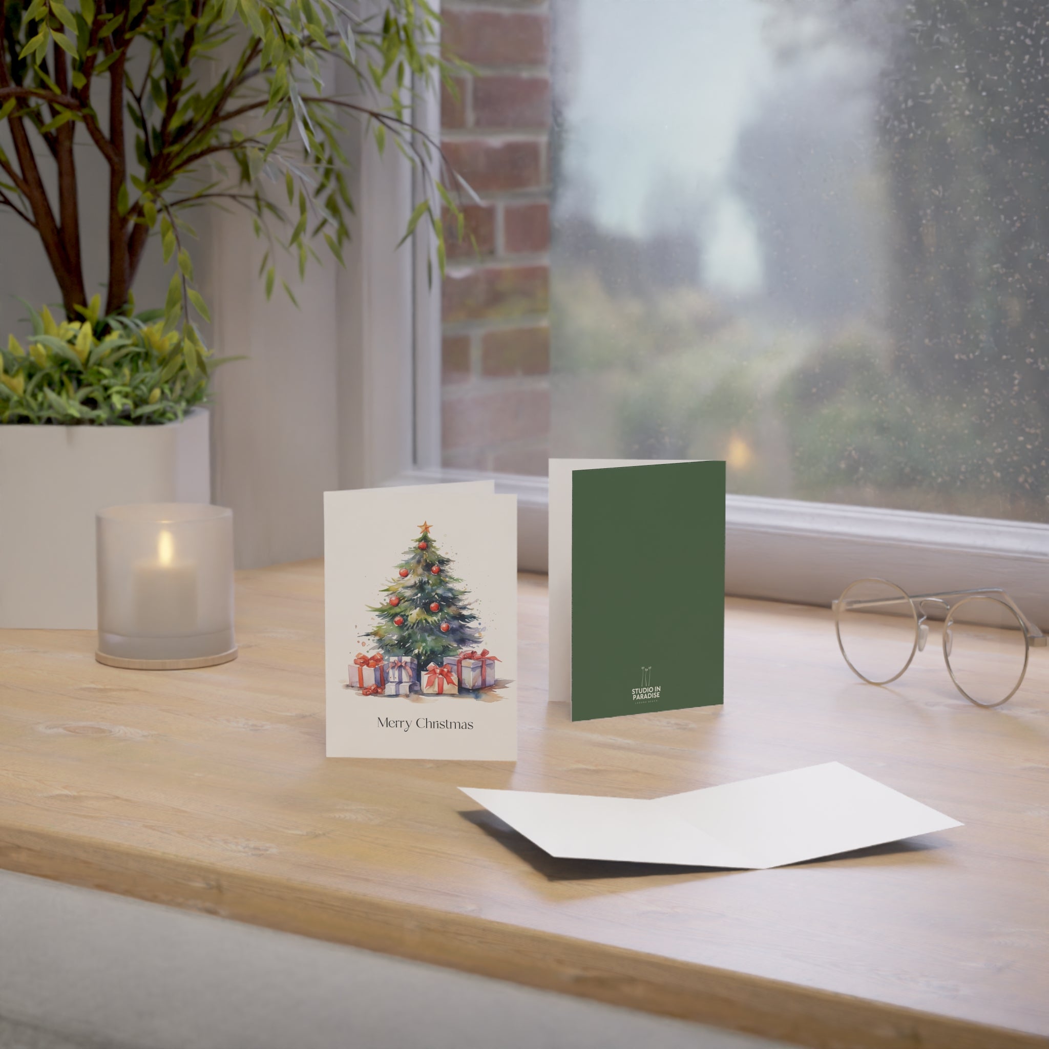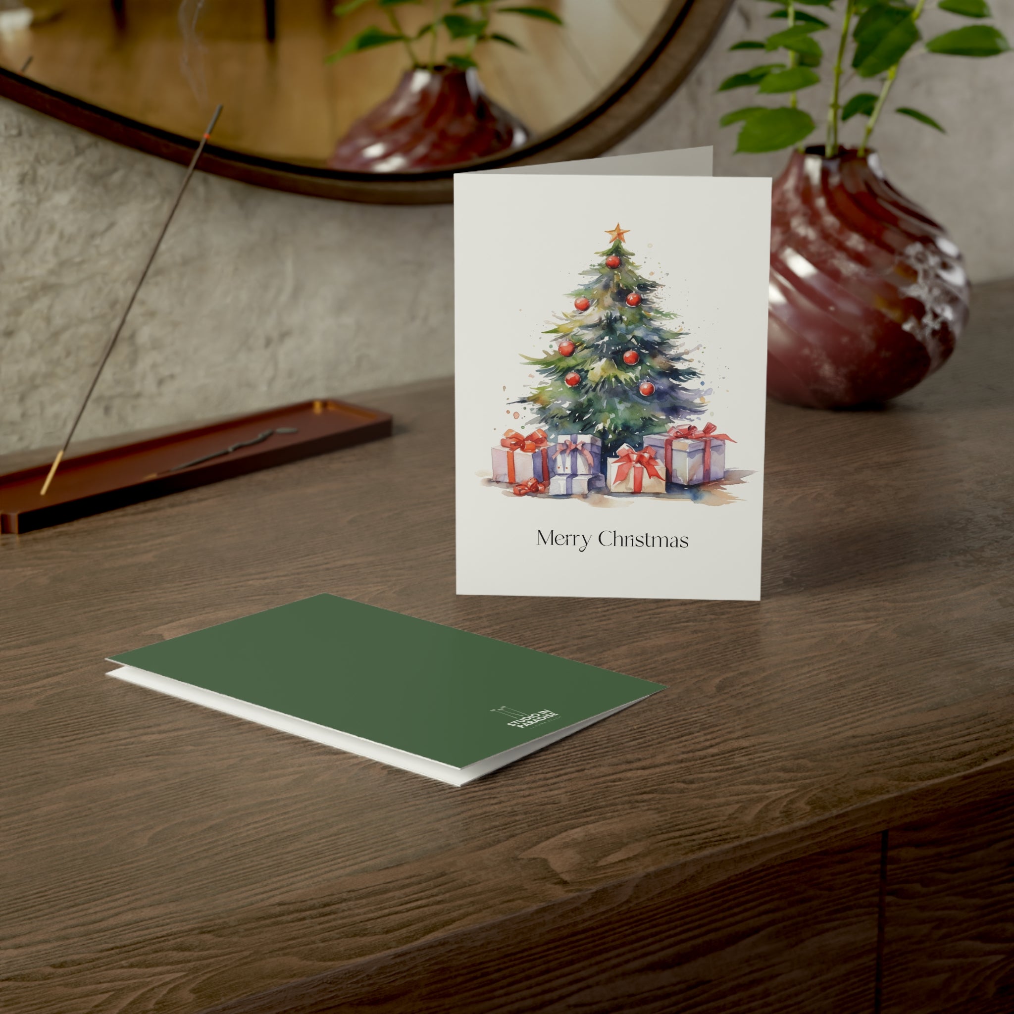 Embrace the Magic of Christmas with Our Enchanting Watercolor Christmas Tree Card! Introducing a heartwarming addition to our Christmas collection—a beautifully crafted card featuring a stunning watercolor illustration of a Christmas tree adorned with decorations and surrounded by beautifully wrapped presents. This design is sure to fill hearts with warmth and holiday cheer. Transport yourself to a winter wonderland with this enchanting watercolor illustration. The beautifully decorated tree, aglow with festive lights, creates a scene that captures the true spirit of the season. Blank inside!