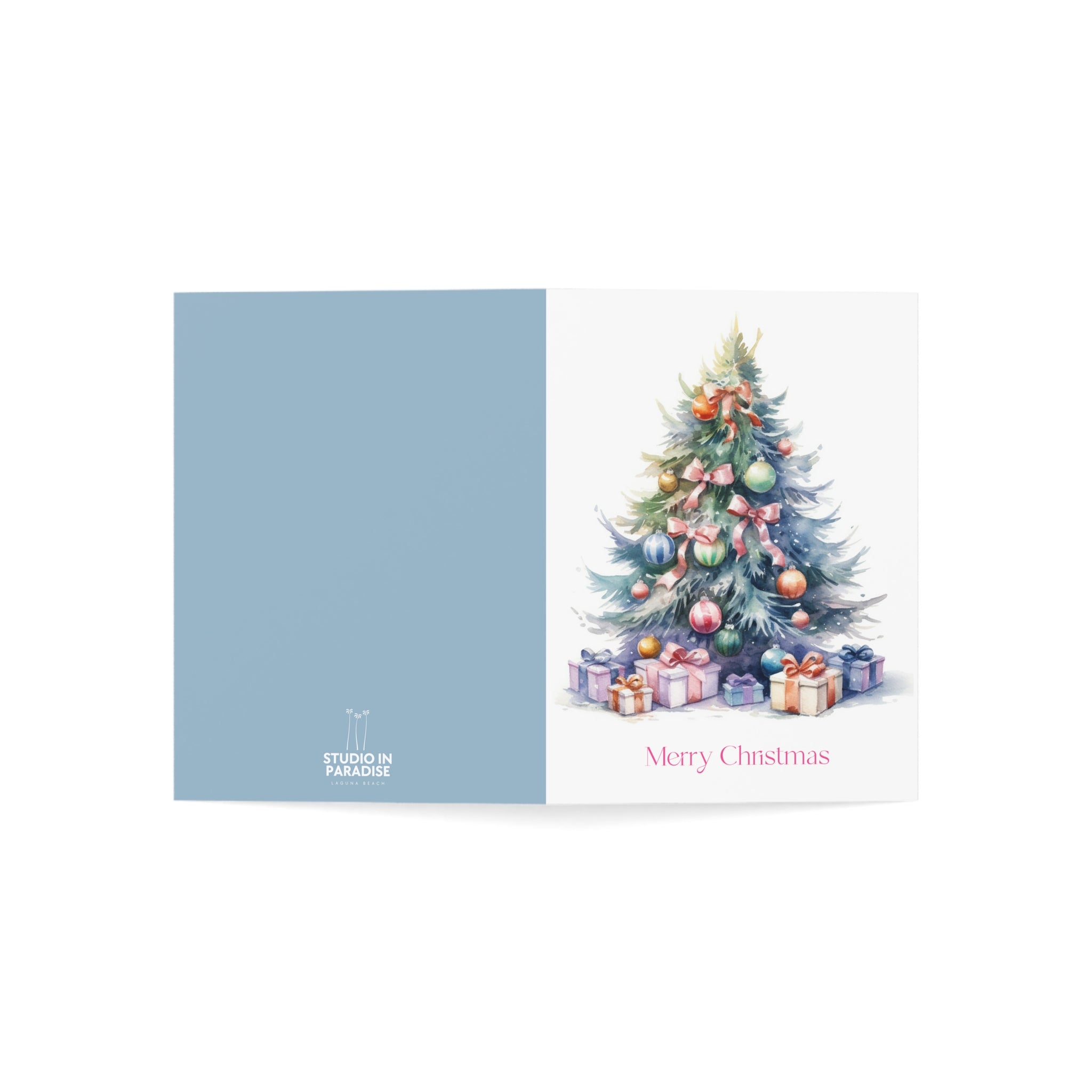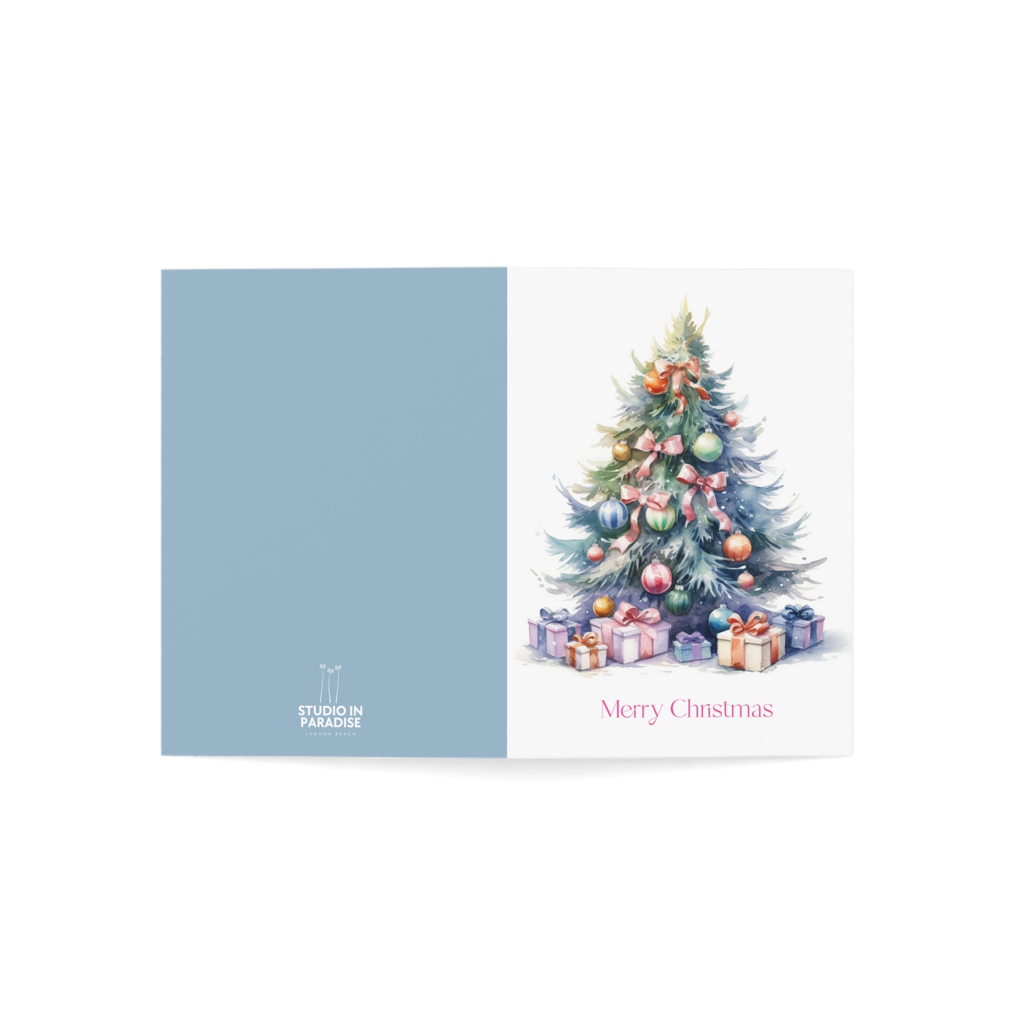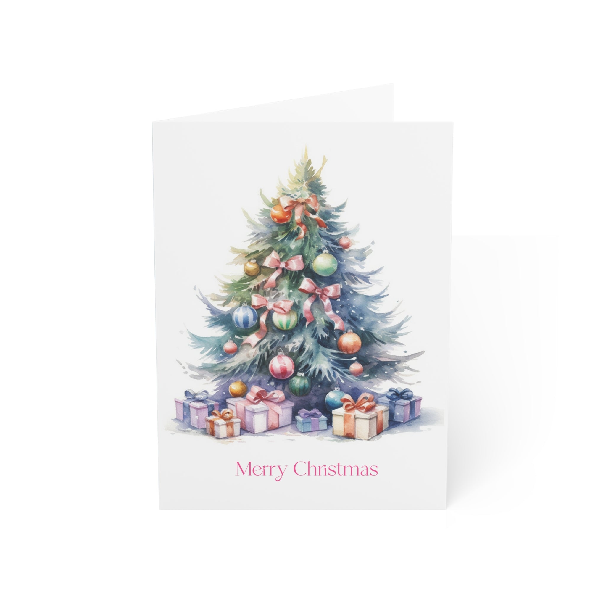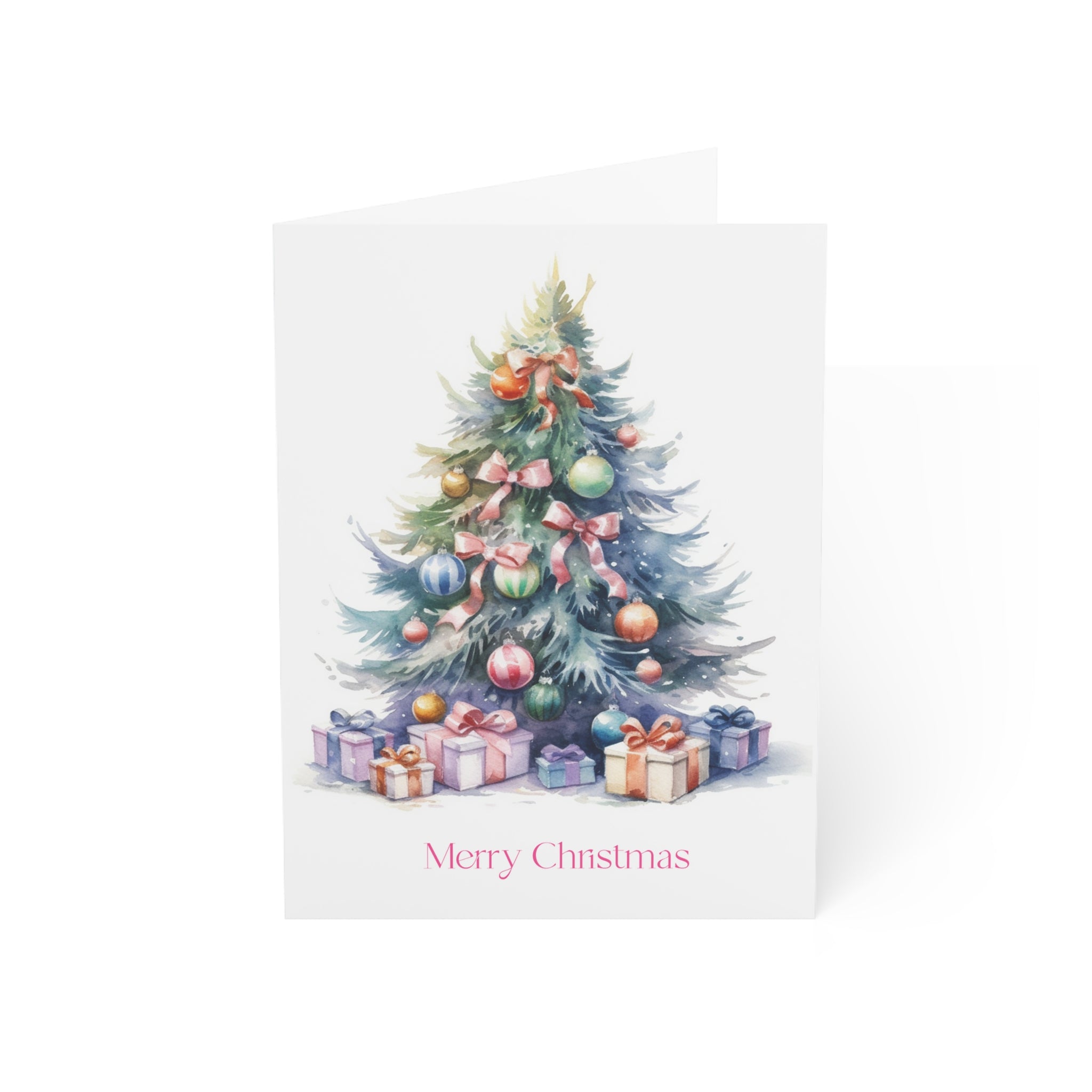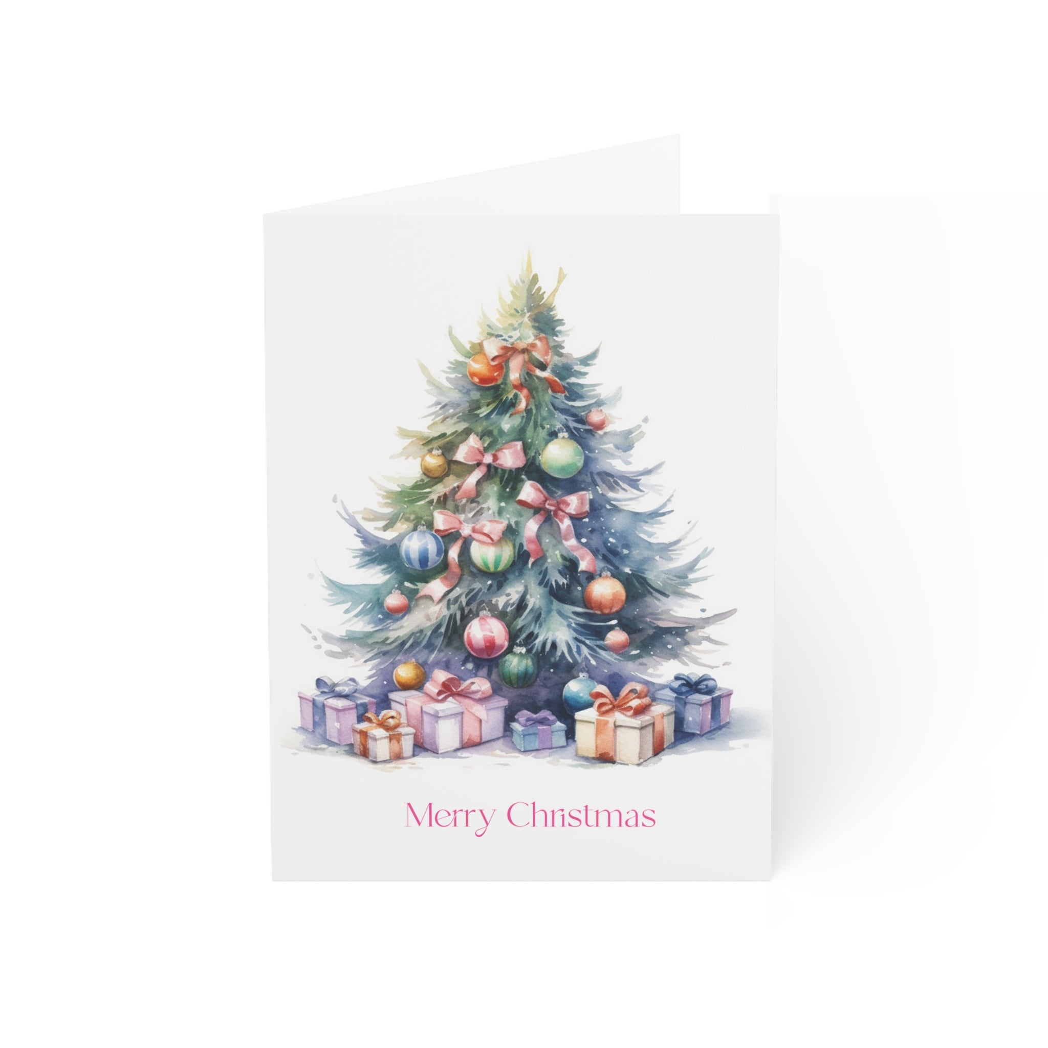 Embrace the Magic of Christmas with Our Enchanting Pastel Watercolor Christmas Tree Card! Introducing a heartwarming addition to our Christmas collection—a beautifully crafted card featuring a stunning watercolor illustration of a Christmas tree adorned with decorations and surrounded by beautifully wrapped presents. This design is sure to fill hearts with warmth and holiday cheer. Transport yourself to a winter wonderland with this enchanting watercolor illustration. The beautifully decorated tree, aglow with festive lights, creates a scene that captures the true spirit of the season. Blank inside!