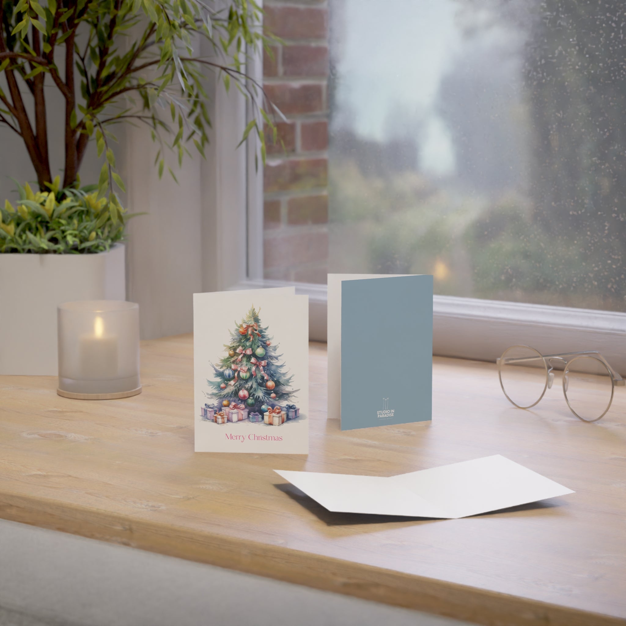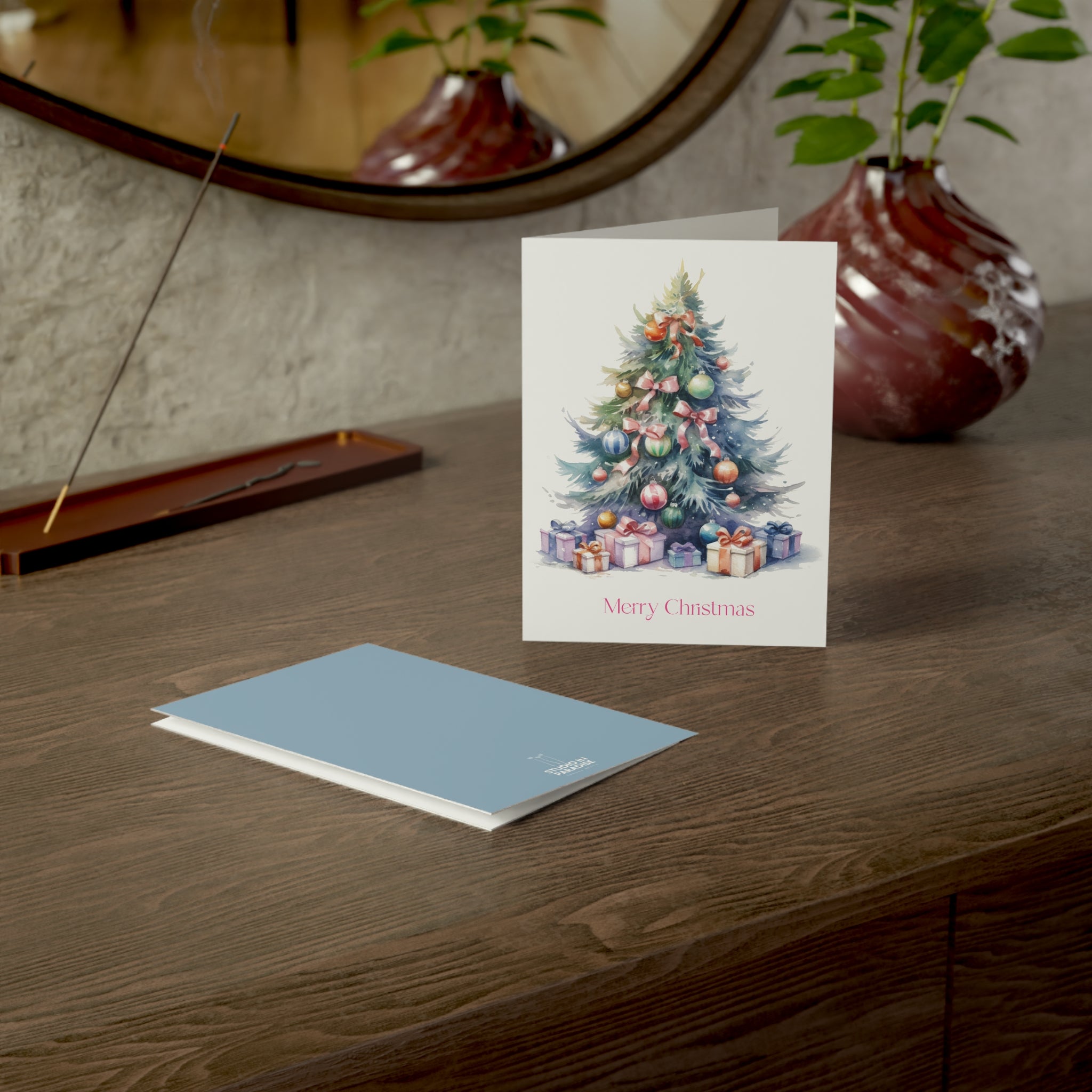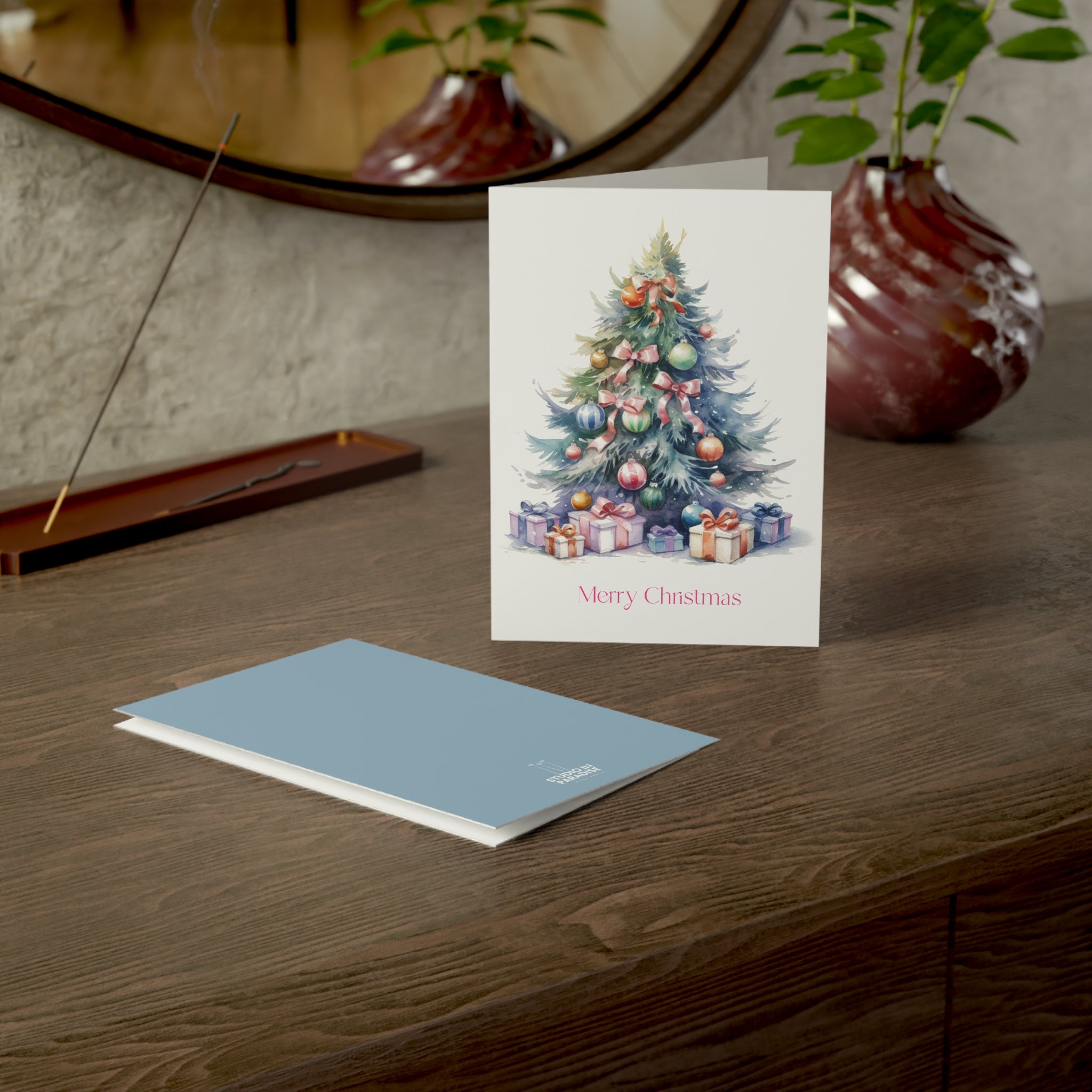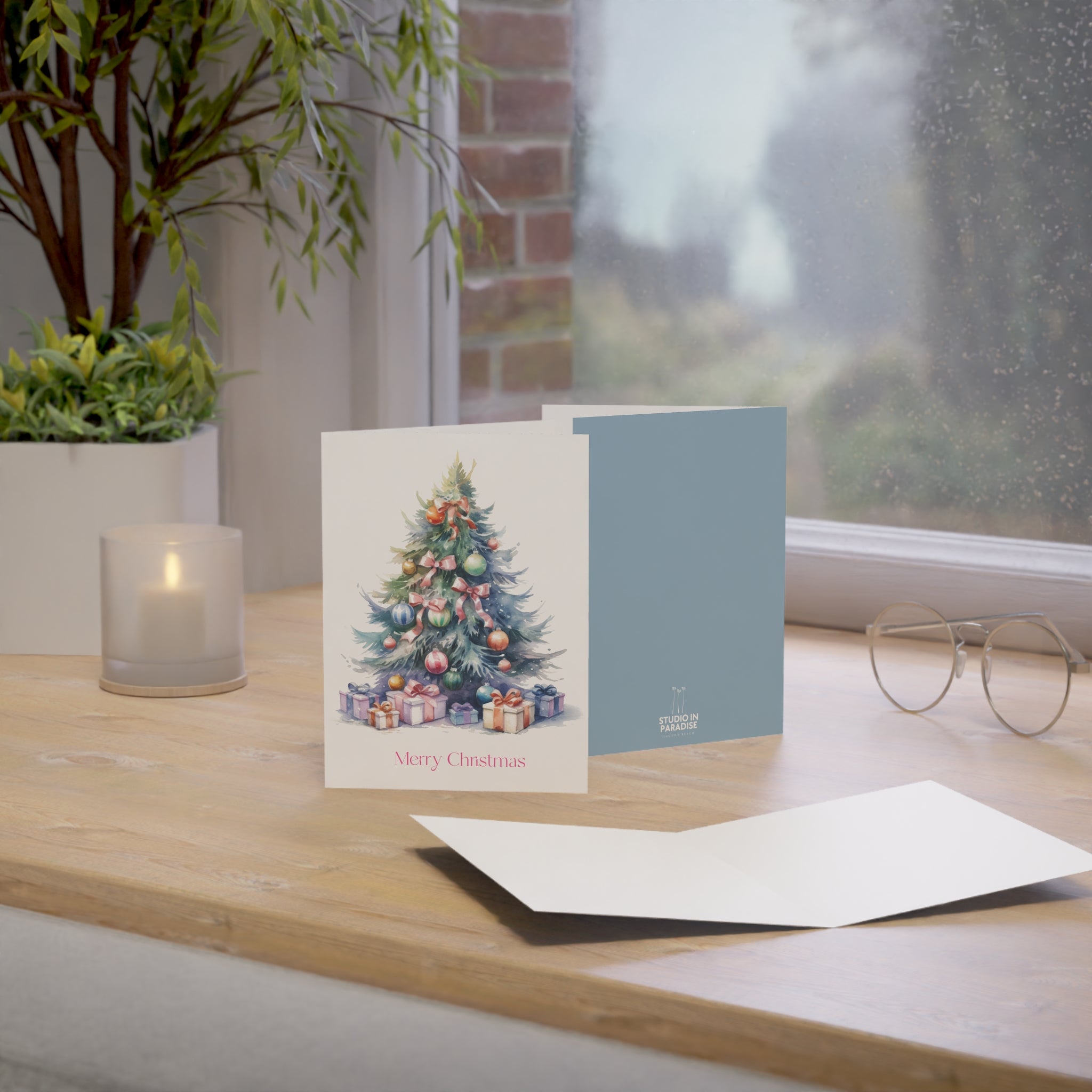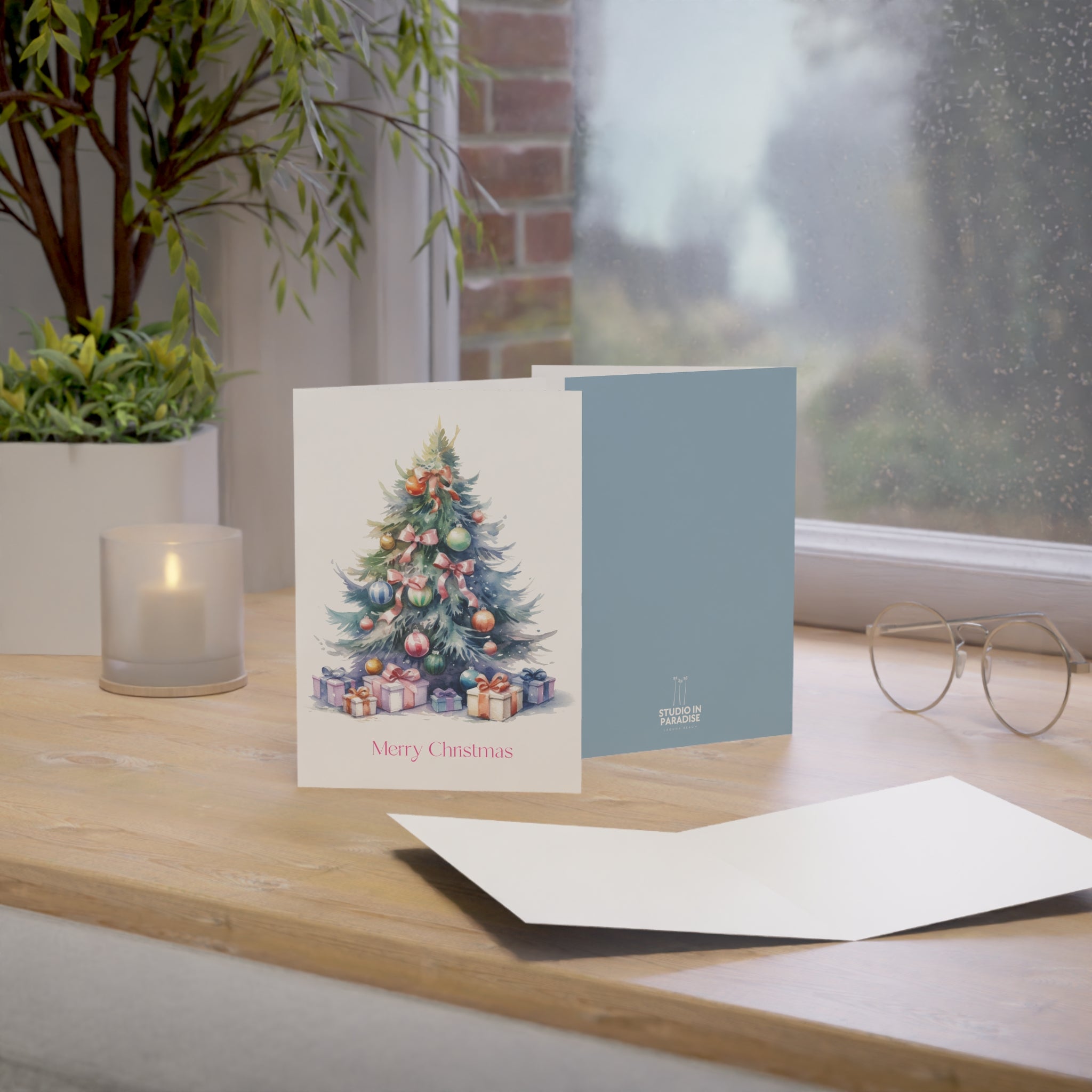 Embrace the Magic of Christmas with Our Enchanting Pastel Watercolor Christmas Tree Card! Introducing a heartwarming addition to our Christmas collection—a beautifully crafted card featuring a stunning watercolor illustration of a Christmas tree adorned with decorations and surrounded by beautifully wrapped presents. This design is sure to fill hearts with warmth and holiday cheer. Transport yourself to a winter wonderland with this enchanting watercolor illustration. The beautifully decorated tree, aglow with festive lights, creates a scene that captures the true spirit of the season. Blank inside!